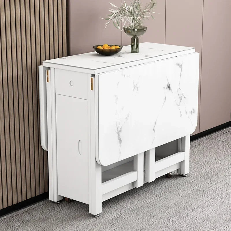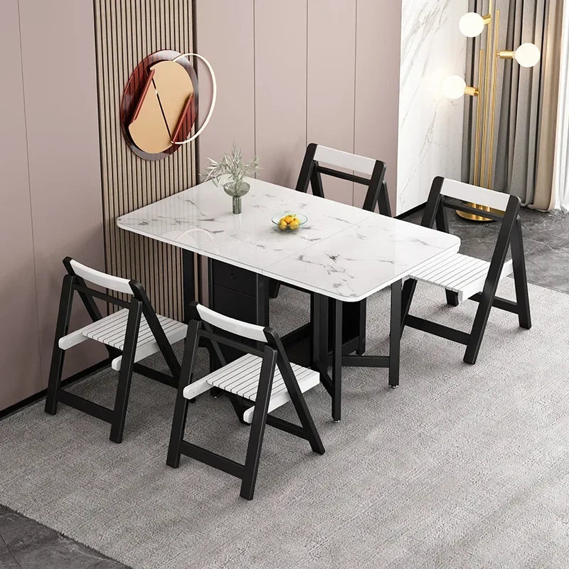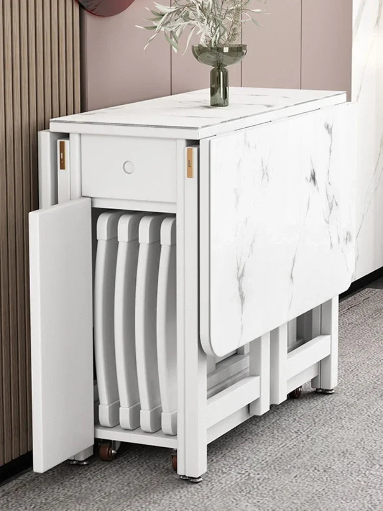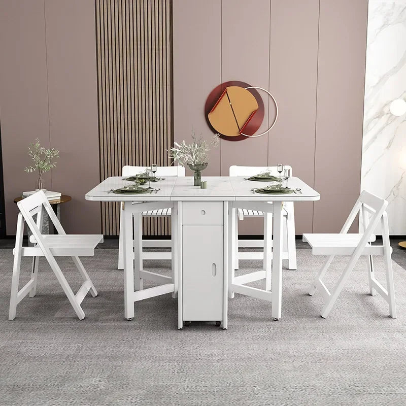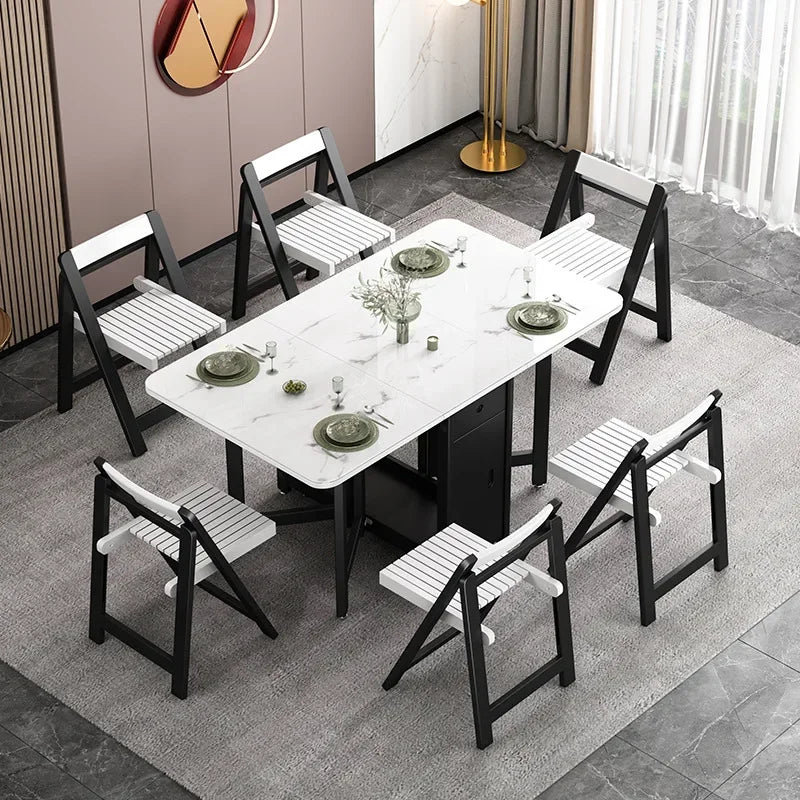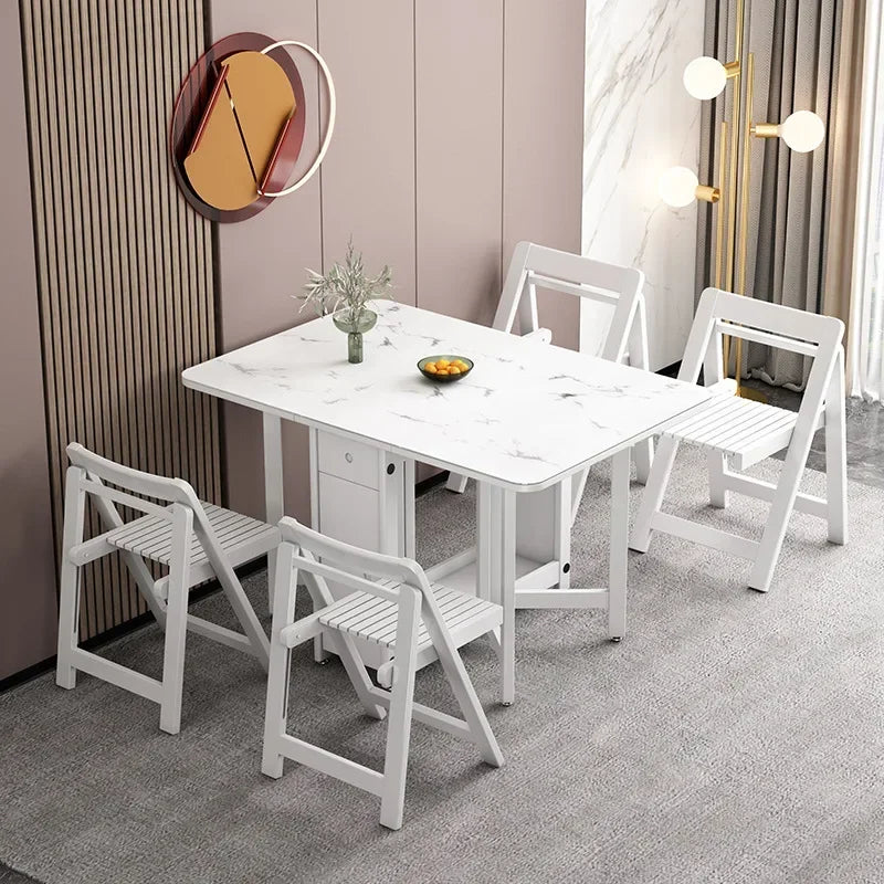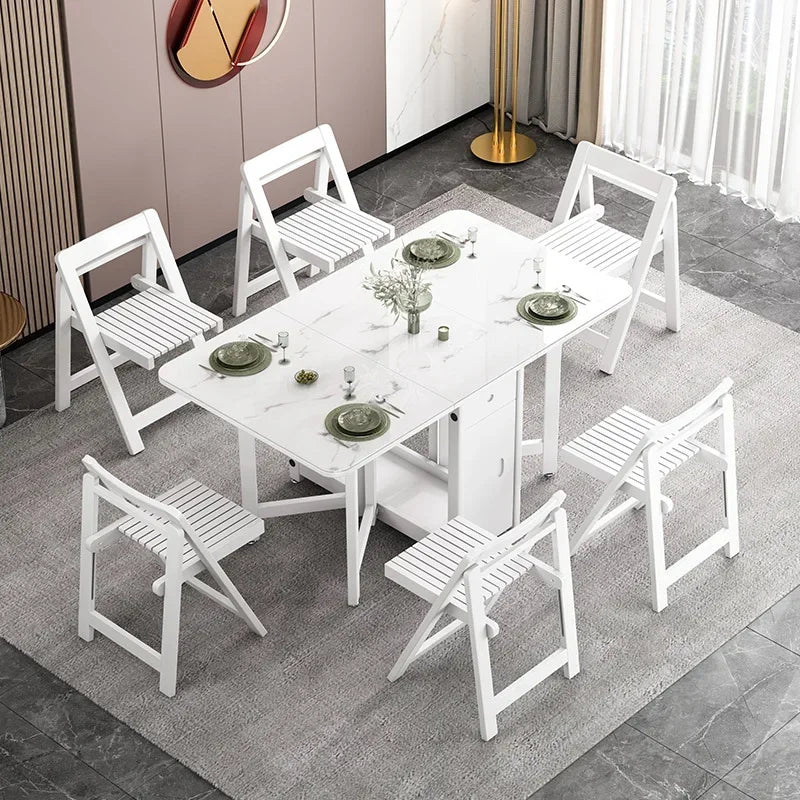 MMOOKA Fashion White Color Folding Dining Table Furniture Multifunctional Rectangle Foldable Dining Table Folding Chairs
