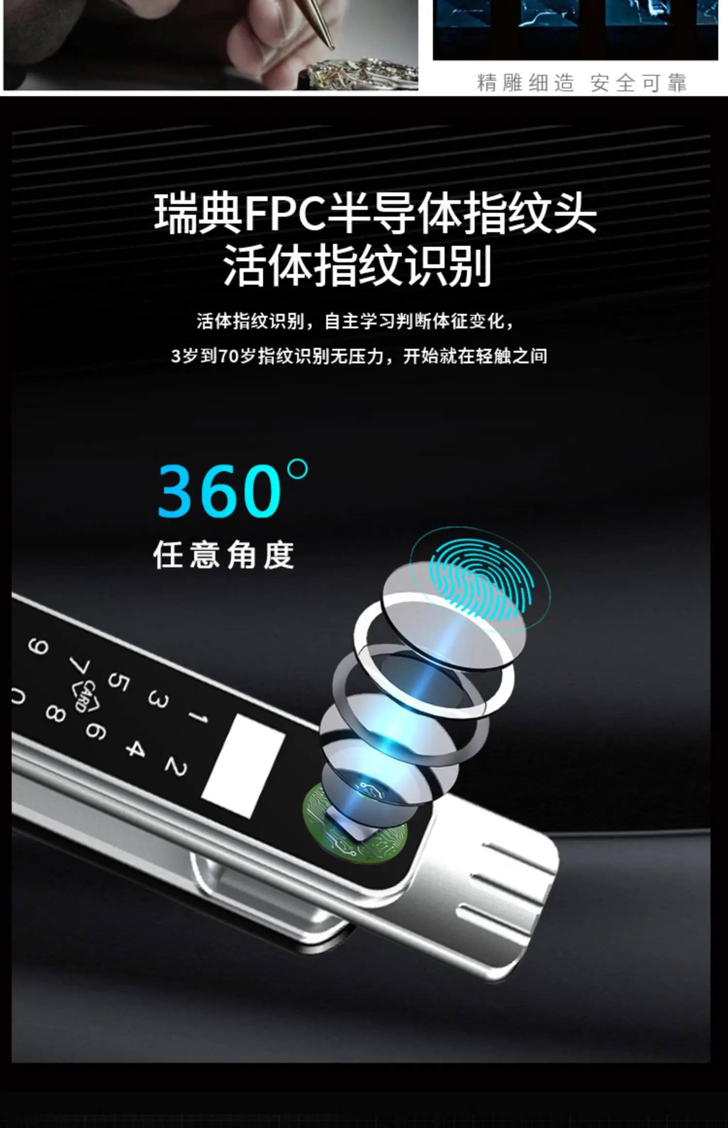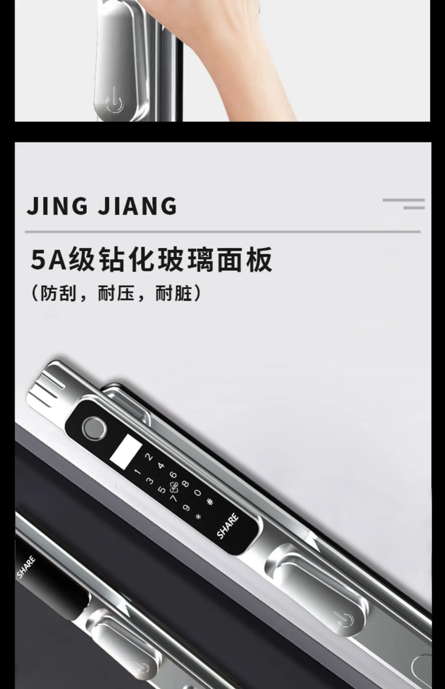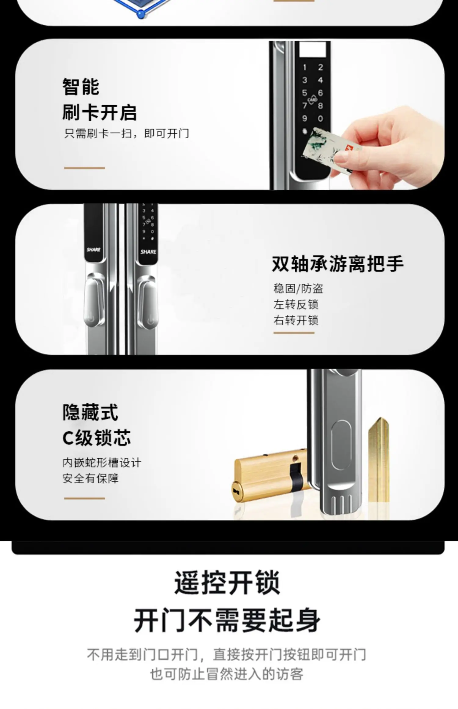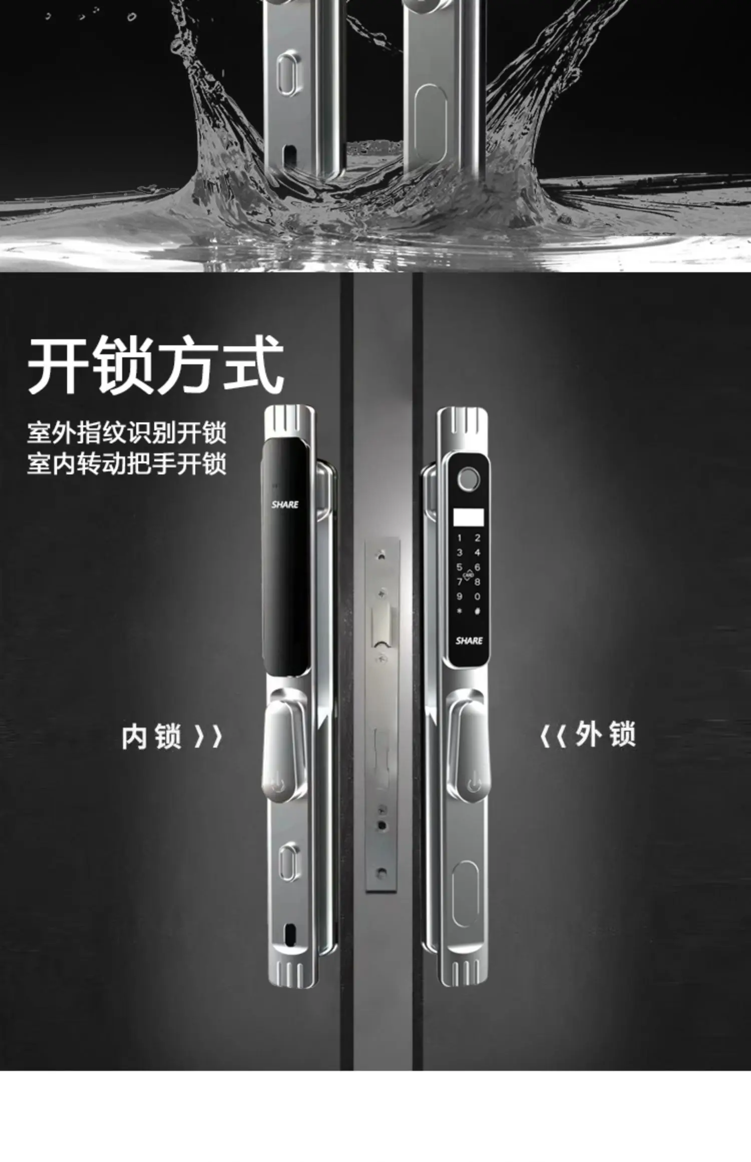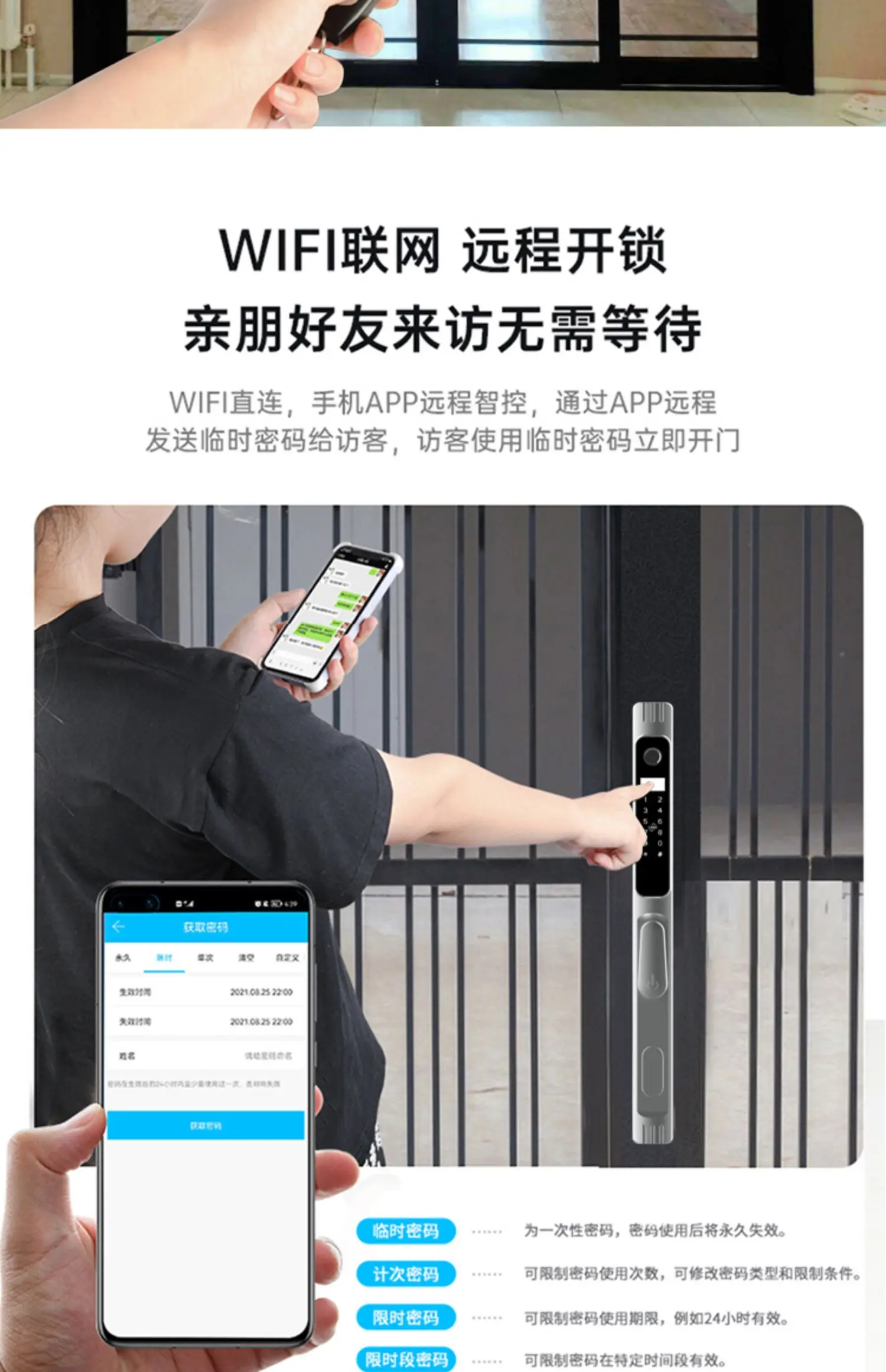 Fingerprint lock big handle villa courtyard door double-sided lock narrow side sliding door intelligent lock waterproof