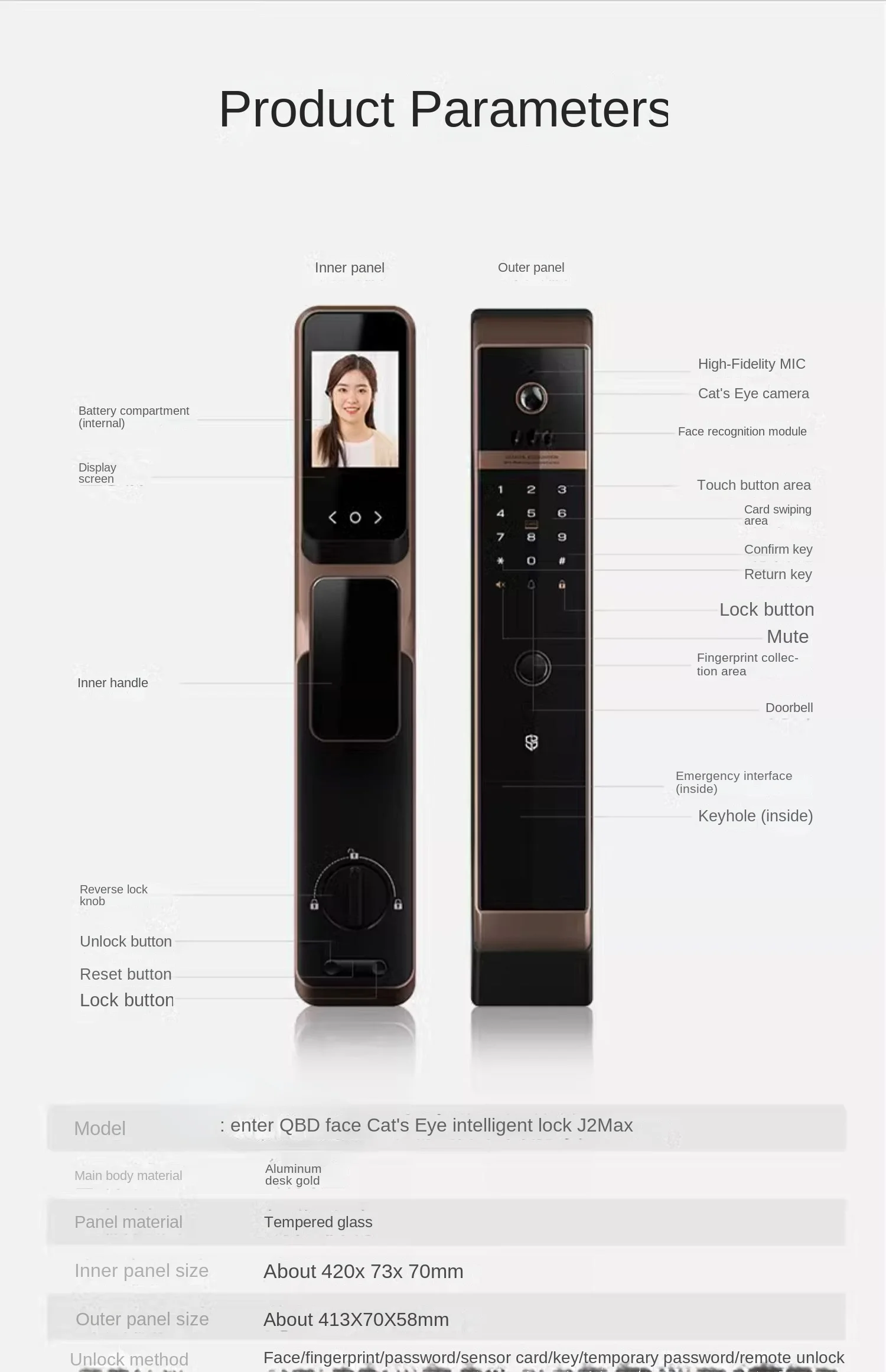 Fingerprint lock, intelligent lock, facial recognition, visual cat's eye, household anti-theft door, fully automatic electronic