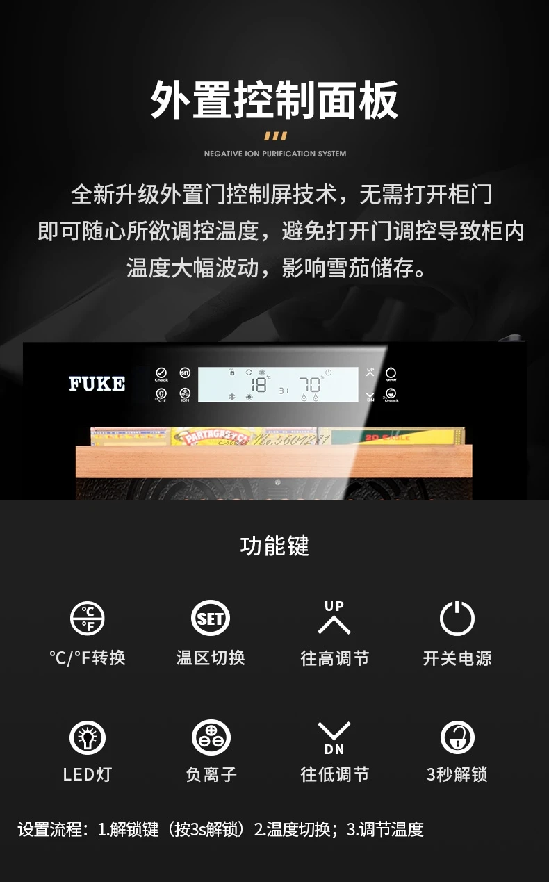 FK-188C cigar cabinet constant temperature and humidity Cedar wood humidor led light humidor Cooler Humidor Cabinet