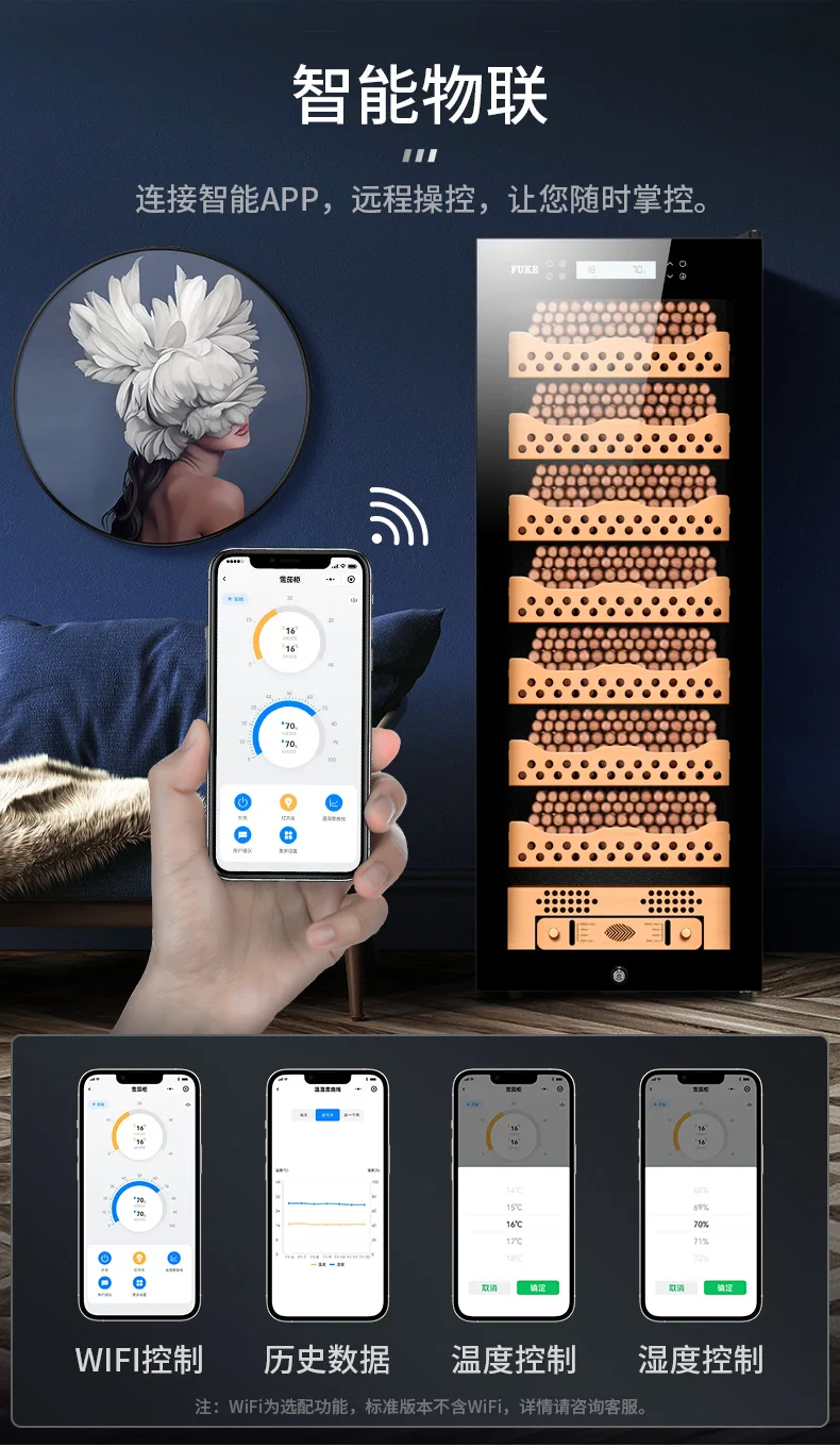 Fk-268c Cigar Cabinet Intelligent Humidor Wi-Fi Constant Temperature and Humidity Household Compression Cabinet Cigar and Wine