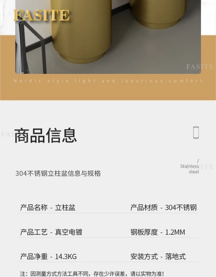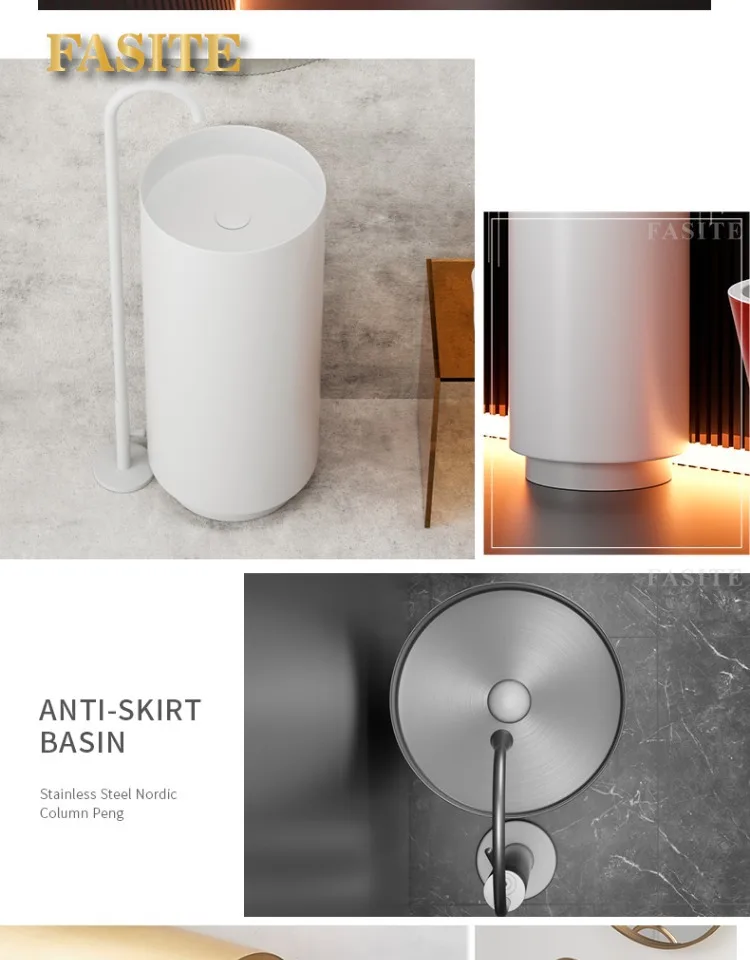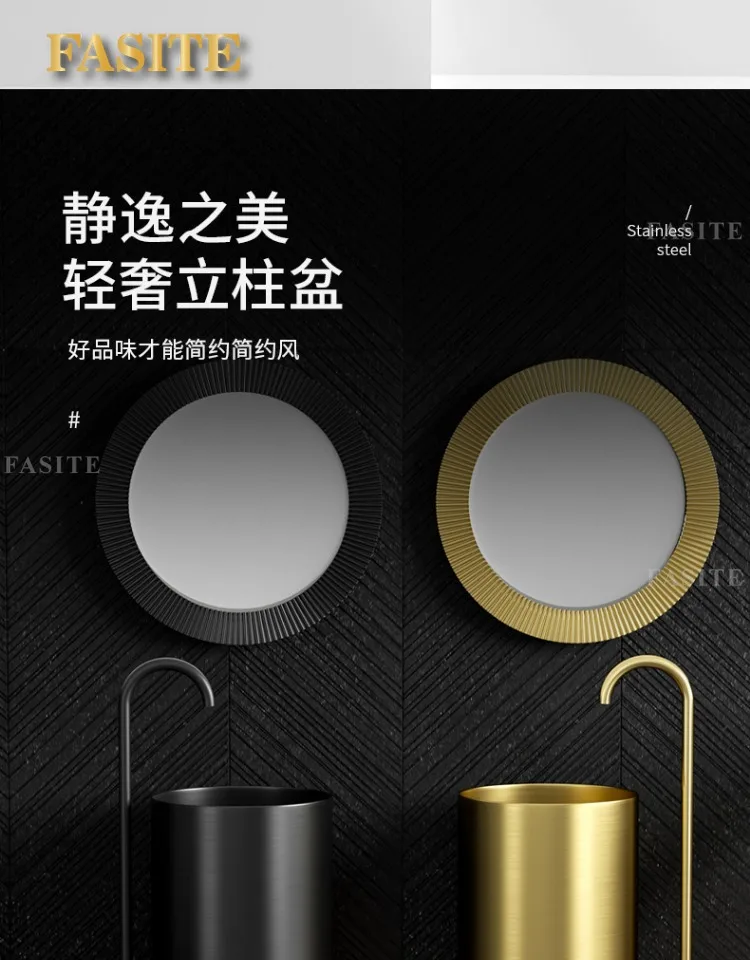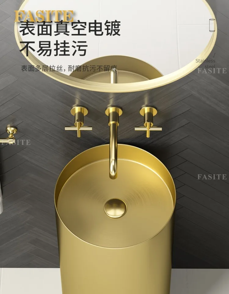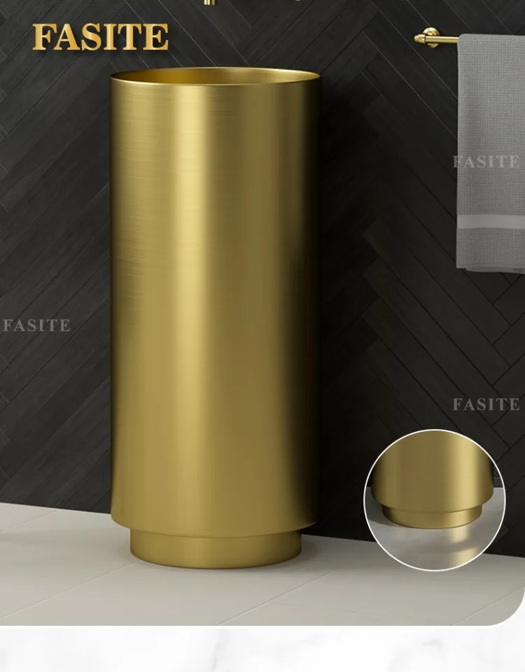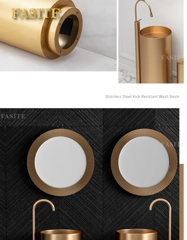 Floor-standing round basin golden anti-kick column basin B&B hotel toilet wash basin