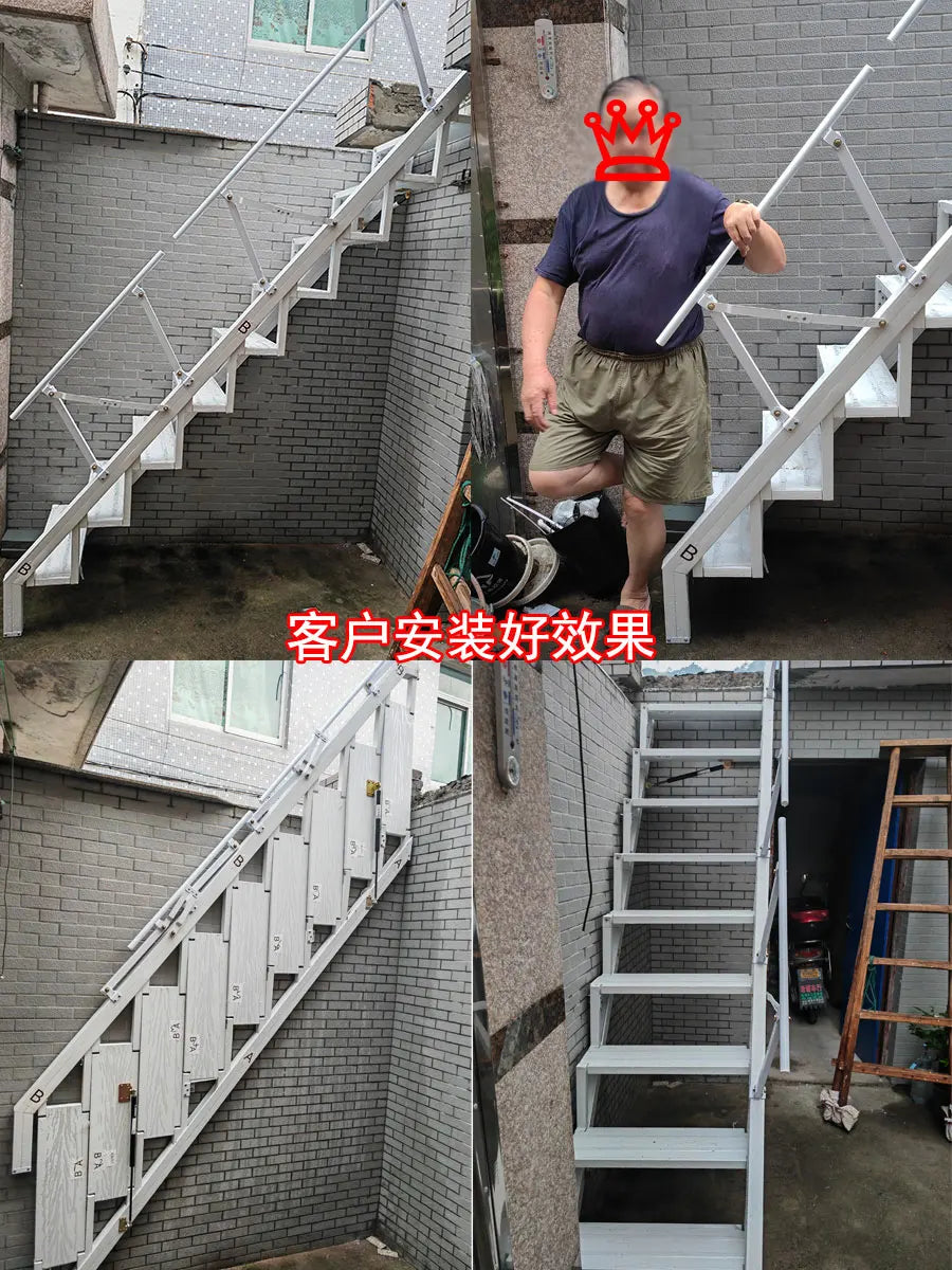 Folding Stairs Home Indoor and Outdoor Duplex Two-Storey Pavilion Partition Small Apartment Wall-Mounted Aluminum Alloy Ladder