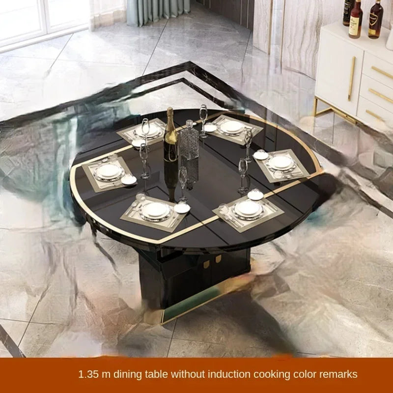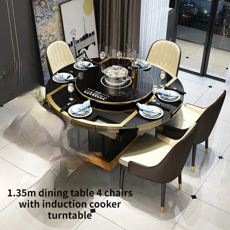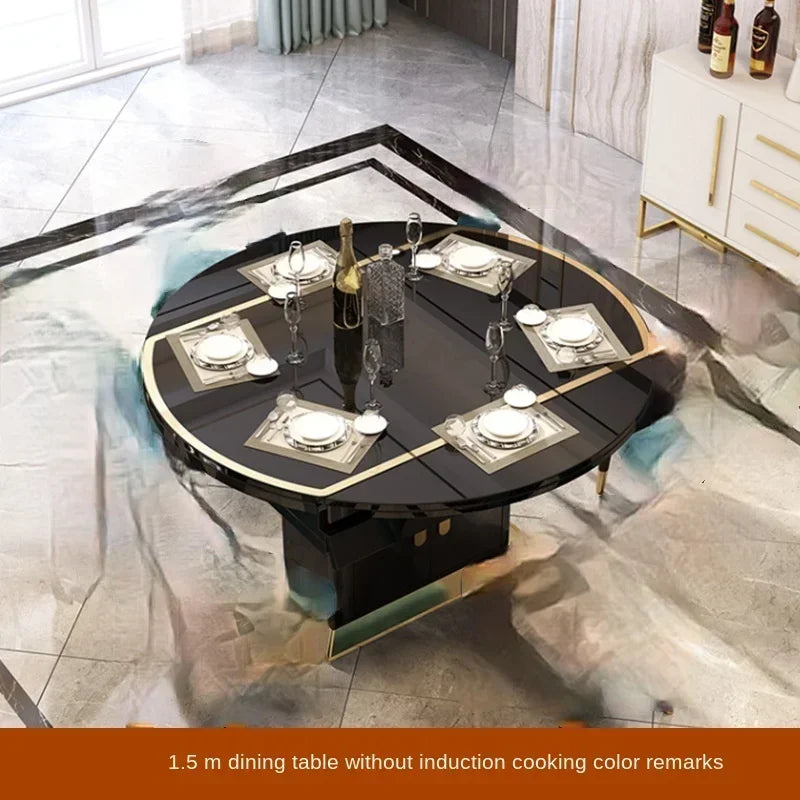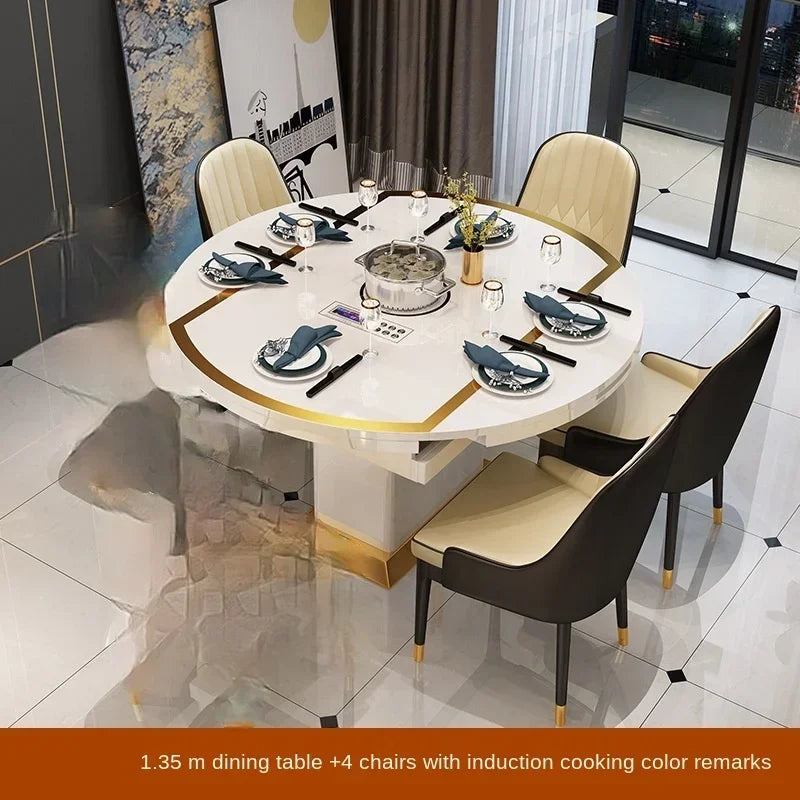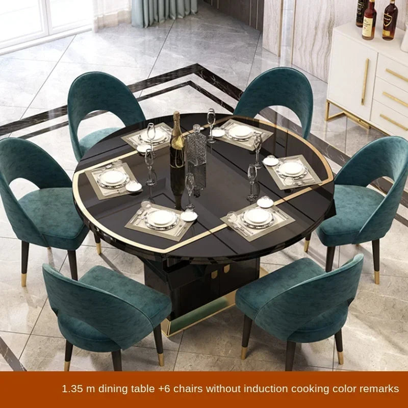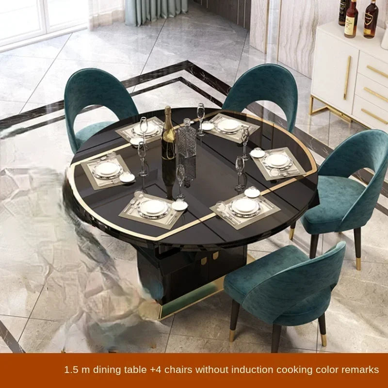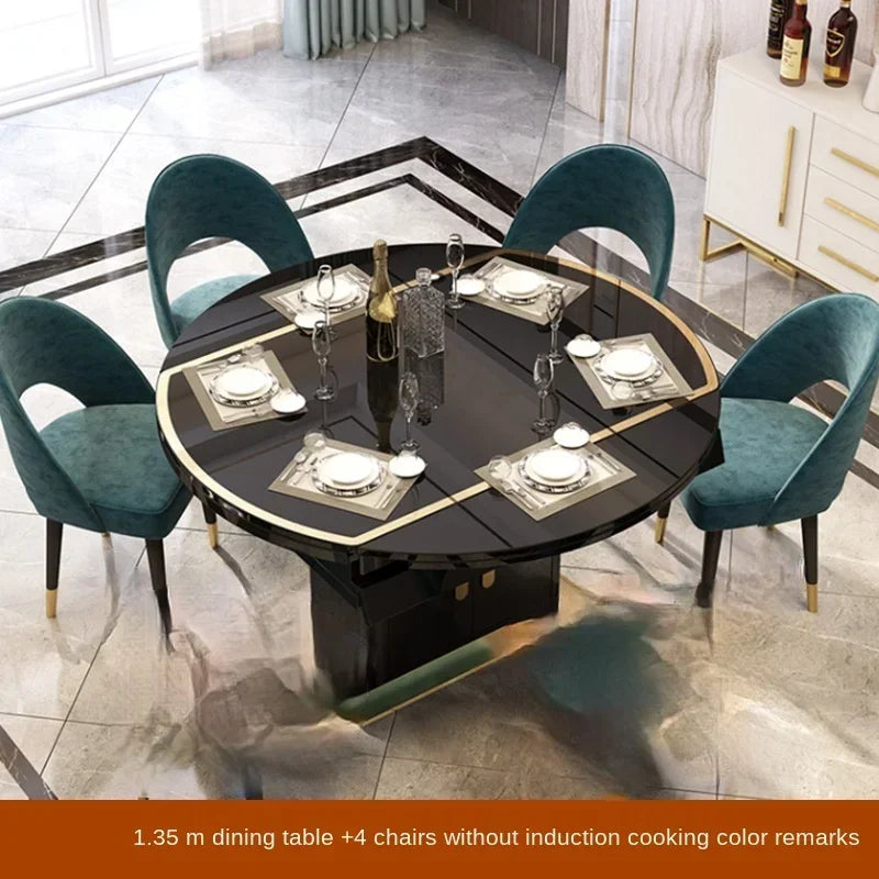 MMOOKA Folding with induction cooker dining table chair combination with turntable telescopic rotating size variable round table
