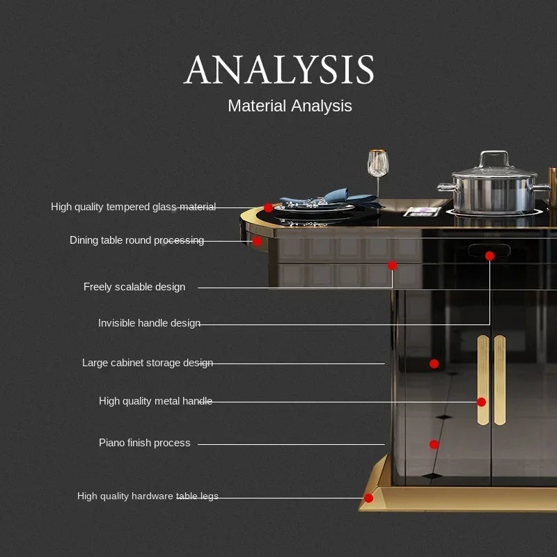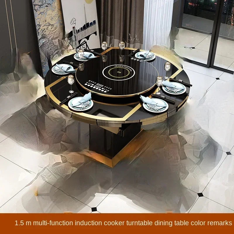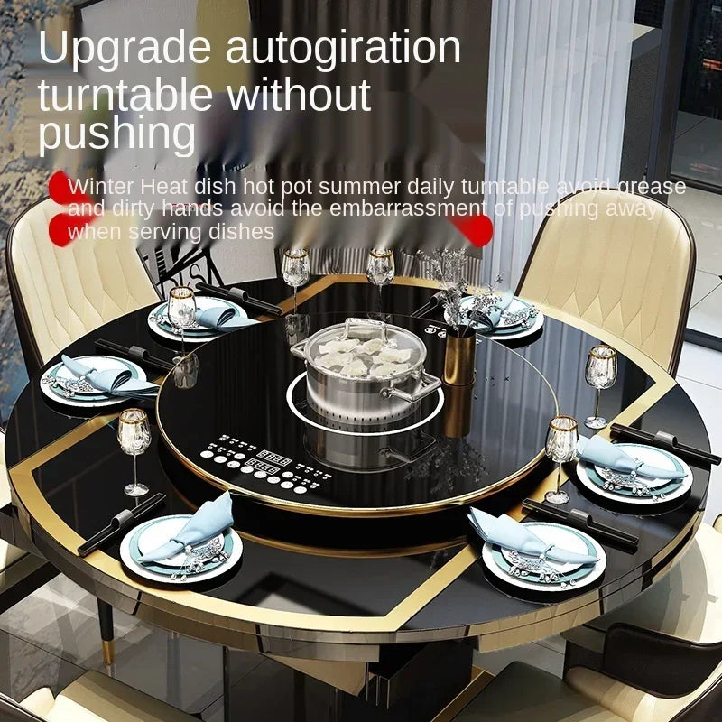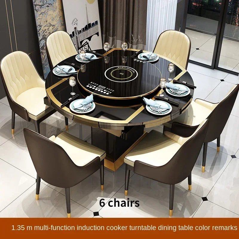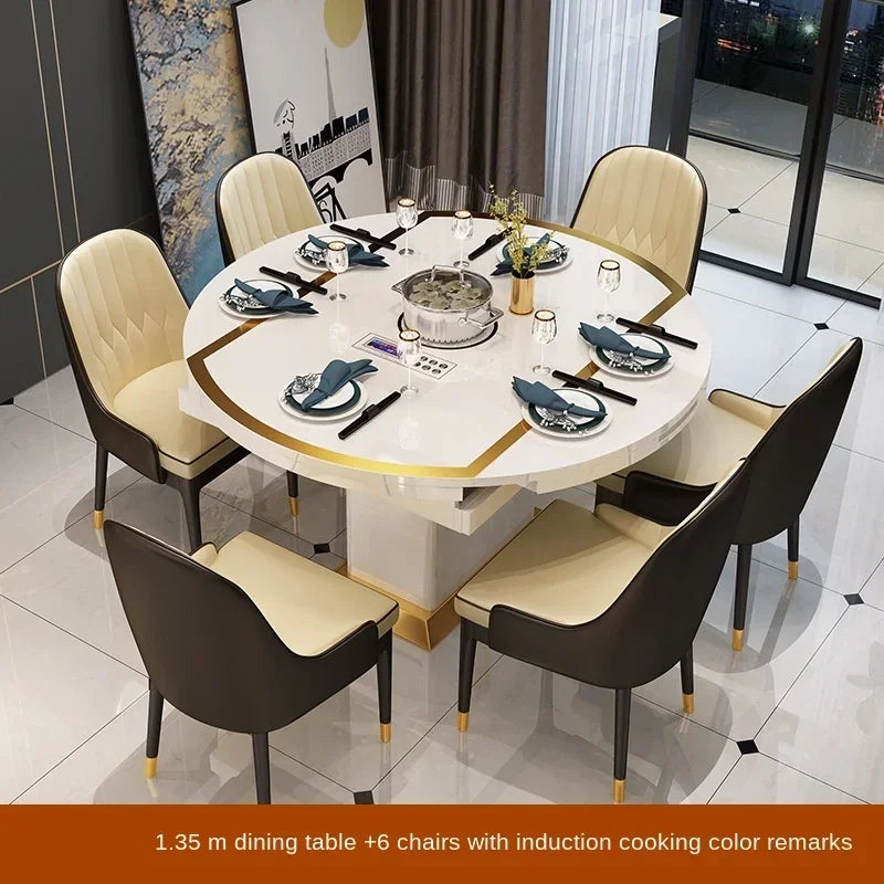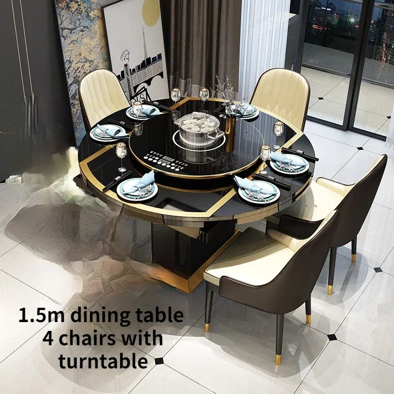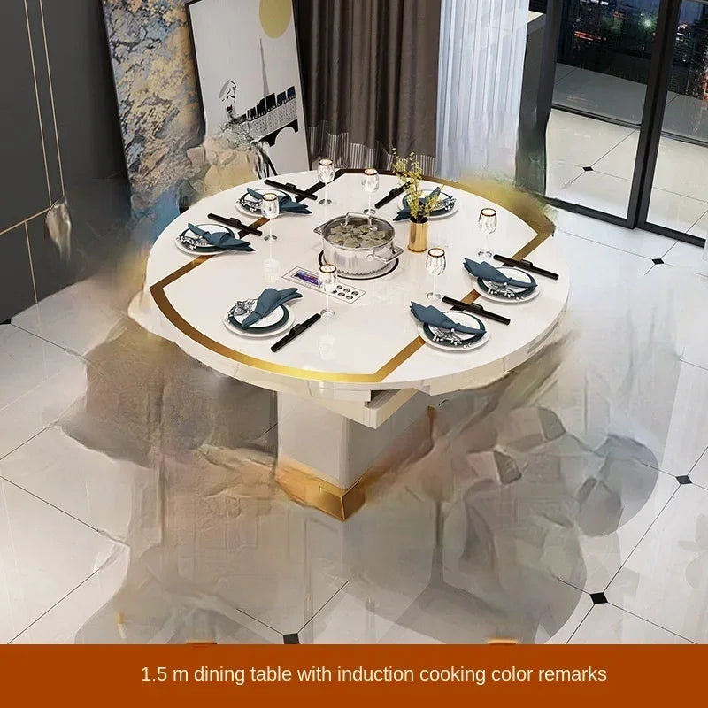 MMOOKA Folding with induction cooker dining table chair combination with turntable telescopic rotating size variable round table
