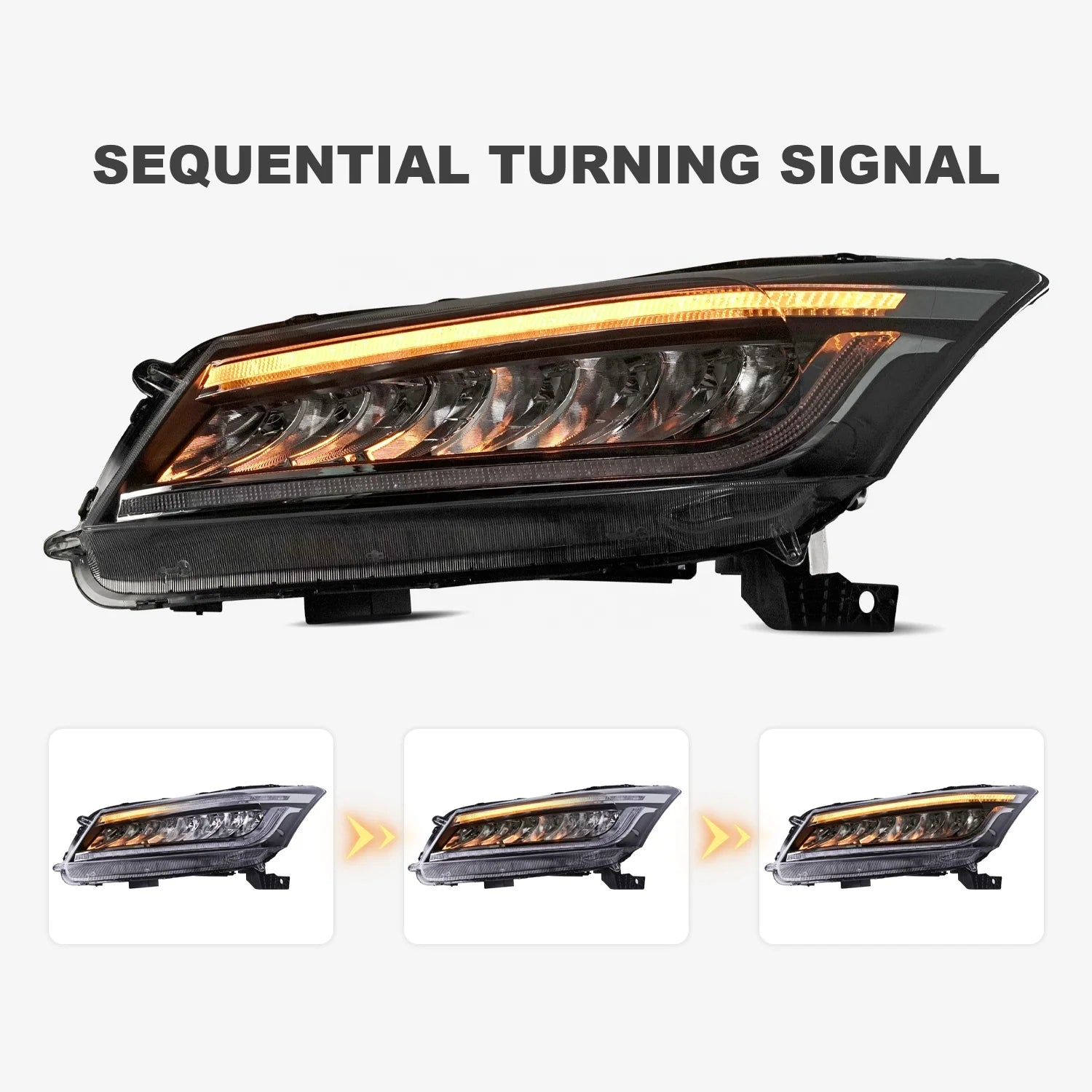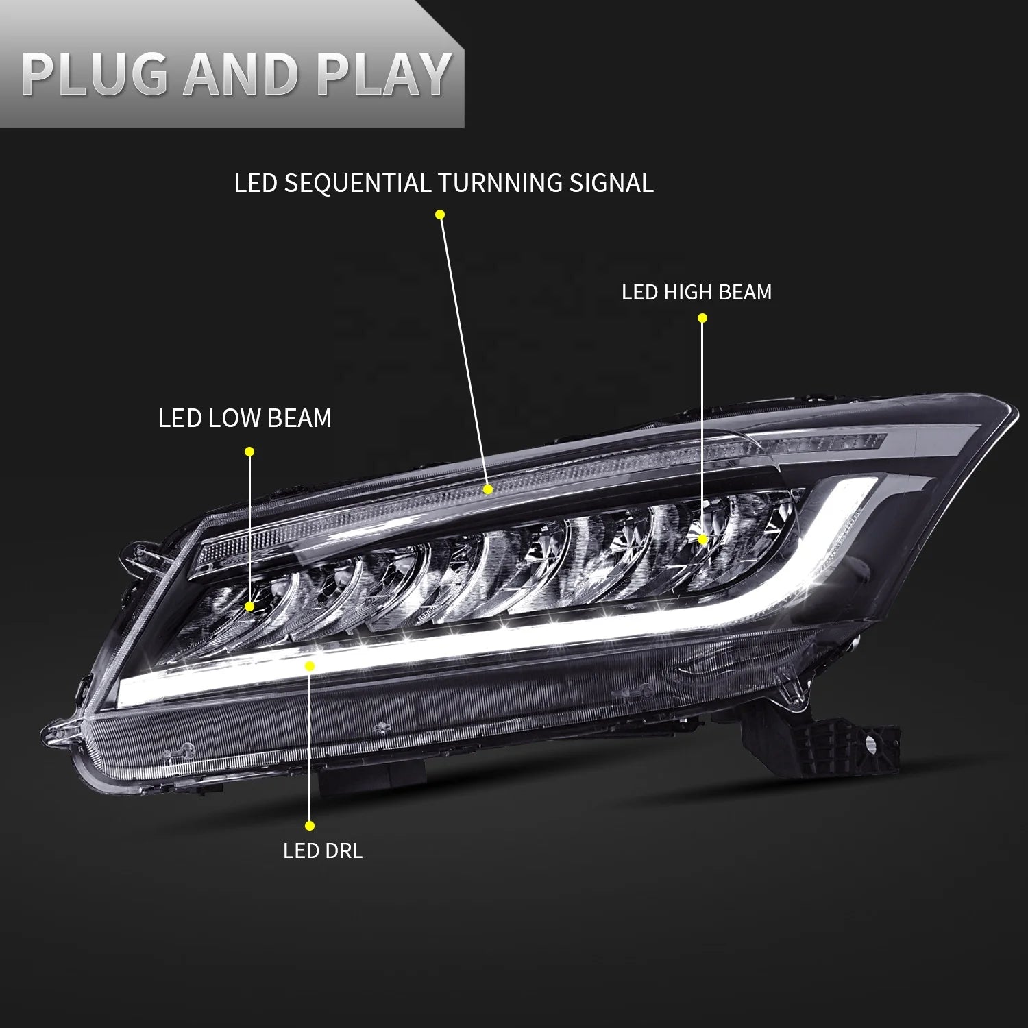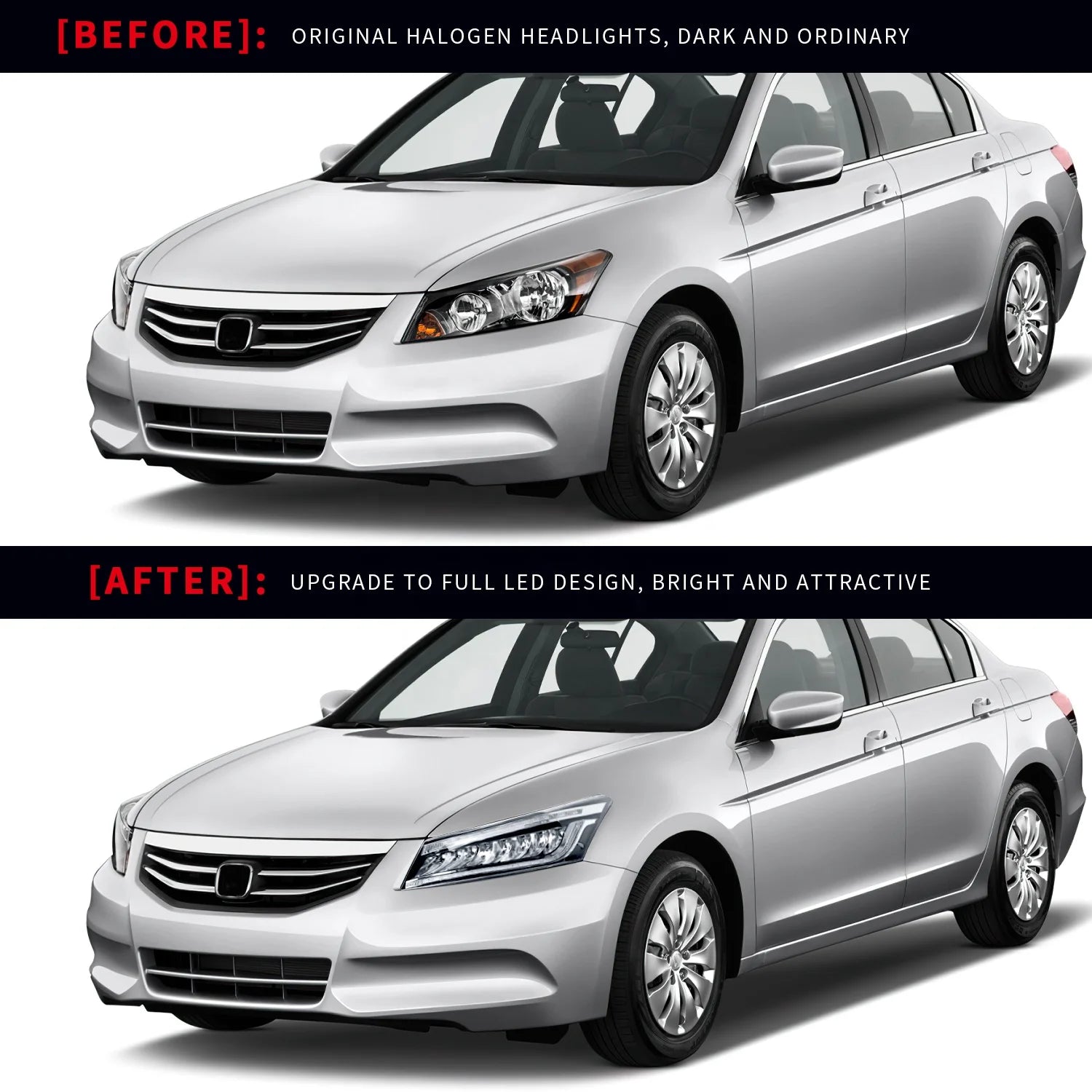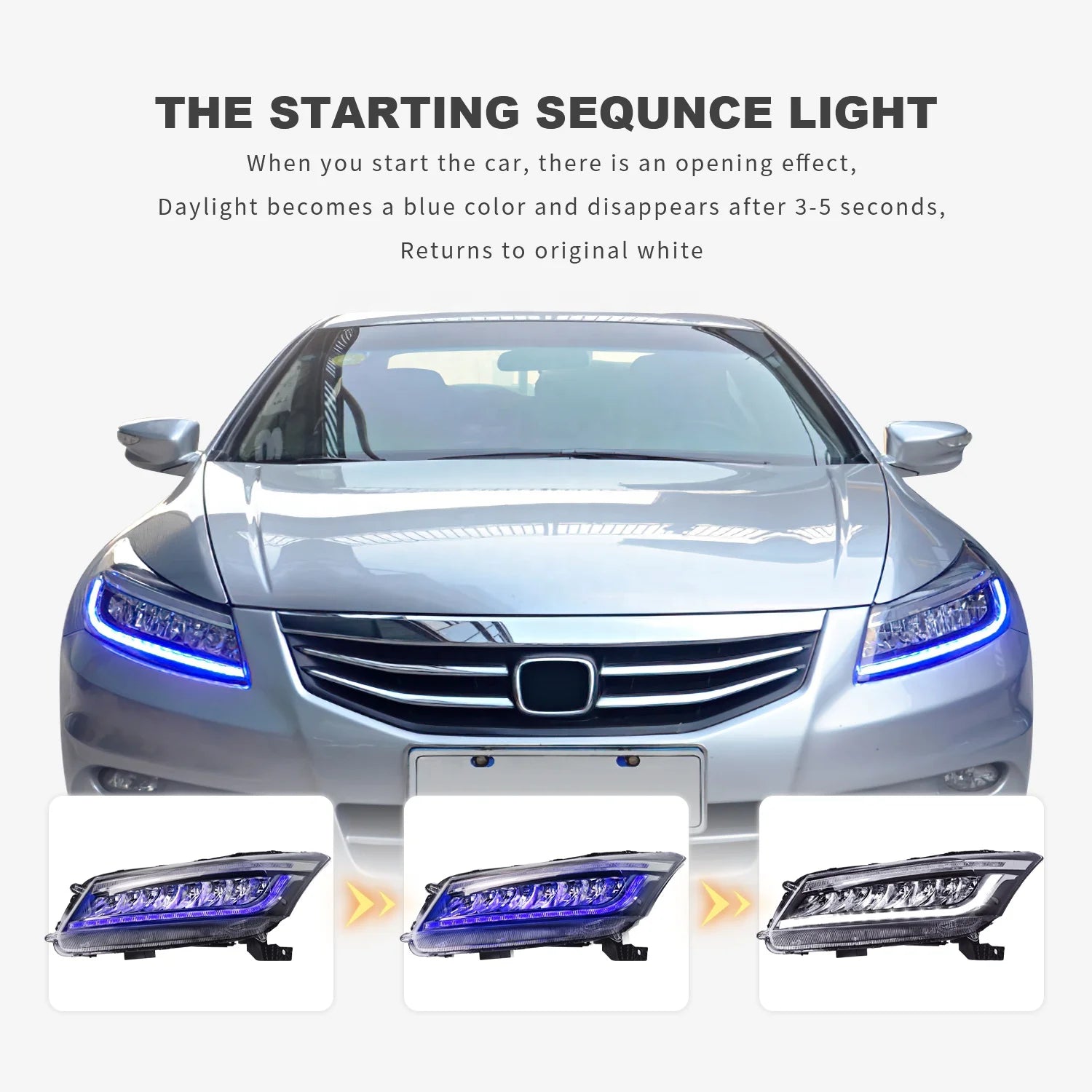 For honda accord auto front lamp with light from blue turn to white 2008-2012 full led headlamp for accord 8th headlights