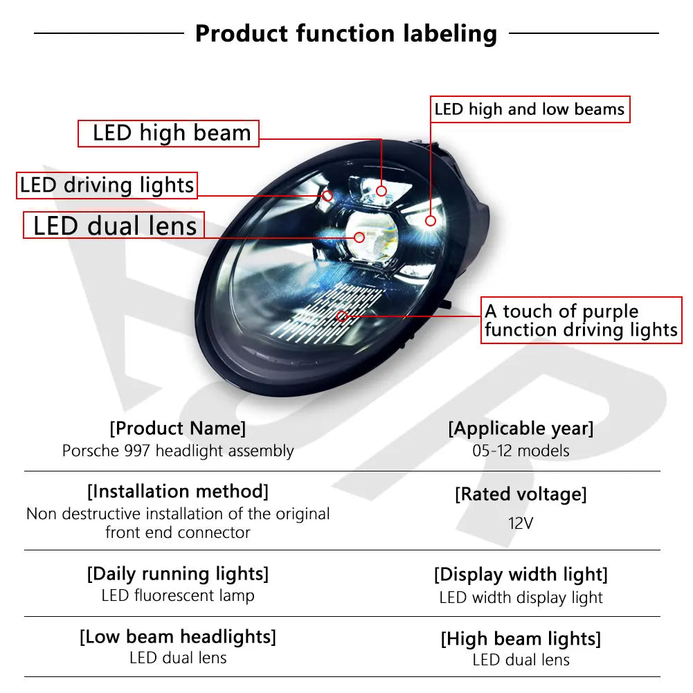 For Porsche 911 997 Headlight 2005-2012 997.1 997.2 Upgrade Old to New 992 Matrix Led Front Head Lights Auto Lamp Plug and Play