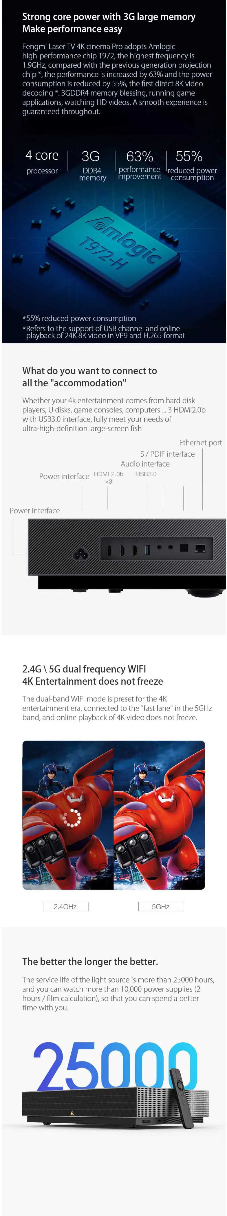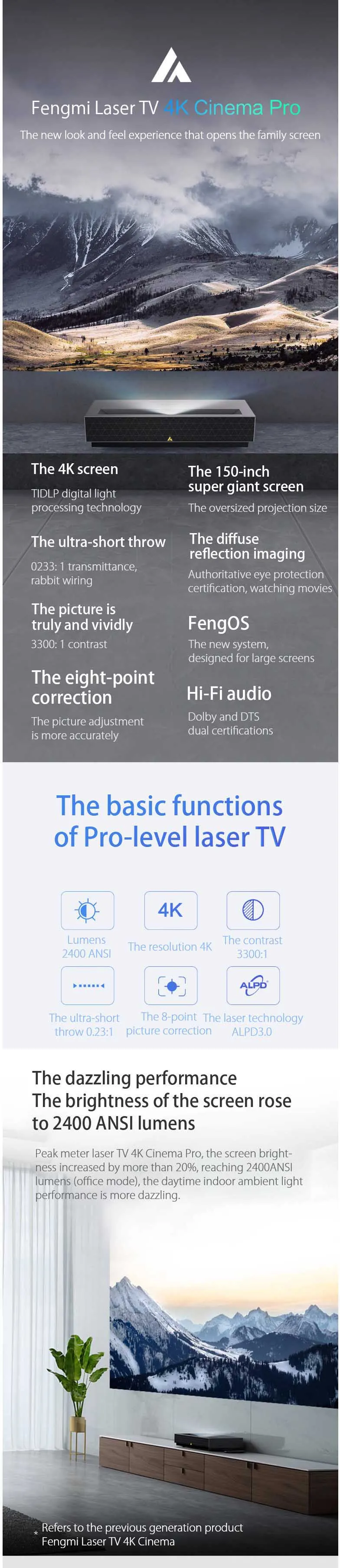 Formoive Fengmi 4K Cinema Pro Laser Projection TV 2400 ANSI Lumens Smart Projector 2.4G/5G Dual Wifi Home Theater Beamer English