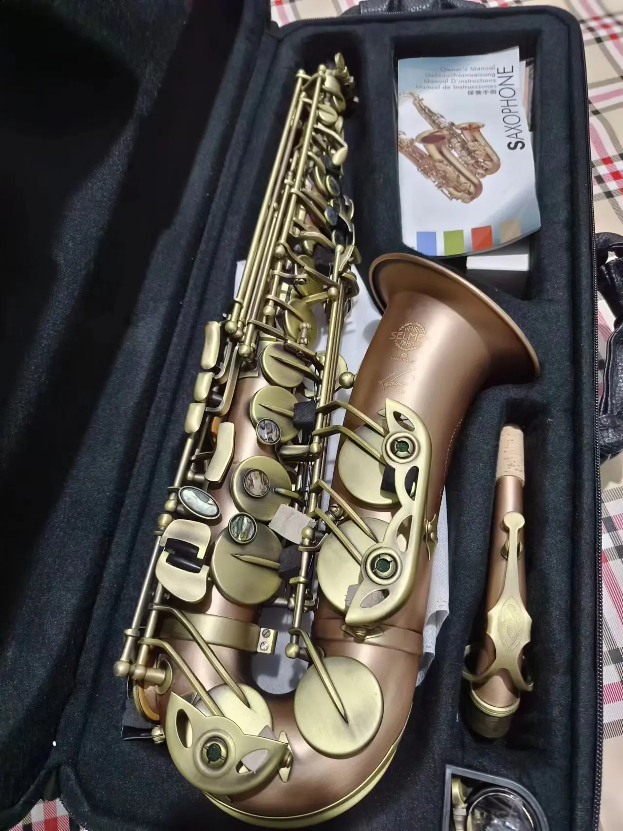 France SAS-R54 Alto Saxophone Eb Tuner Antique Plated .Phosphorus copper material .Professional Woodwind With Case Accessories