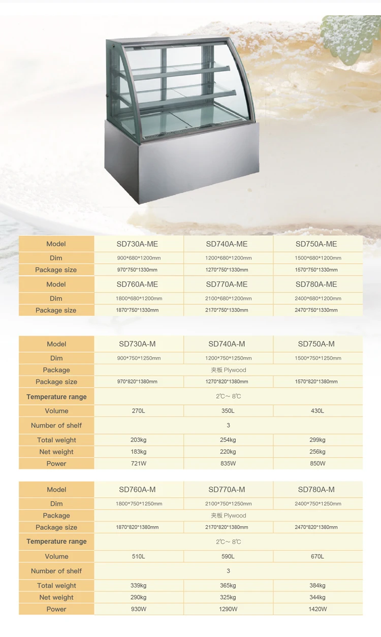 Free Standing Desert Showcase Pastry Chiller Commercial Refrigerator Cake Display Counter display cabinet