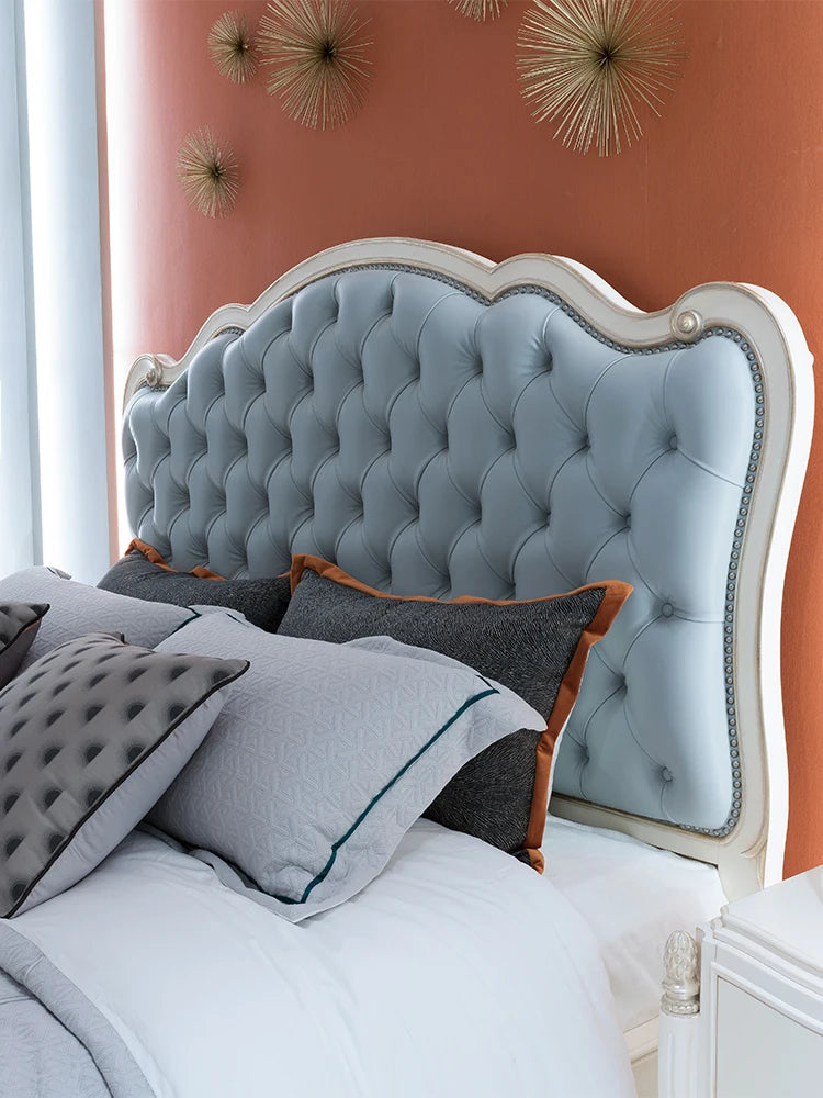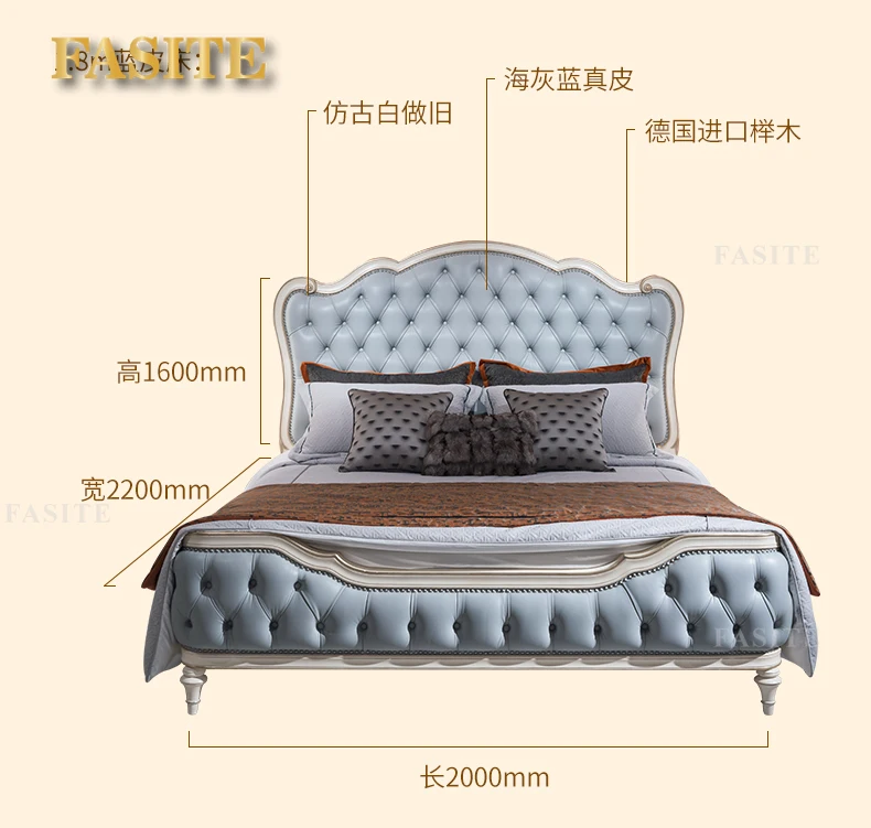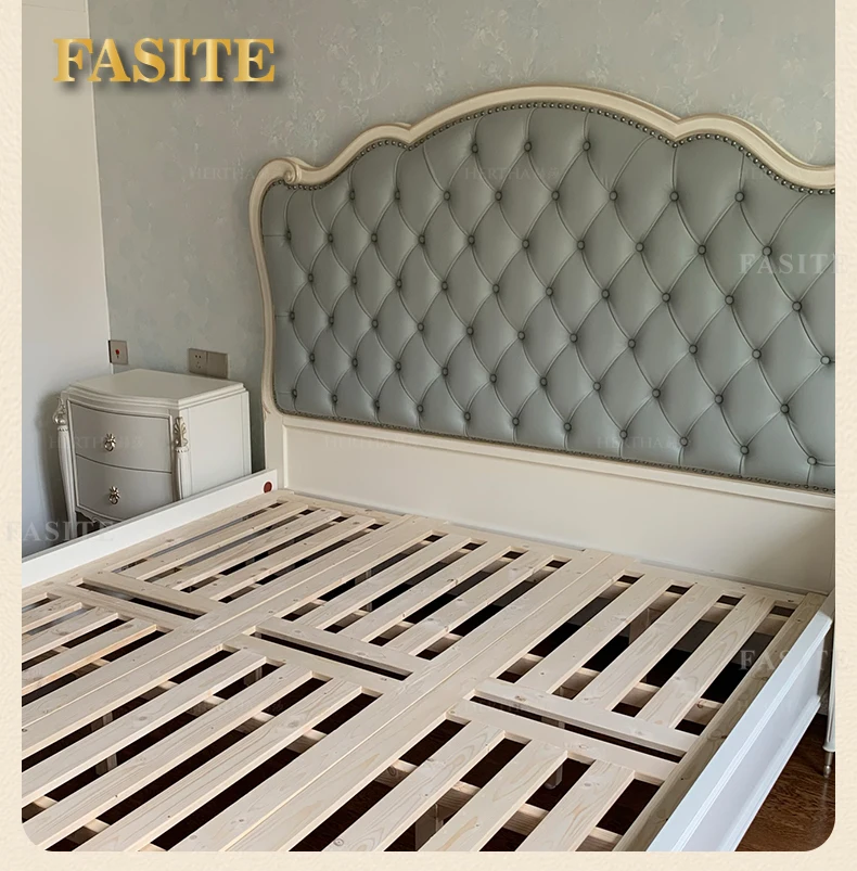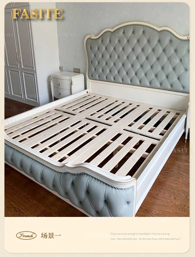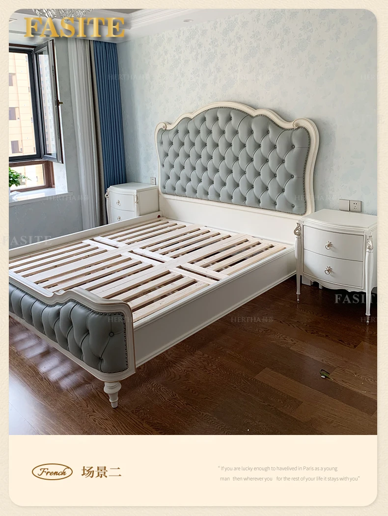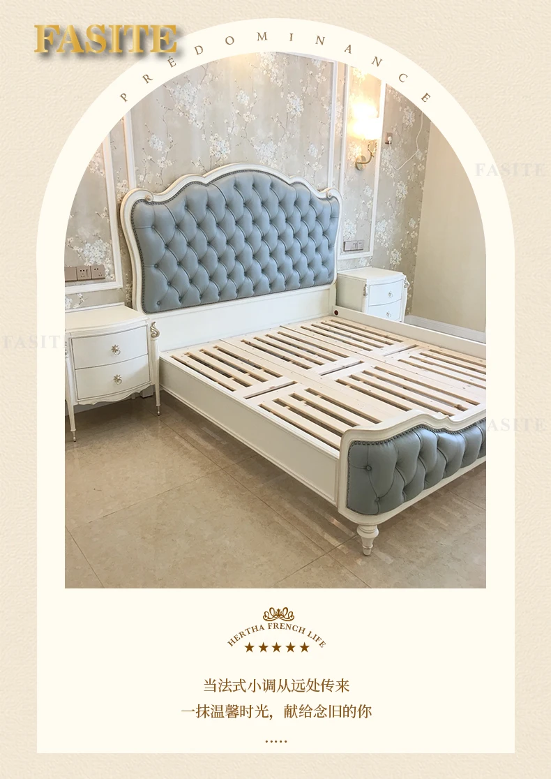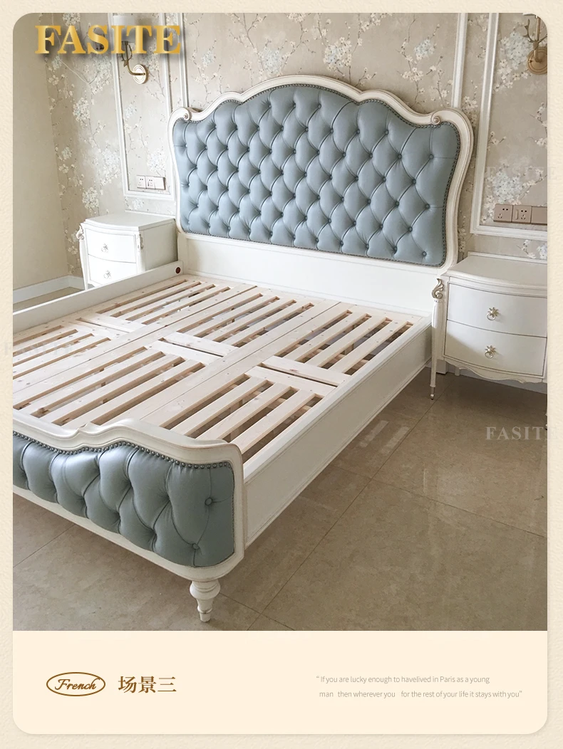 French 1.8M master bedroom leather double bed furniture European solid wood bed American