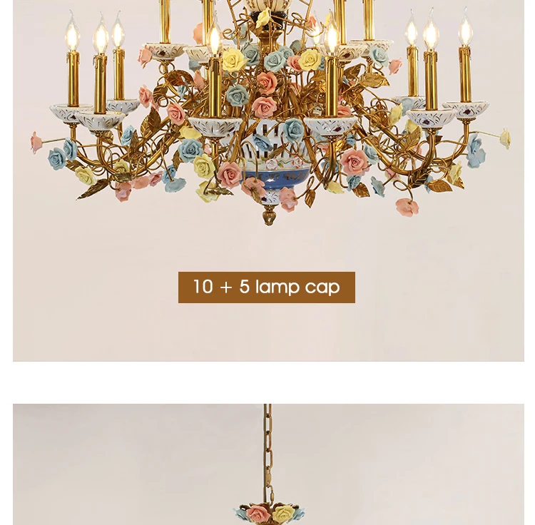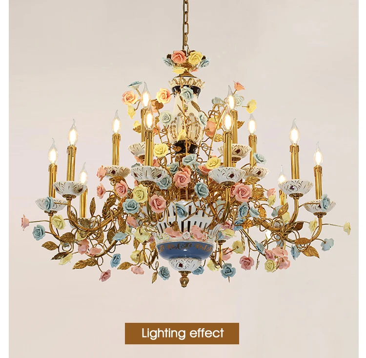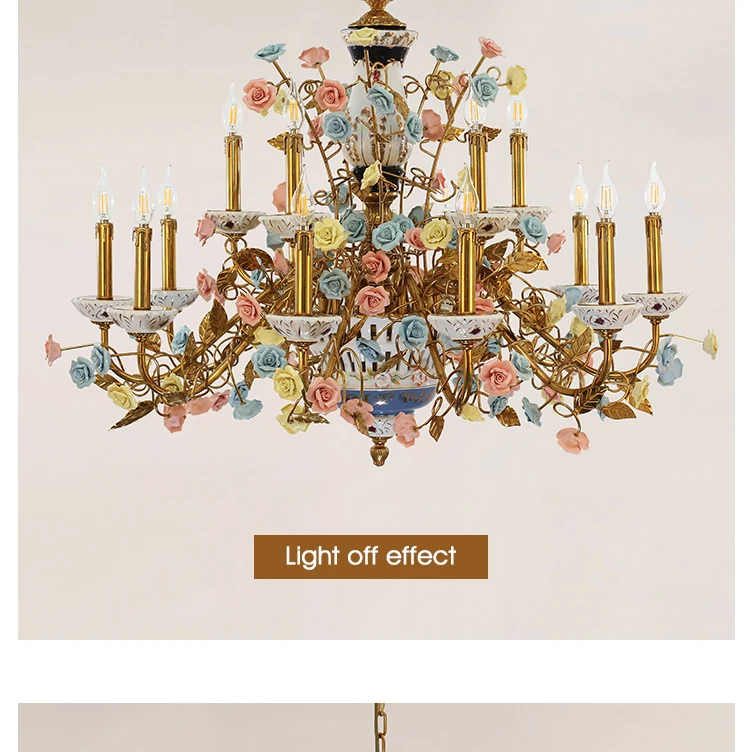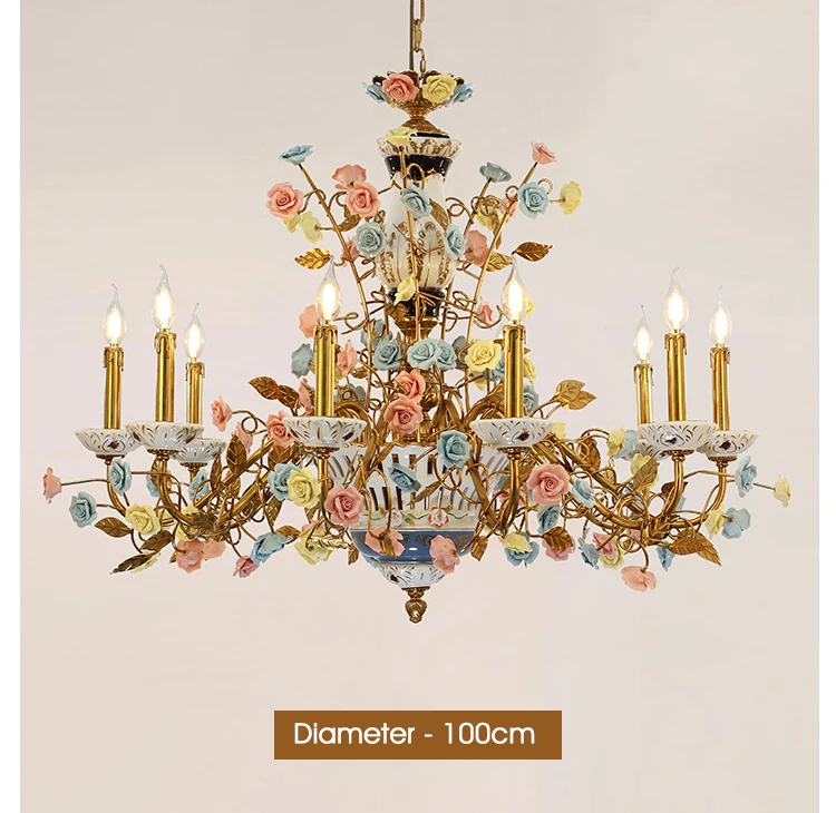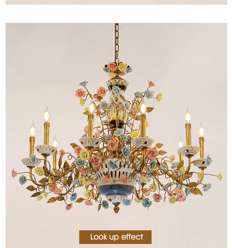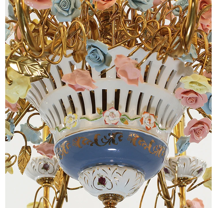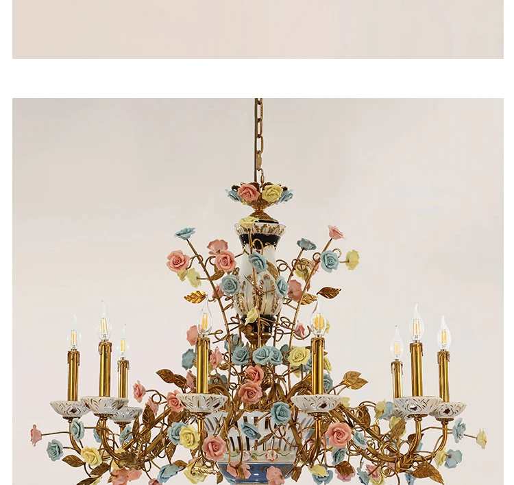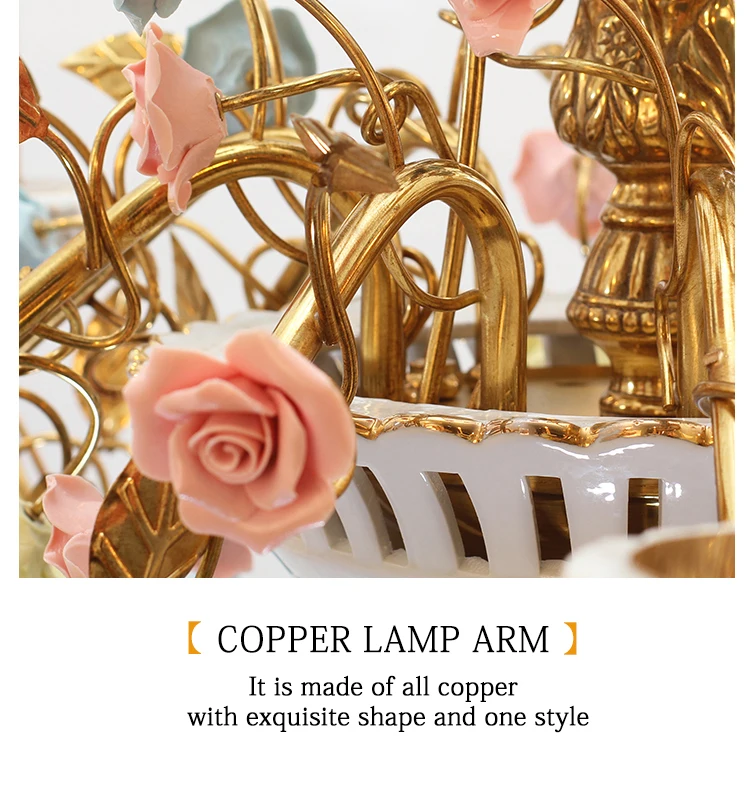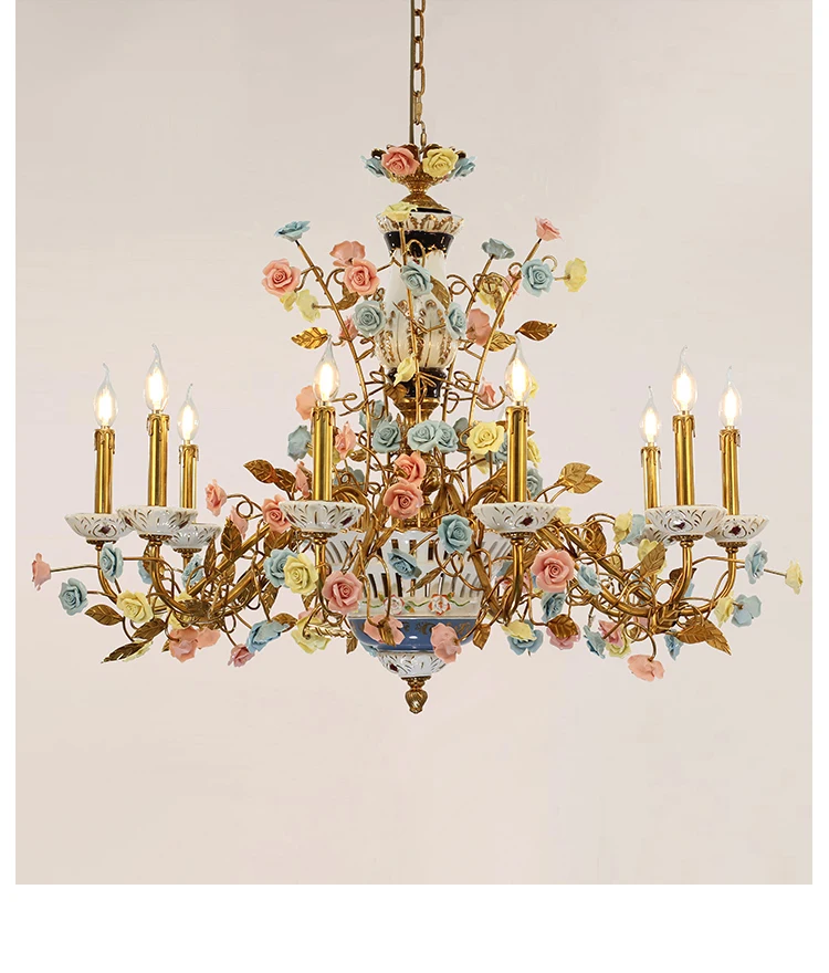 French all copper chandelier pastoral flowers European Ceramic villa living room bedroom creative lamps