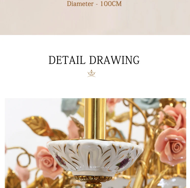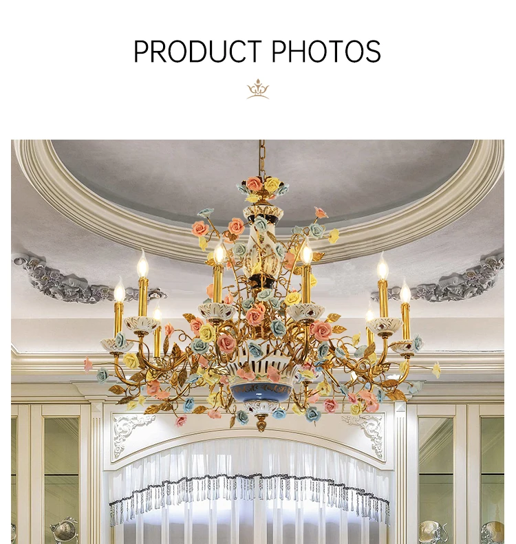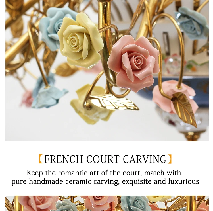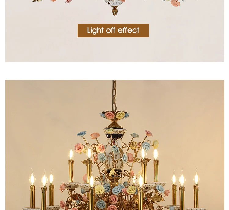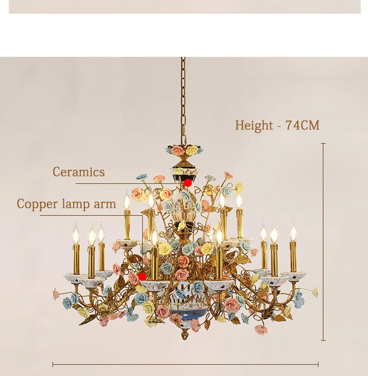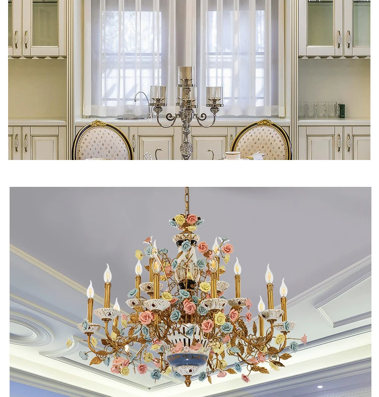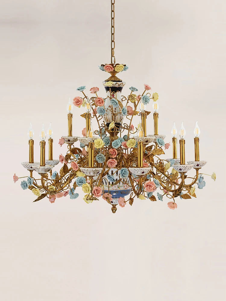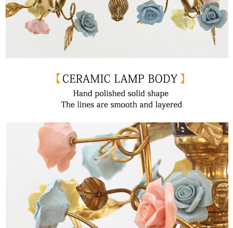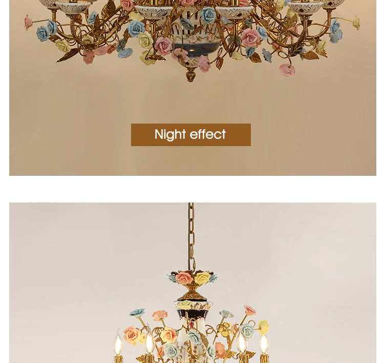 French all copper chandelier pastoral flowers European Ceramic villa living room bedroom creative lamps