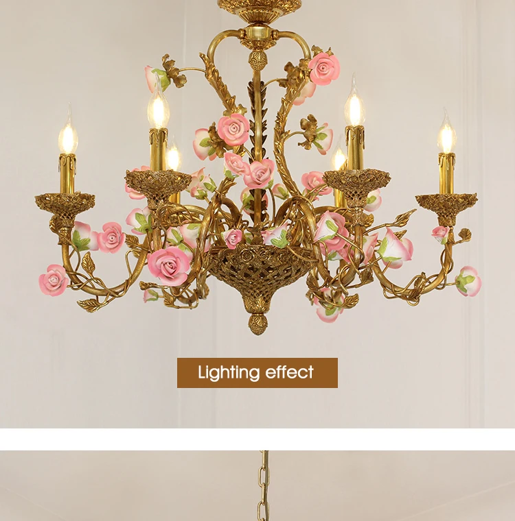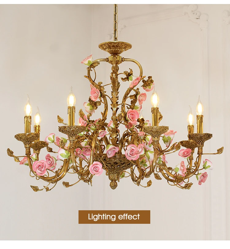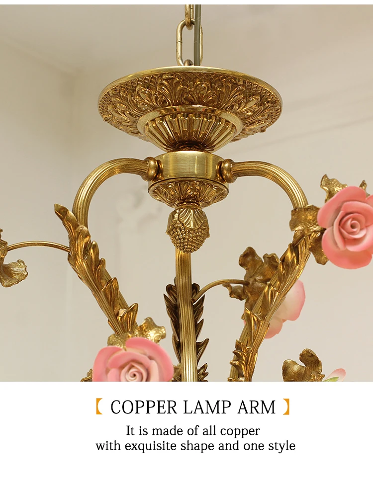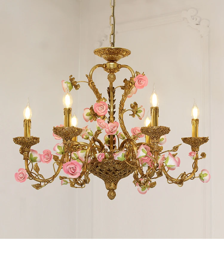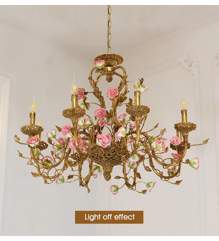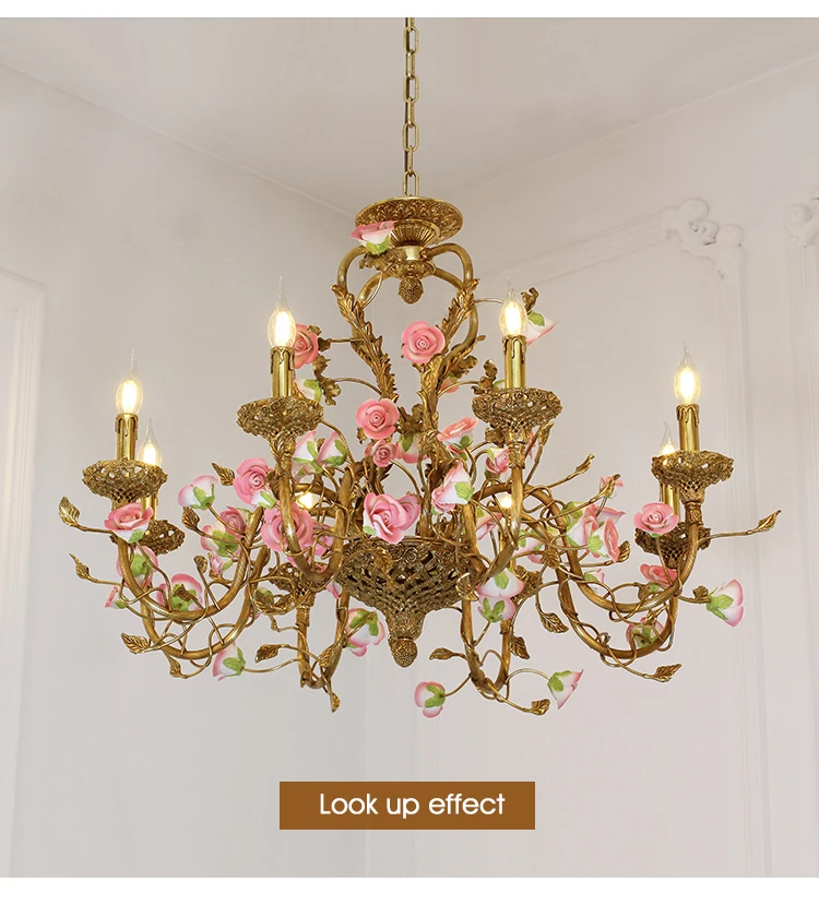 French Ceramic Flower Chandelier European bedroom creative romantic villa living room dining room copper pink