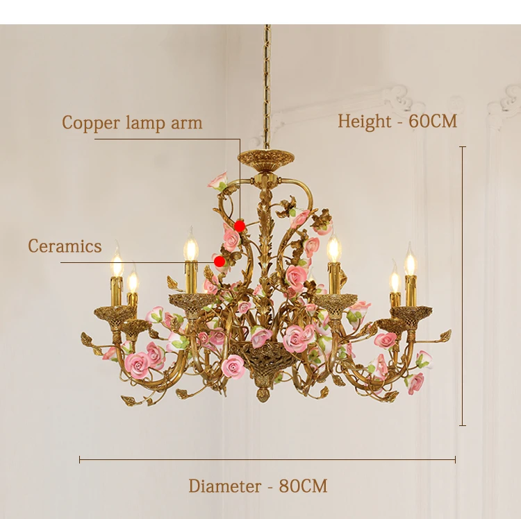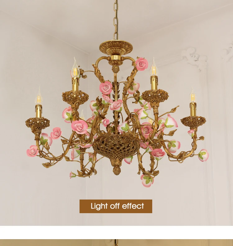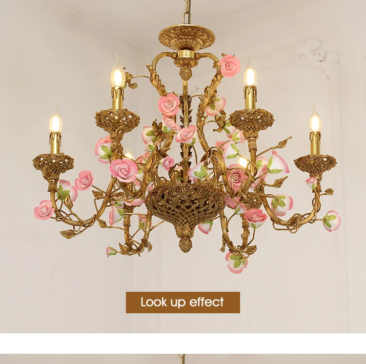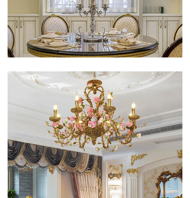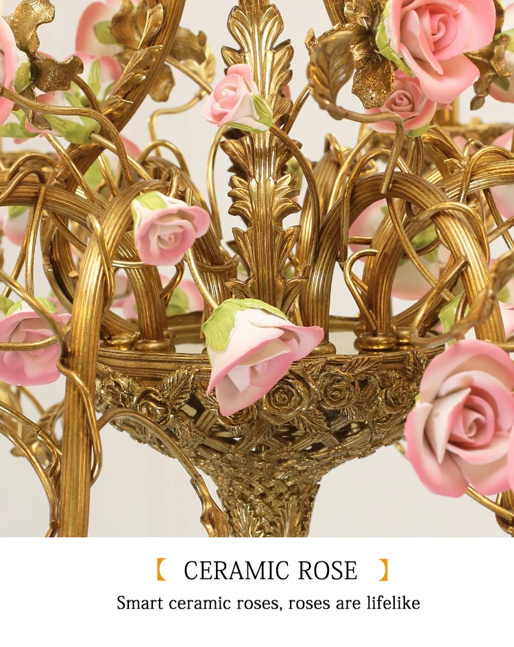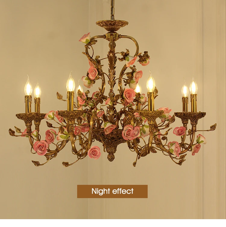 French Ceramic Flower Chandelier European bedroom creative romantic villa living room dining room copper pink