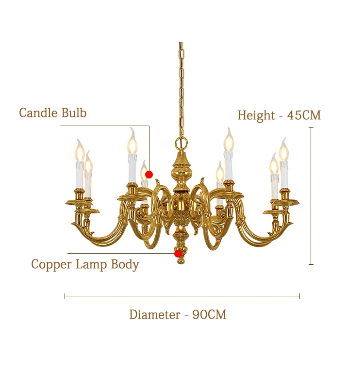 French copper chandelier villa living room luxury atmosphere European bedroom restaurant American retro lamps