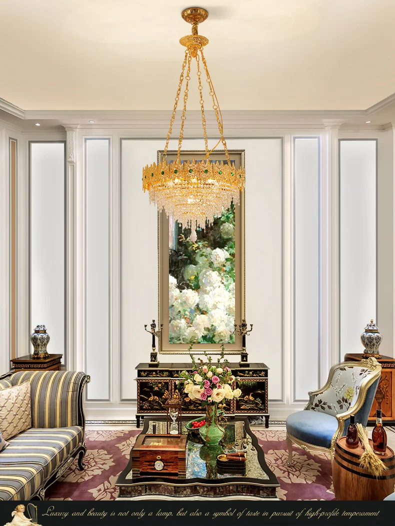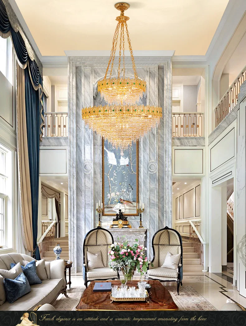 French Duplex Building Large Chandelier Villa Hall Living Room Light Hotel Lobby Light Luxury Crystal Lamp Long Chandelier