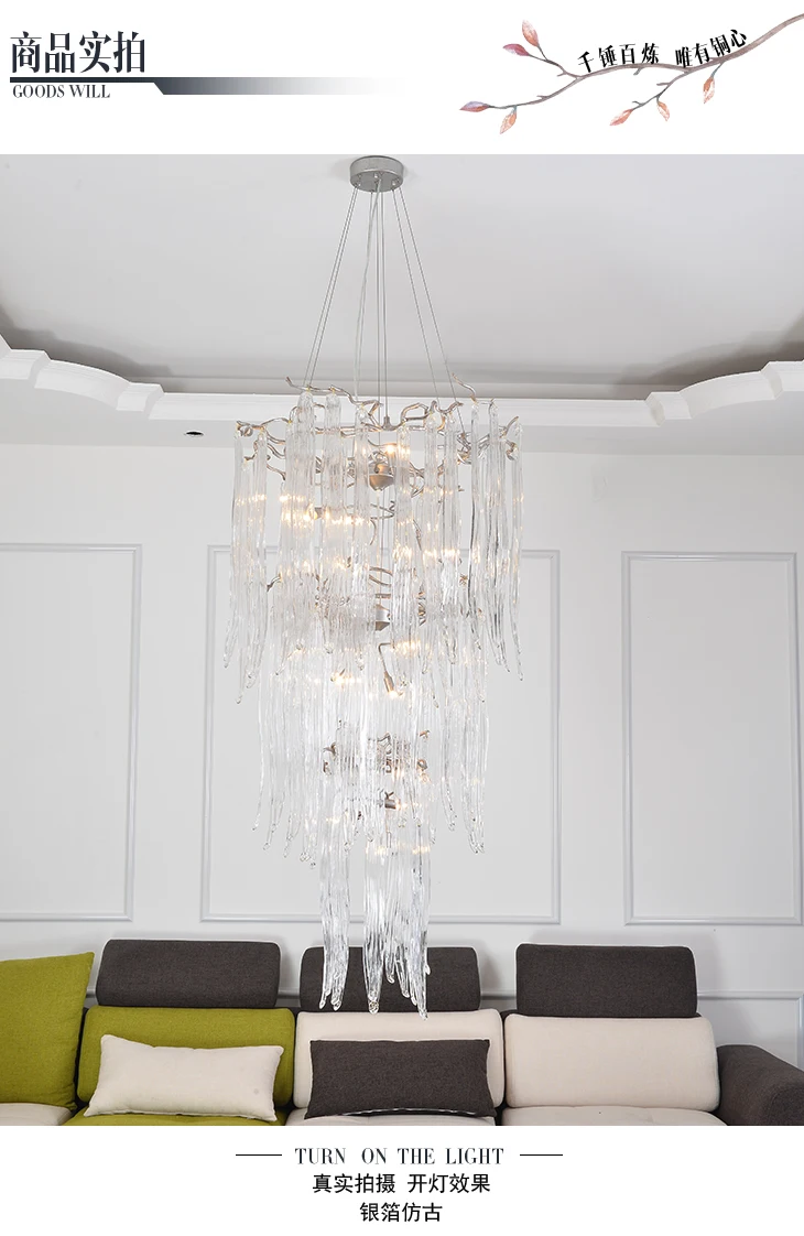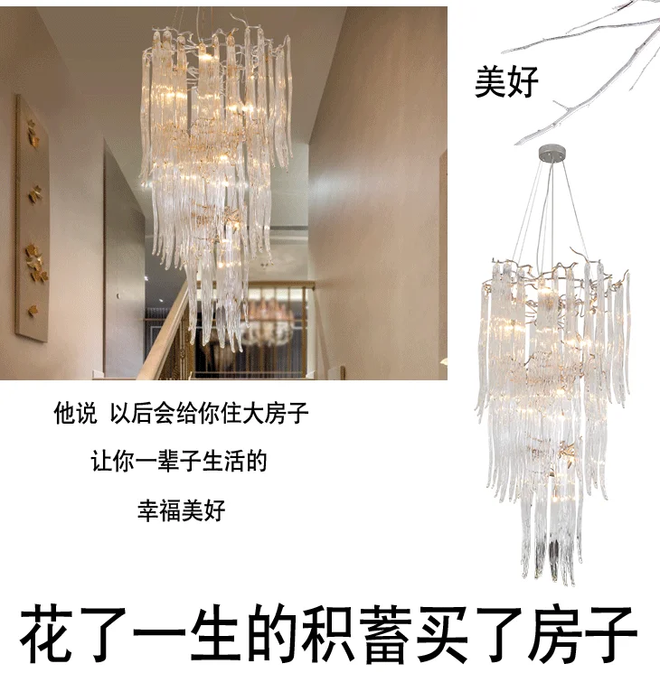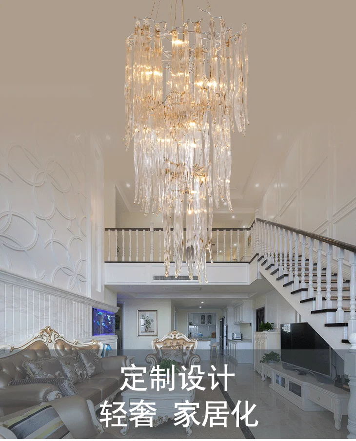French Entry Lux Villa Long Chandelier Duplex Rotating Stair Light European Crystal Glass Atmospheric Hollow Living Room Lamps