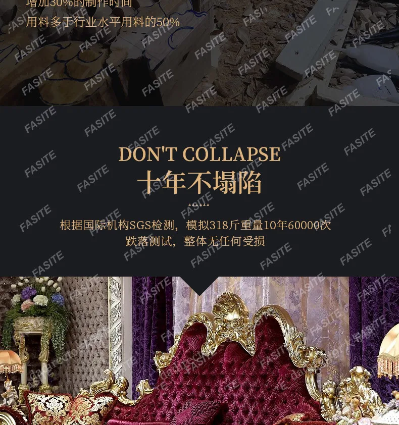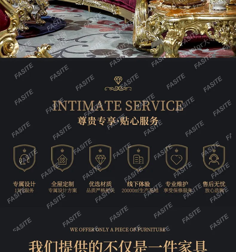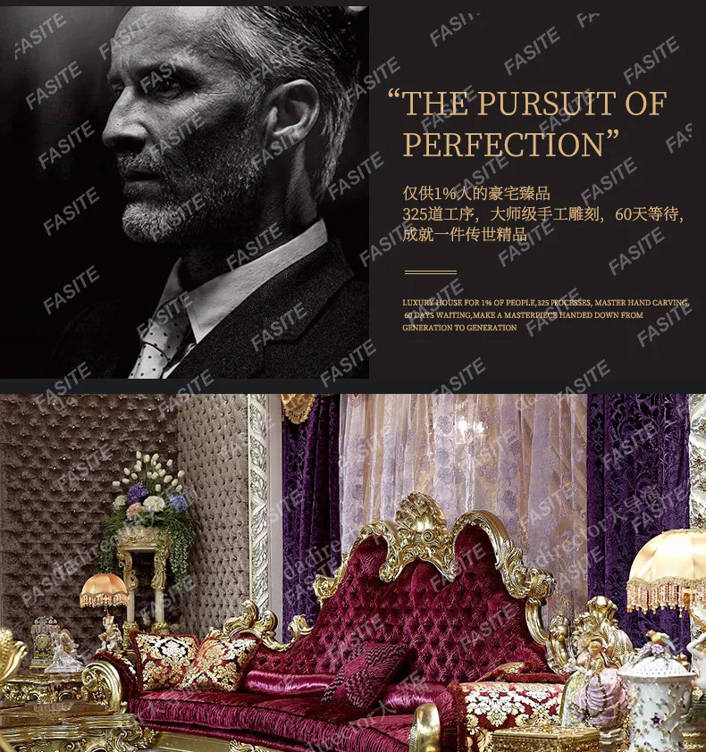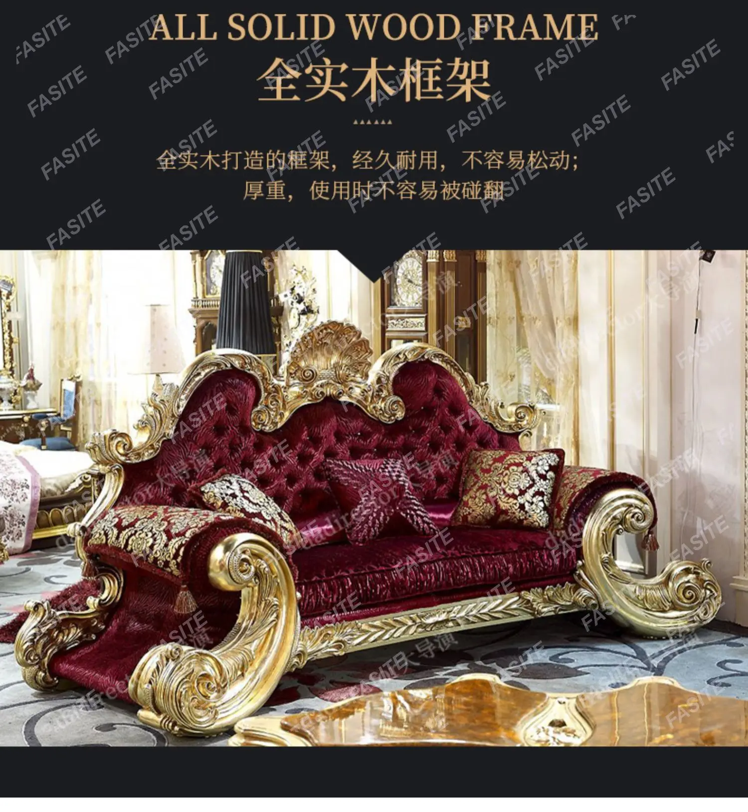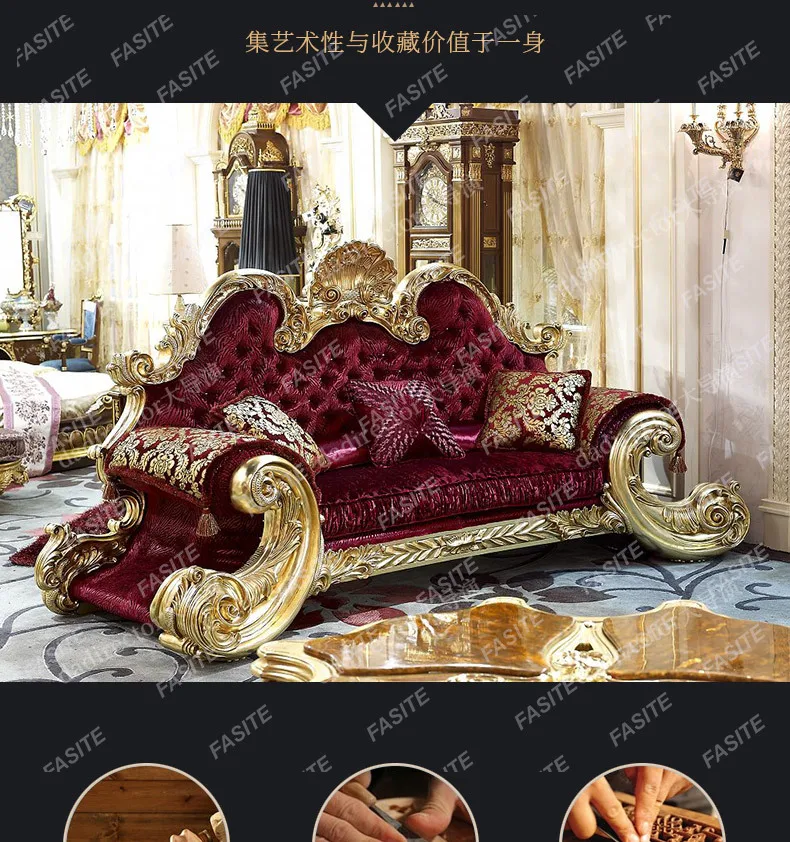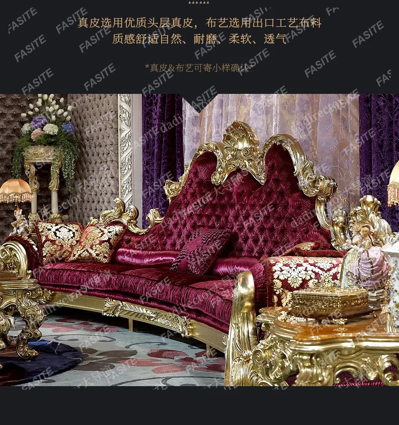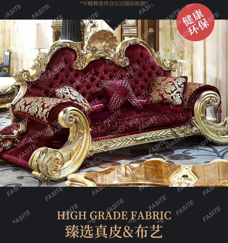French luxury carved solid wood sofa villa palace gold foil sofa European living room fabric sofa furniture customization