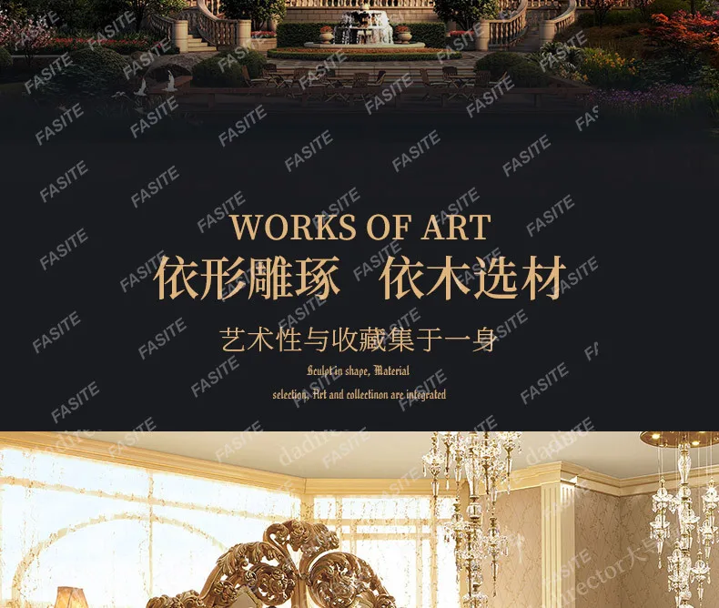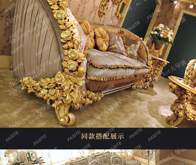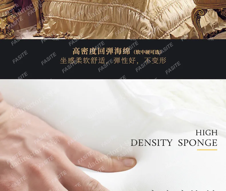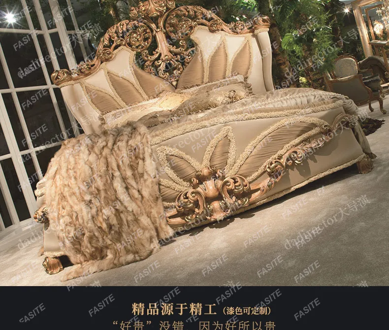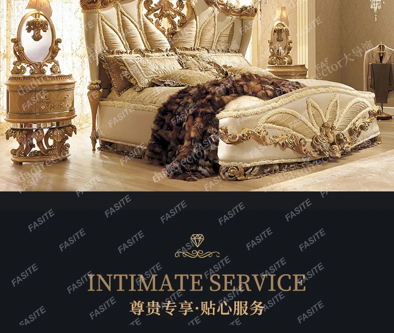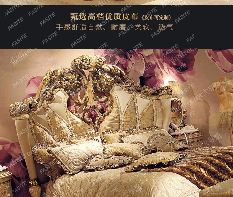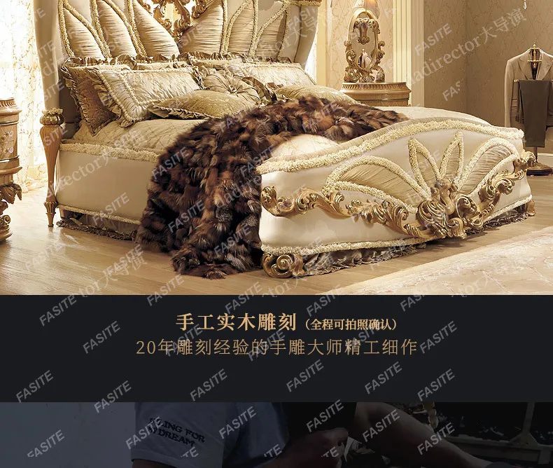 French Luxury Fabric Double Bed 2-meter Villa Court European Solid Wood Carved Wedding Bed Furniture Customization