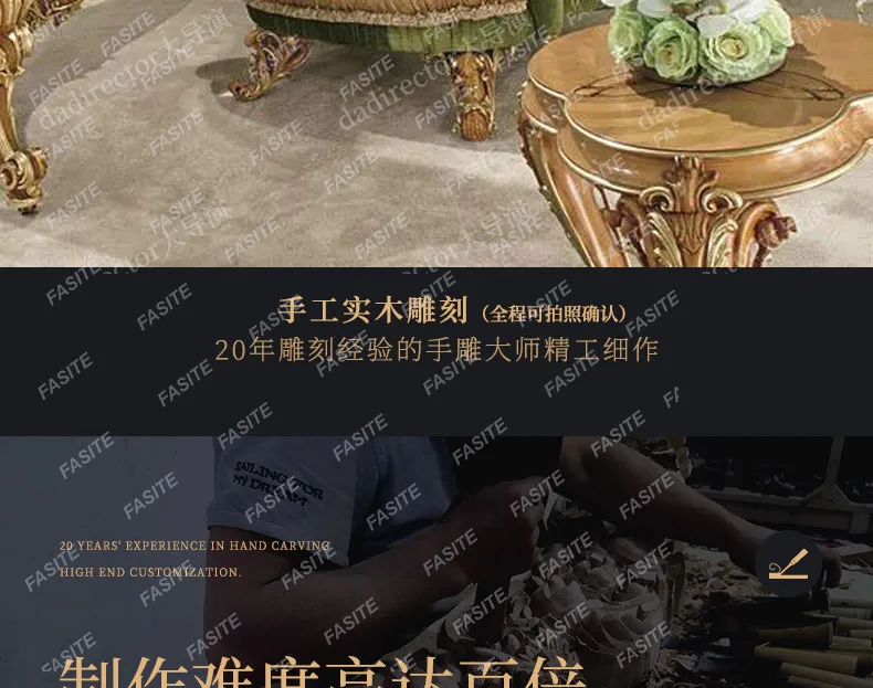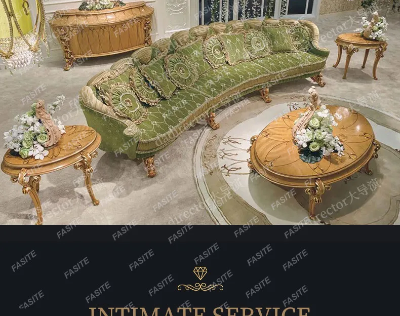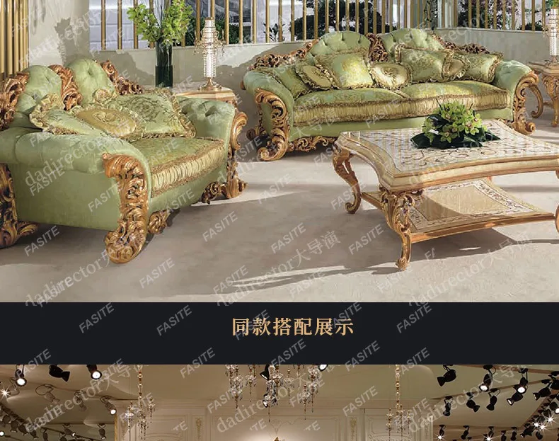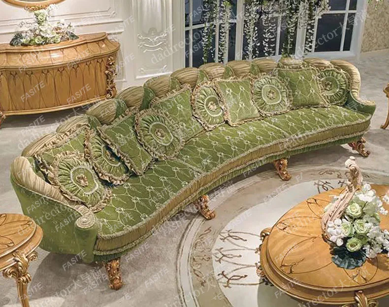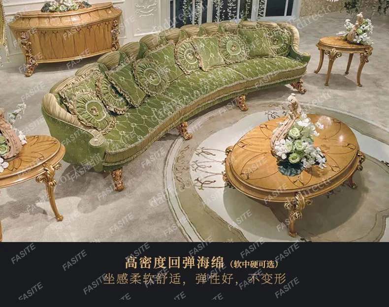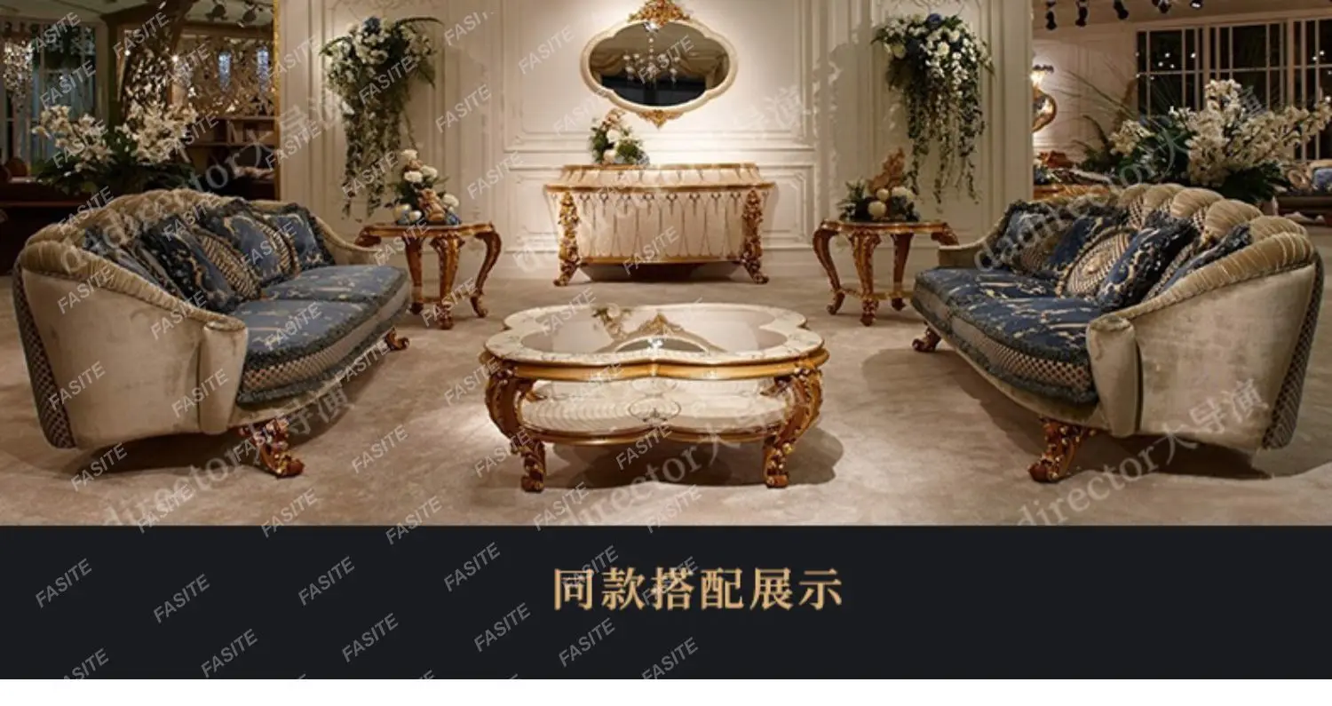 French luxury solid wood sofa combination Italian European fabric carved sofa palace villa furniture customization