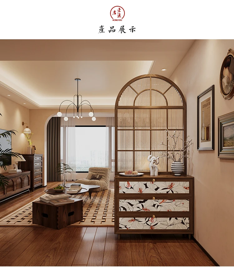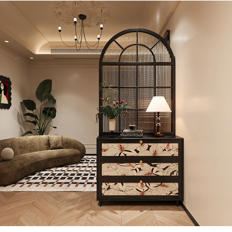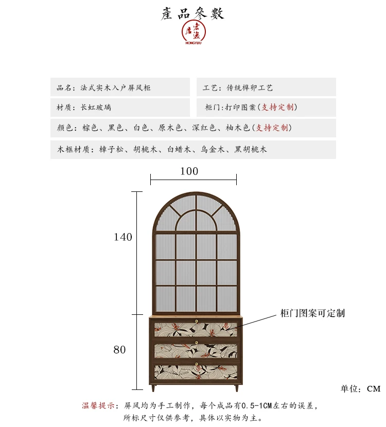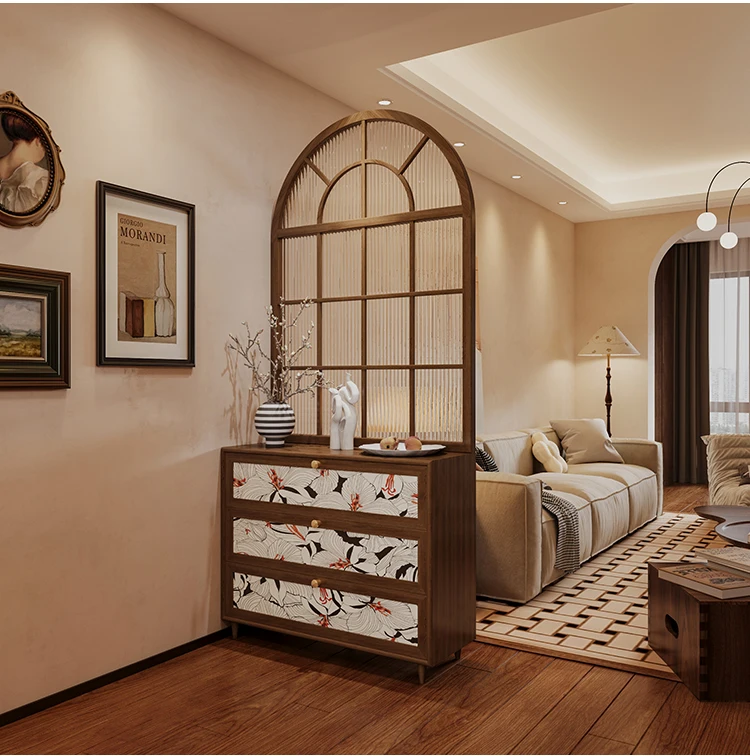 French retro rainbow glass solid wood screen, entrance door, shoe cabinet partition, living room, bathroom, household bedroom, s