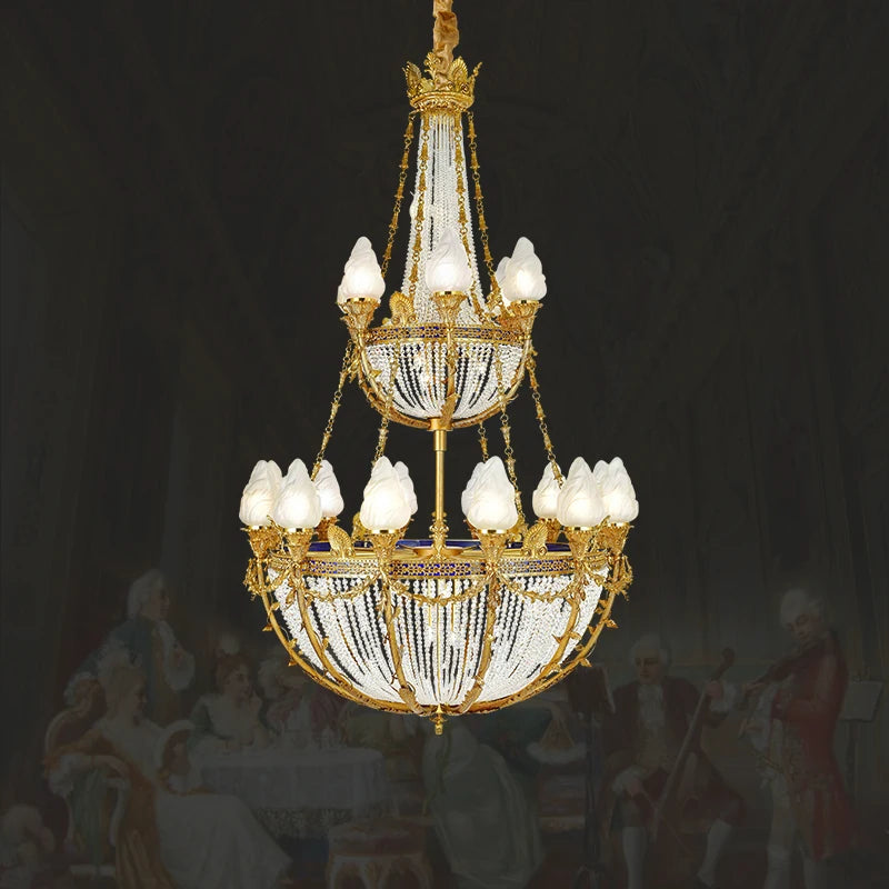 French Style Copper High Ceiling Pendant Light European Traditional Villa Duplex Loft Hall Lamp Brass Crystal Large Chandelier