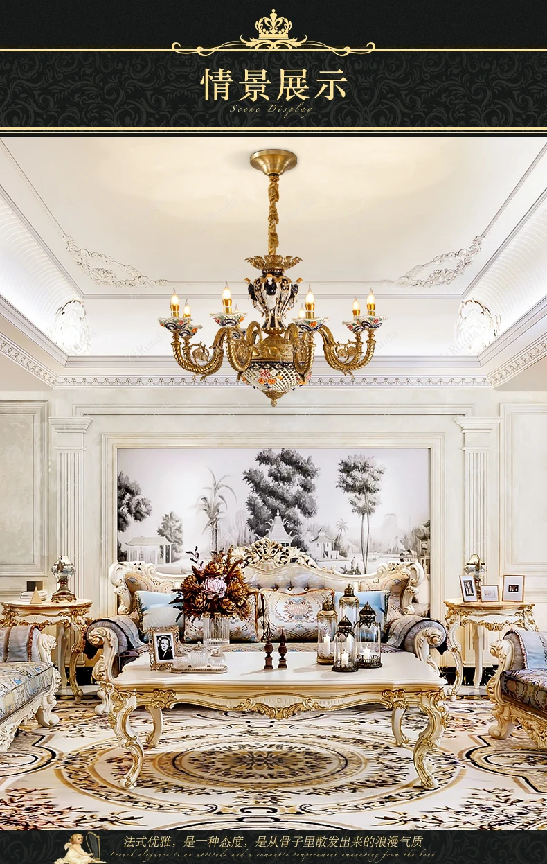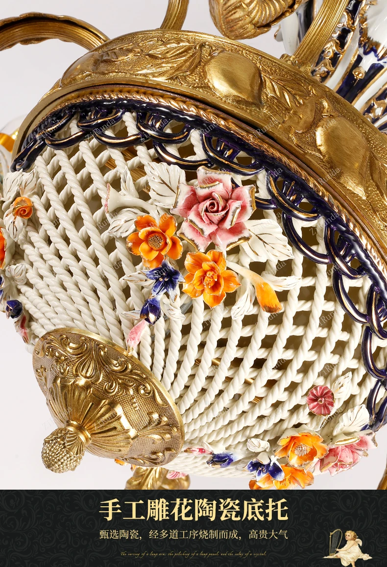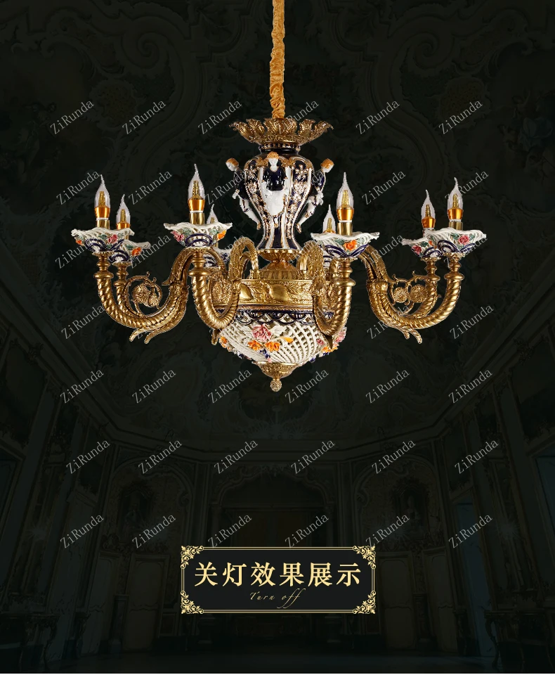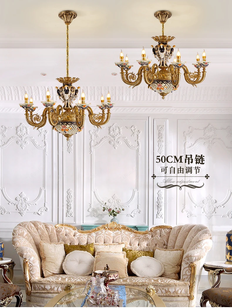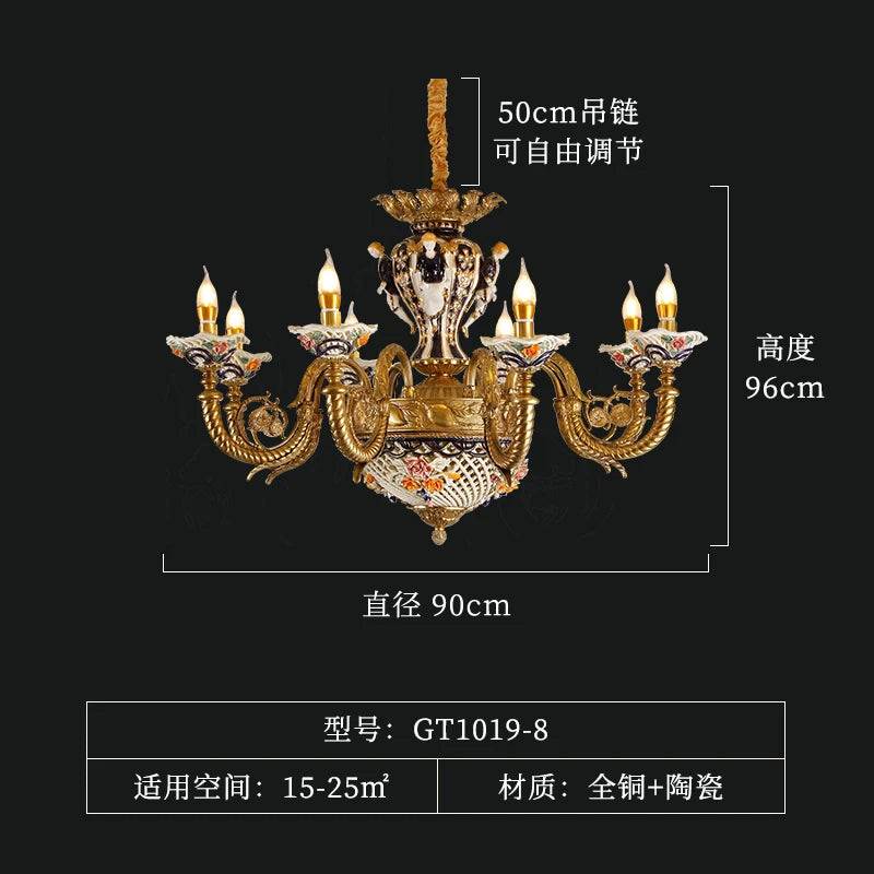 French villa living room, ceramic chandeliers, European luxury dining room,bedroom, study,high-end pure copper lighting fixtures