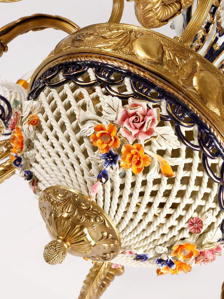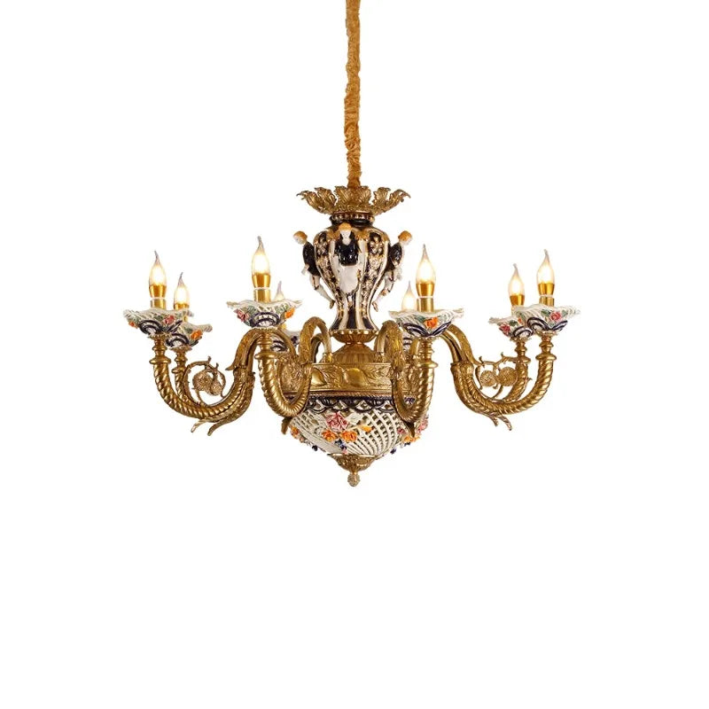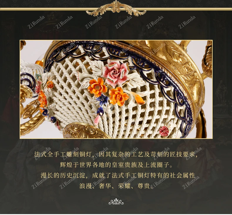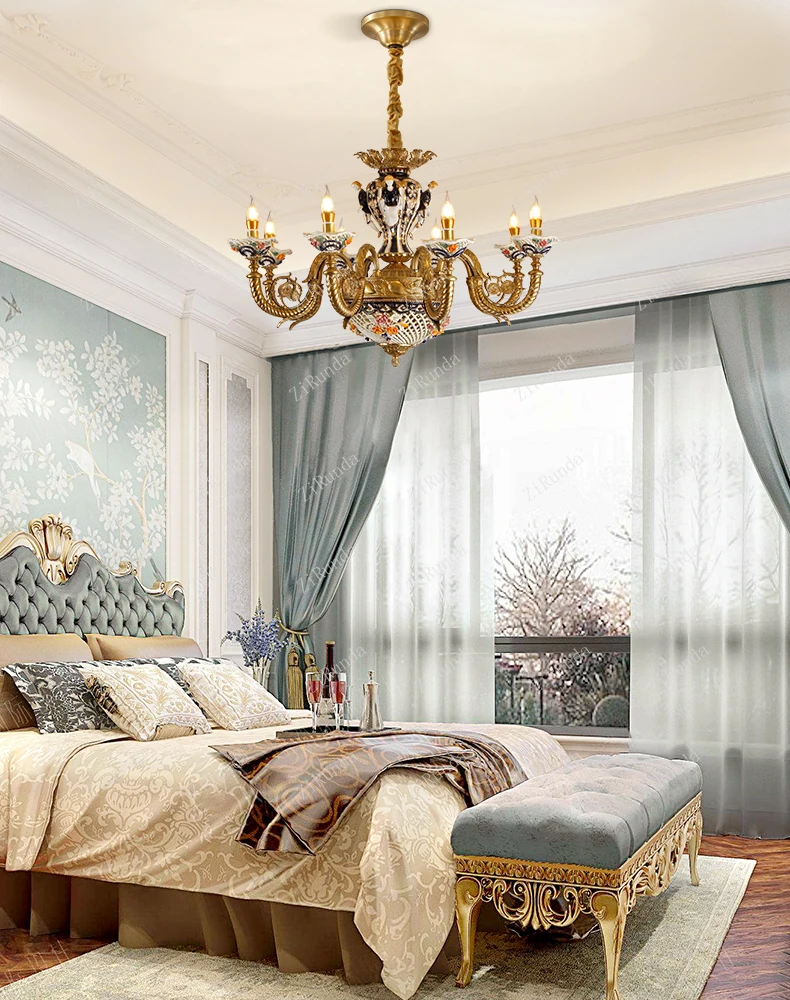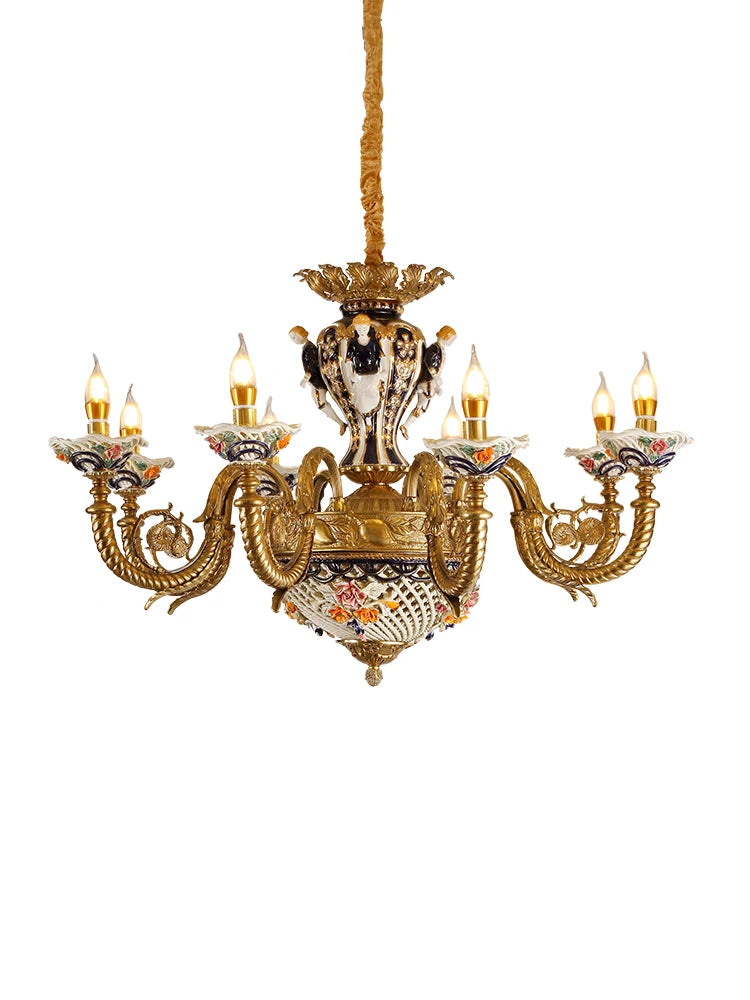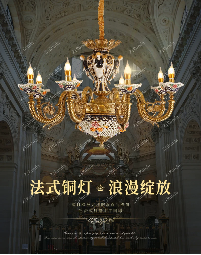 French villa living room, ceramic chandeliers, European luxury dining room,bedroom, study,high-end pure copper lighting fixtures