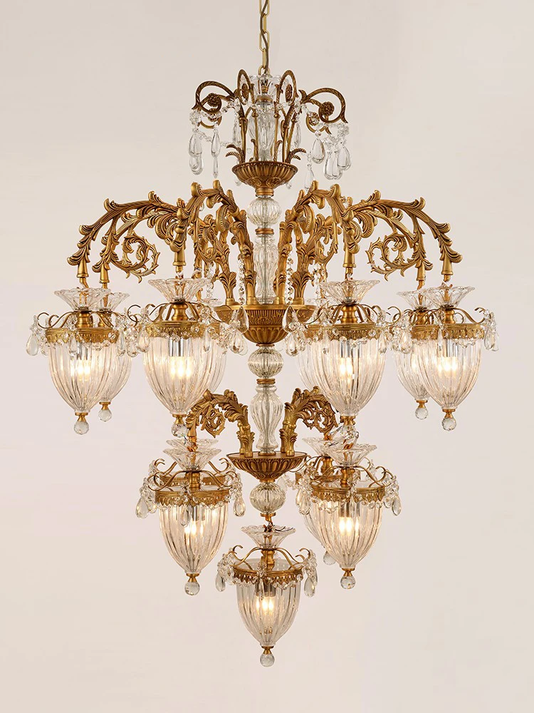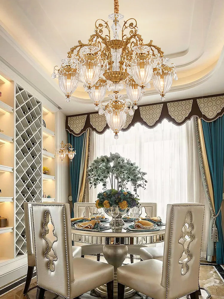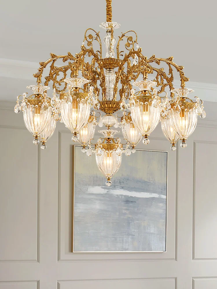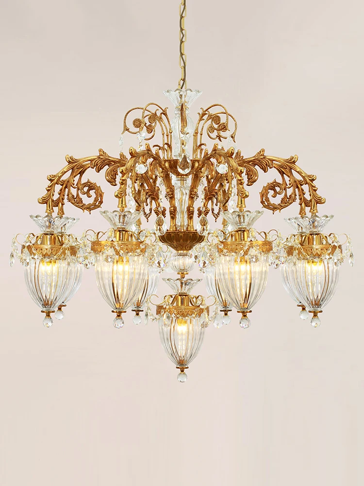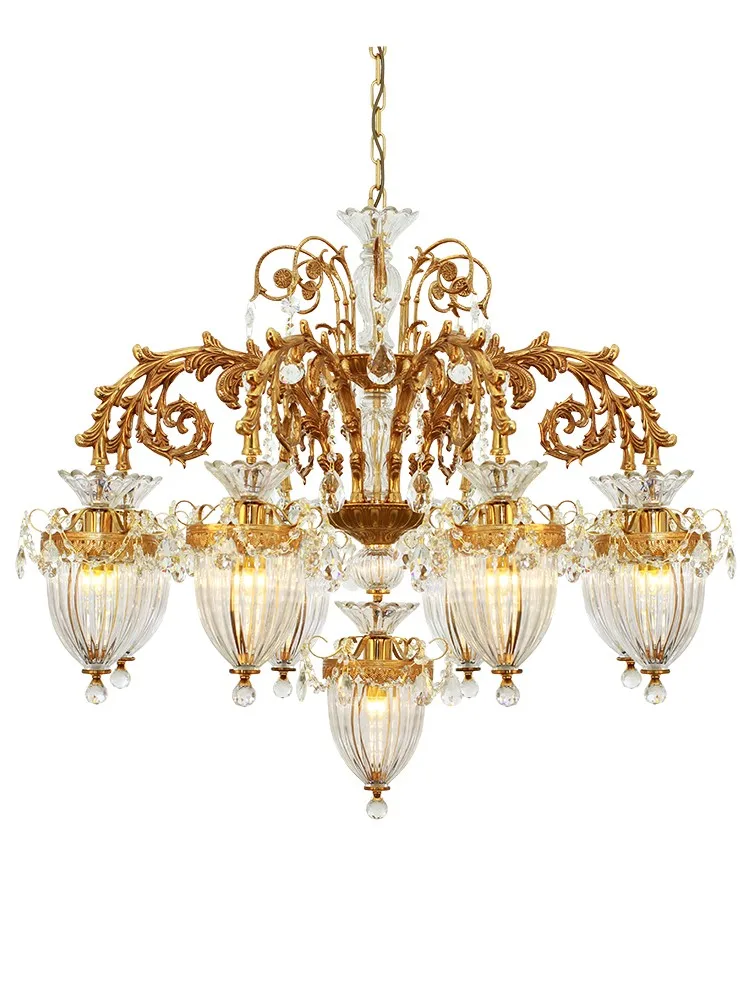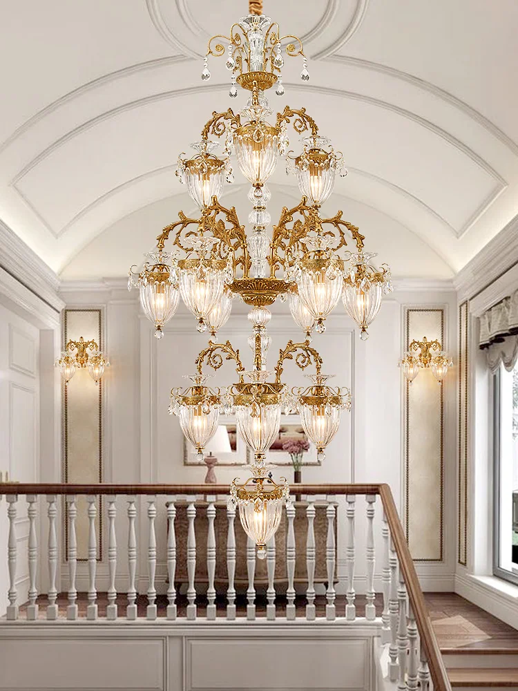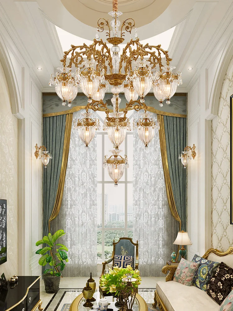French Villa Living Room Entrance Hall Lamp European-style Atmosphere Hotel Llighting Stairwell Copper Crystal Long Chandelier