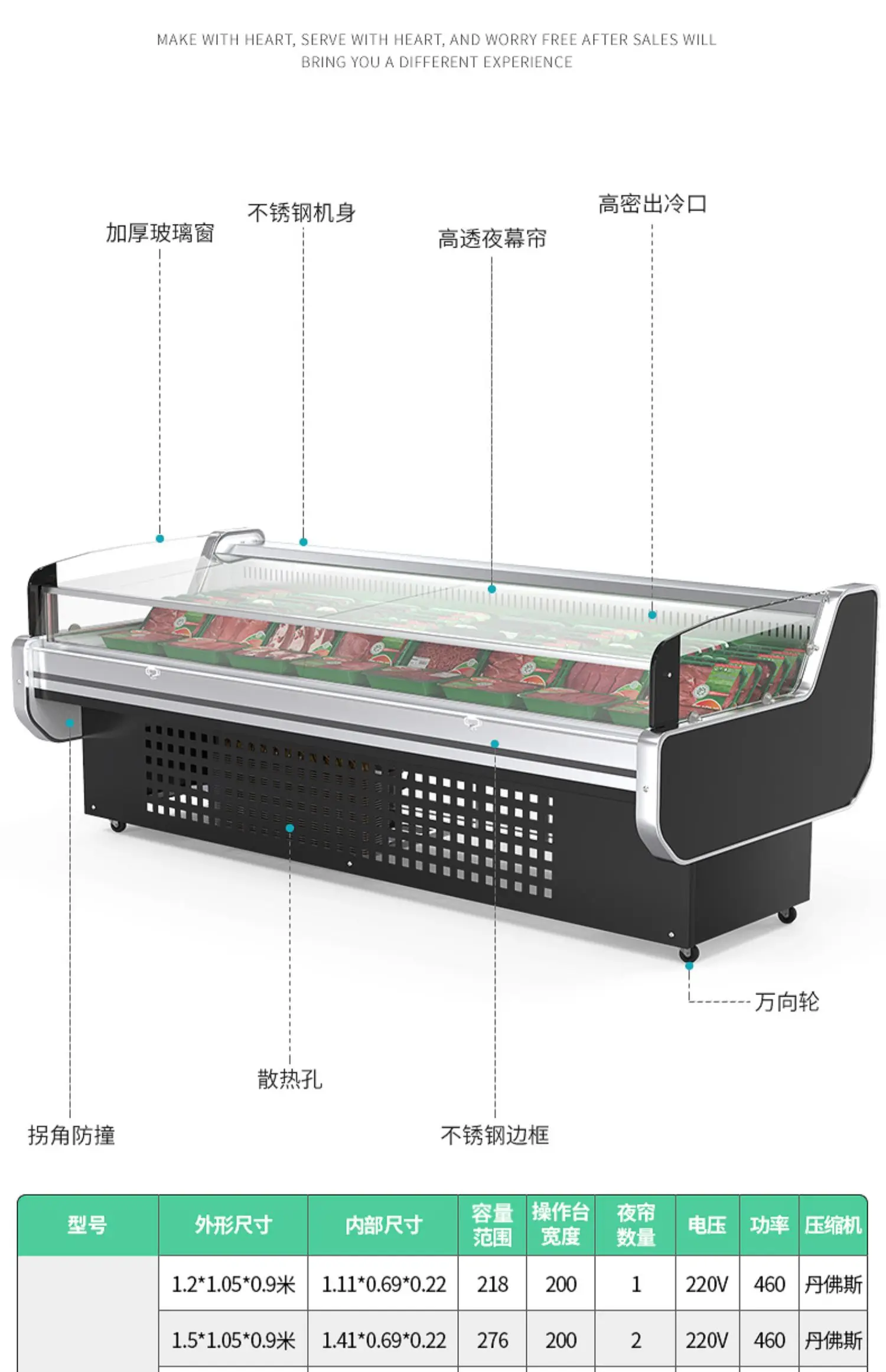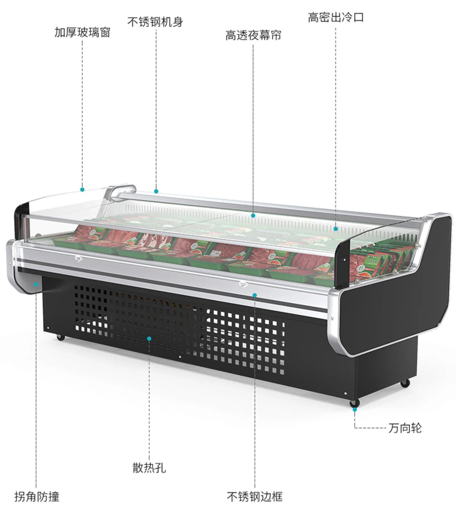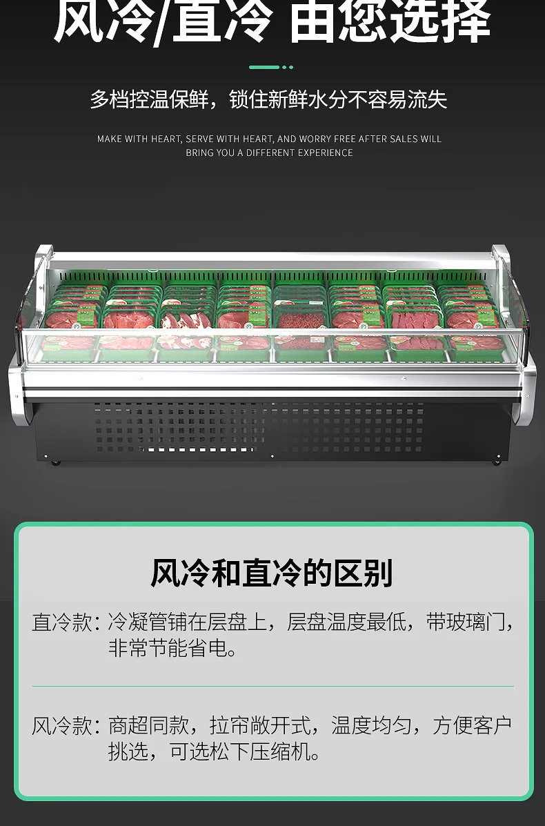 Fresh meat display cabinet, freezer, commercial pig beef preservation cabinet, fruit salvage refrigeration supermarket, air-cool