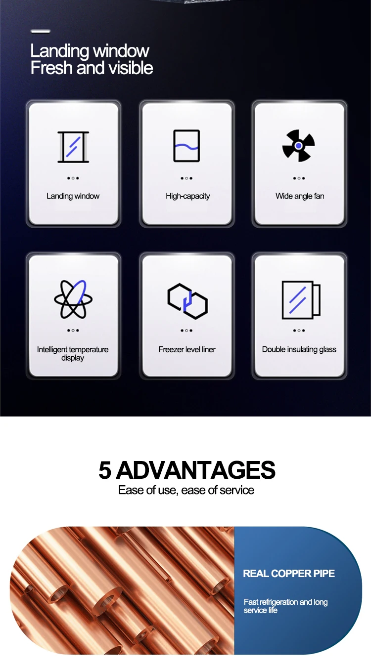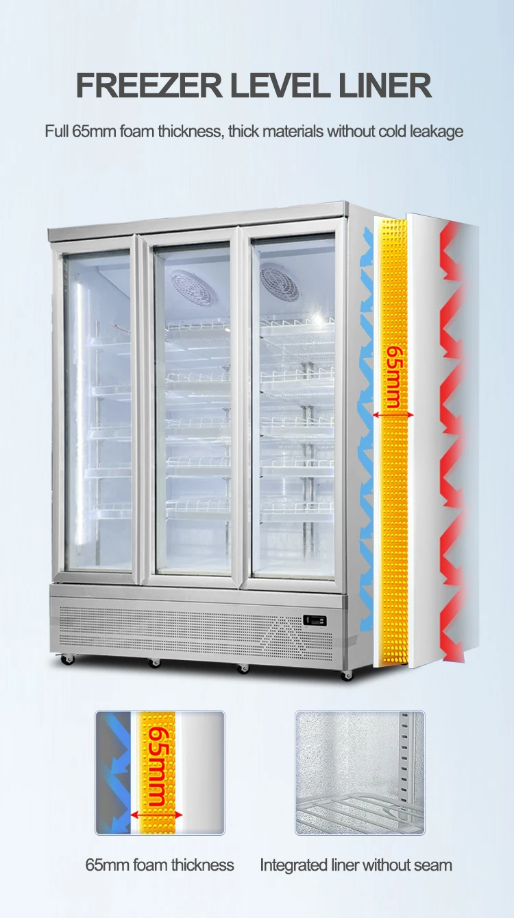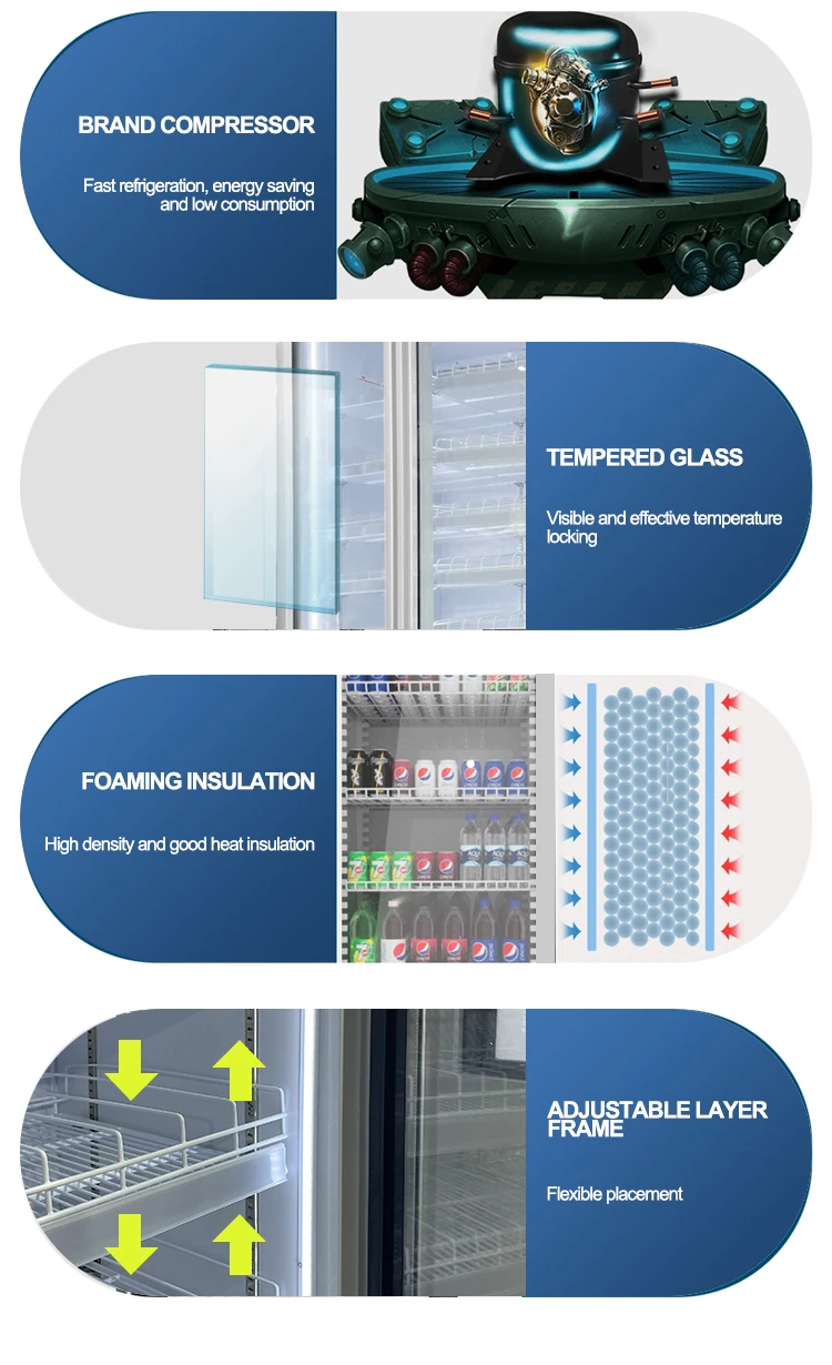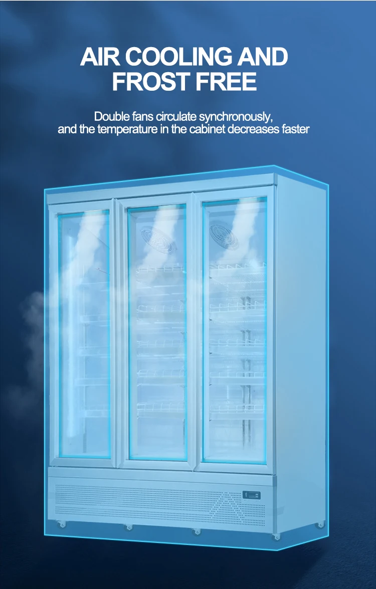 Frost Free Glass Door Chiller Vertical Display Showcase Beverage Refrigerator Cabinet Cold Drink Beer Cooler