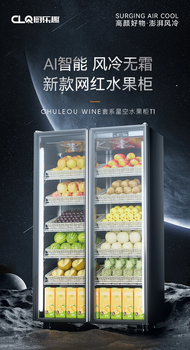 Fruit Preservation Display Cabinet Cold Fresh Supermarket Wind Curtain Vegetable Refrigeration Network Red Double Door Commercia