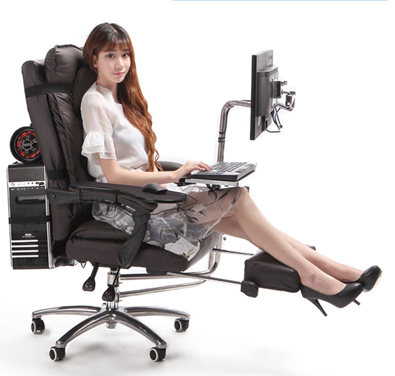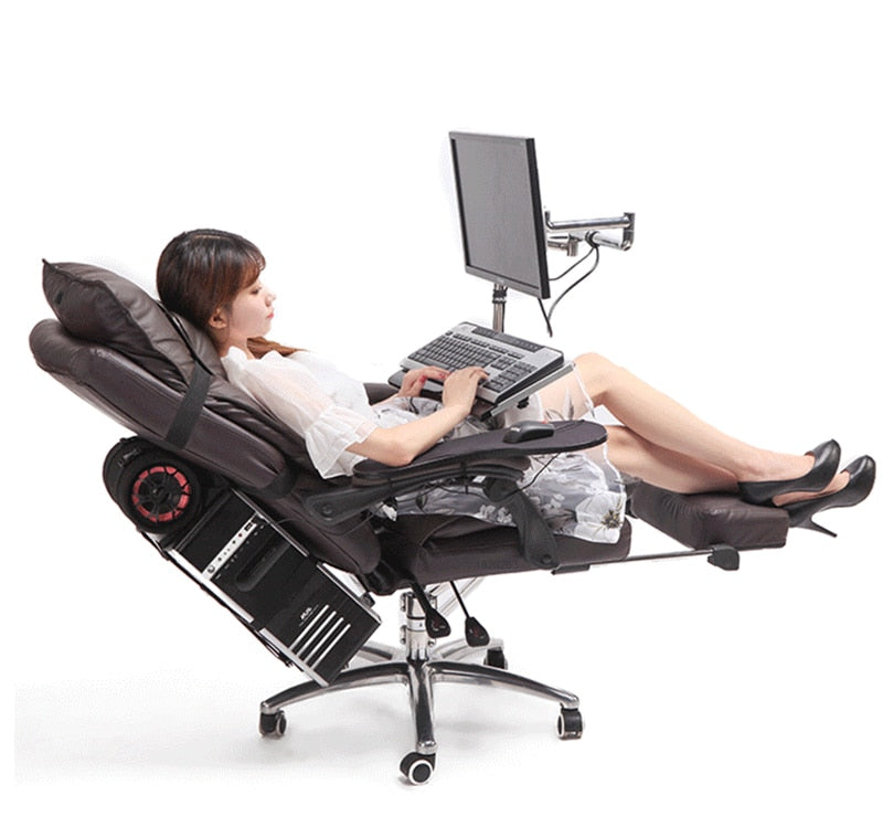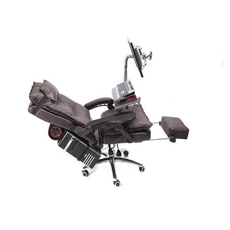 Full Motion Leather Reclining Chair + Chair Clamping Monitor Holder+ Keyboard Holder with Square Mouse Pad+ Chair Arm Clamp Mouse Mad for Game and Office