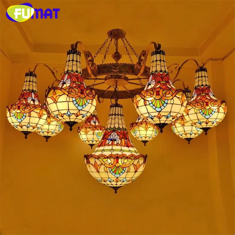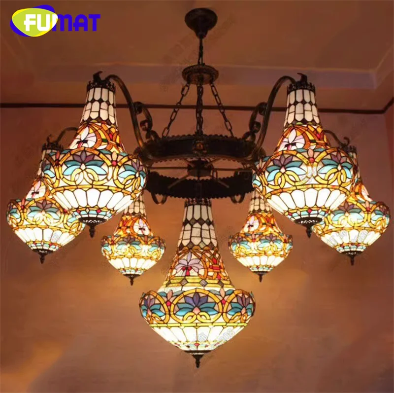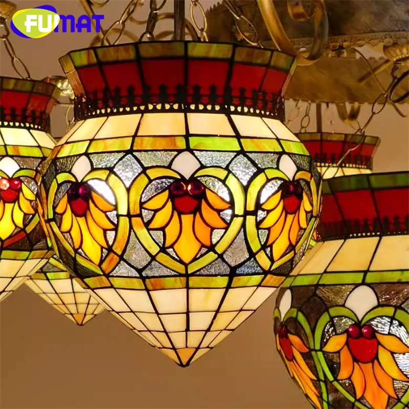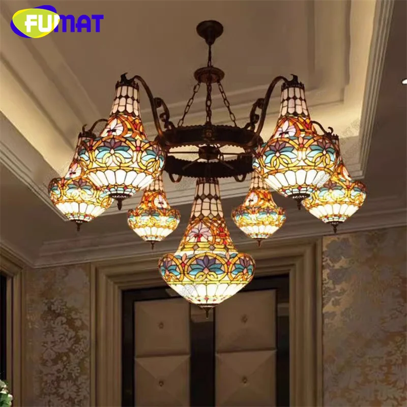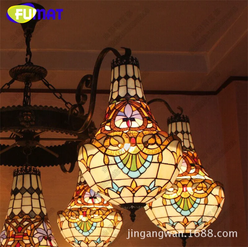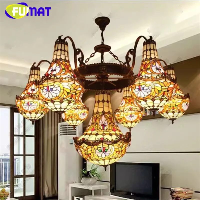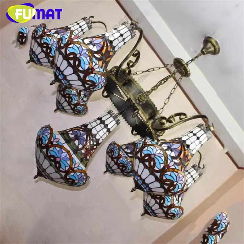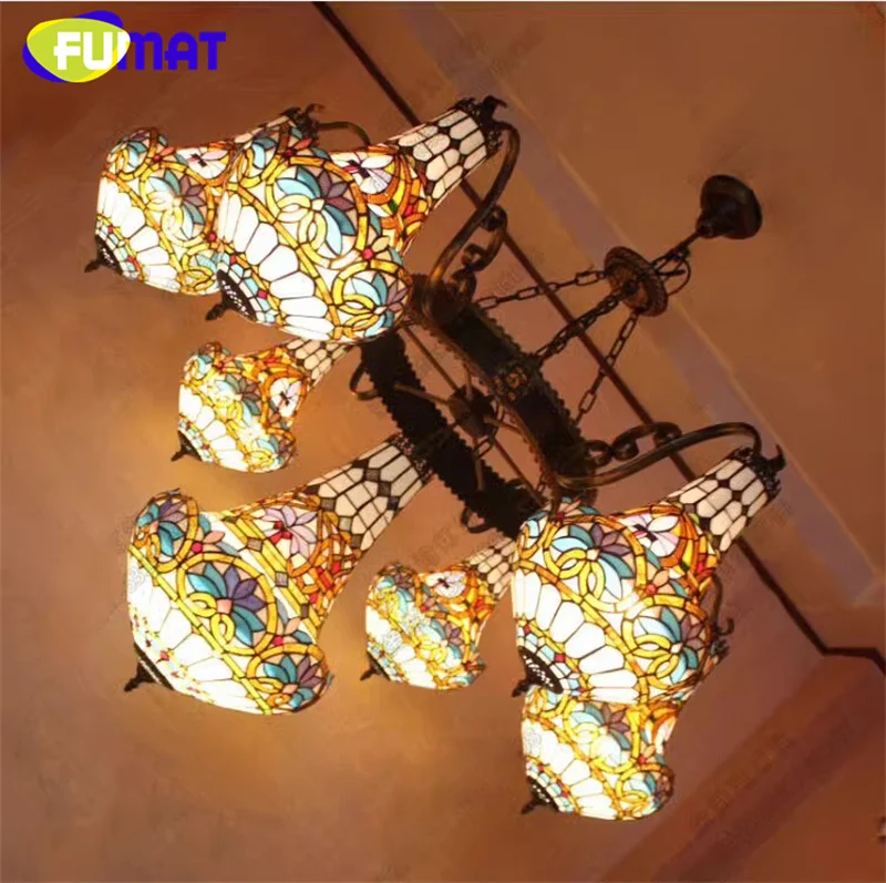 FUMAT Tiffany stained glass tulip pattern Baroque European chandelier Hotel Living room Bedroom light Restaurant Villa LED deco