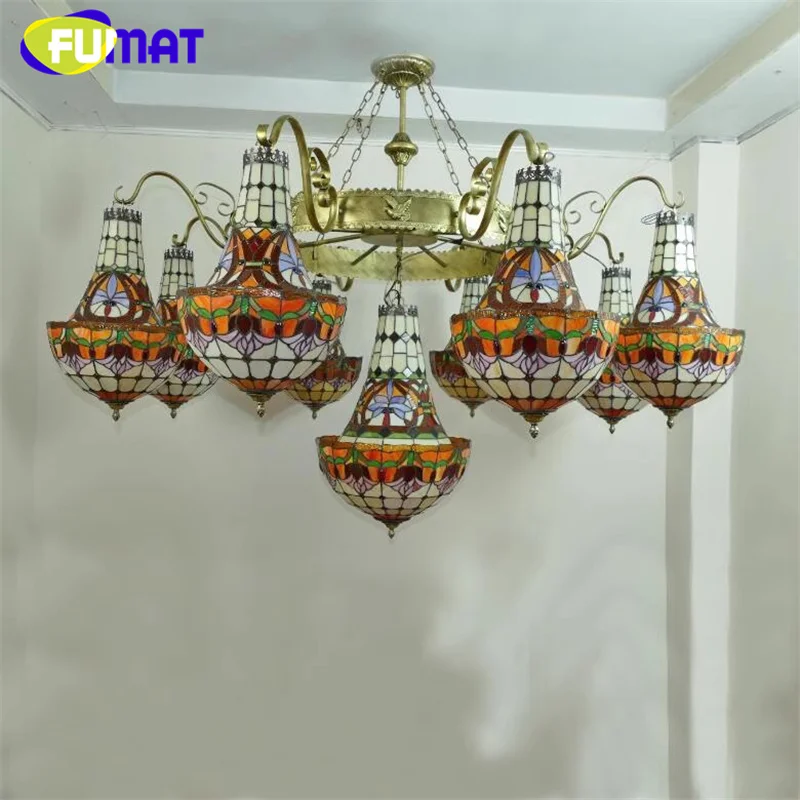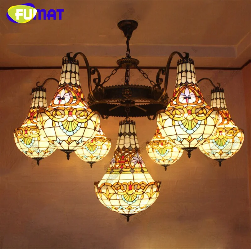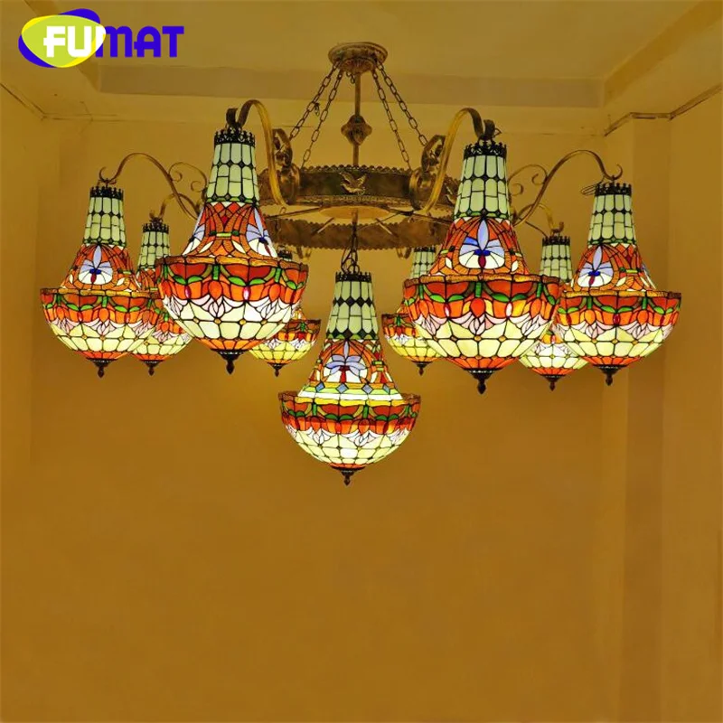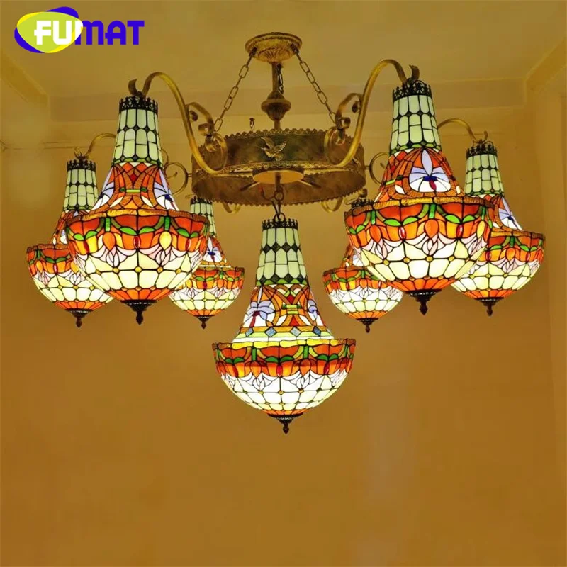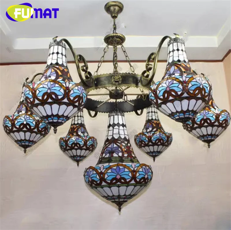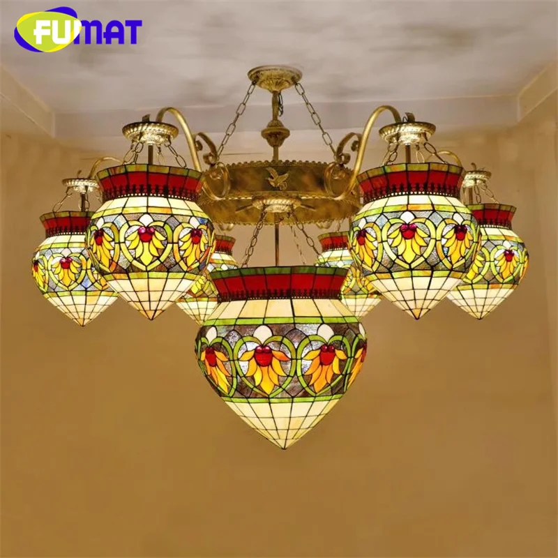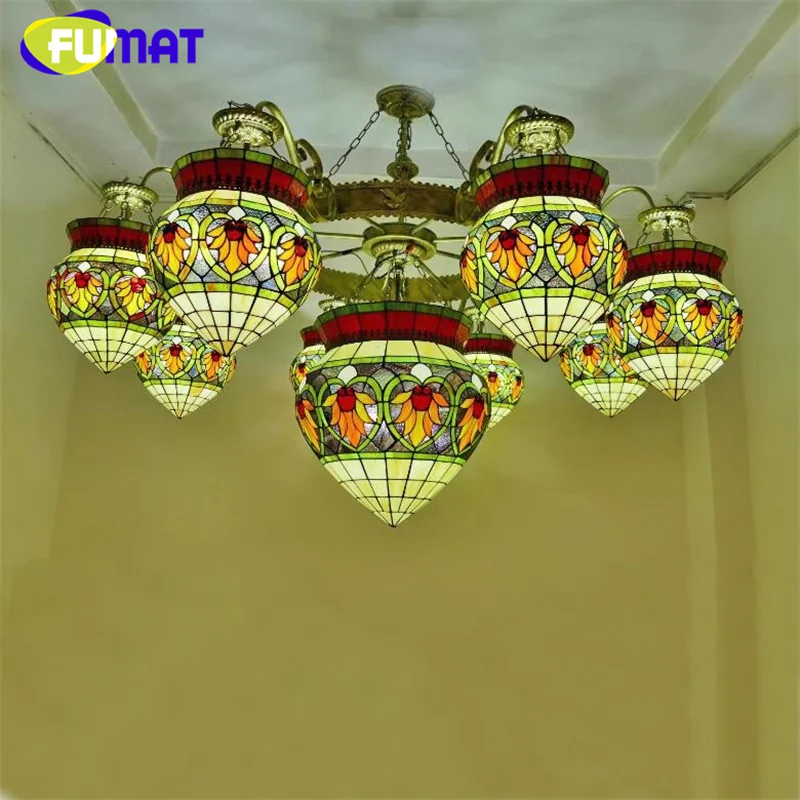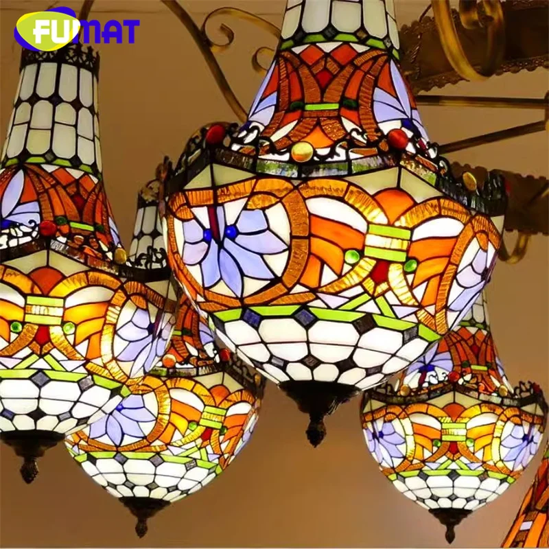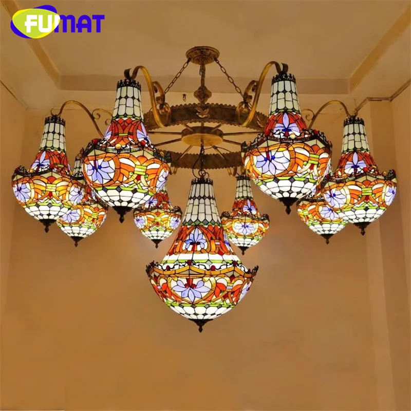 FUMAT Tiffany stained glass tulip pattern Baroque European chandelier Hotel Living room Bedroom light Restaurant Villa LED deco