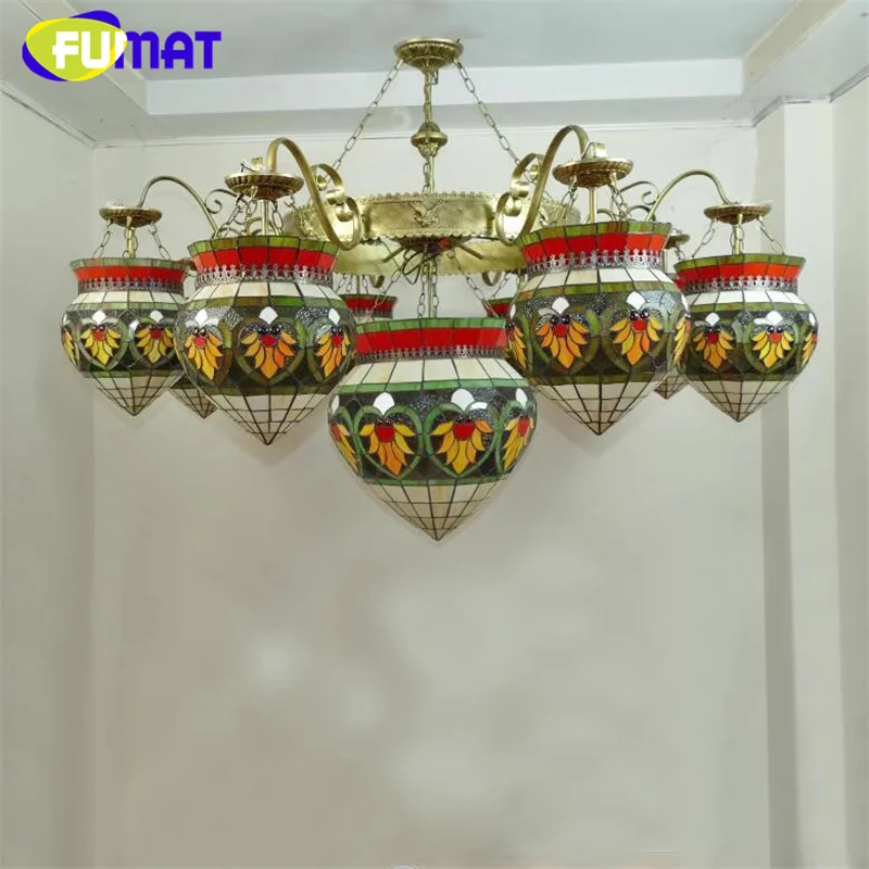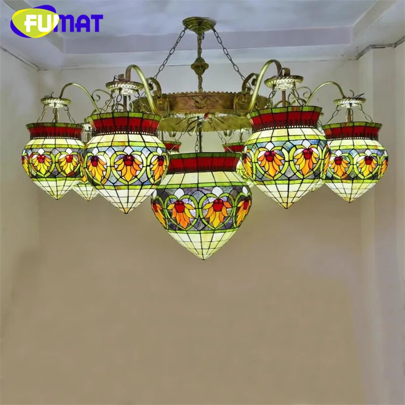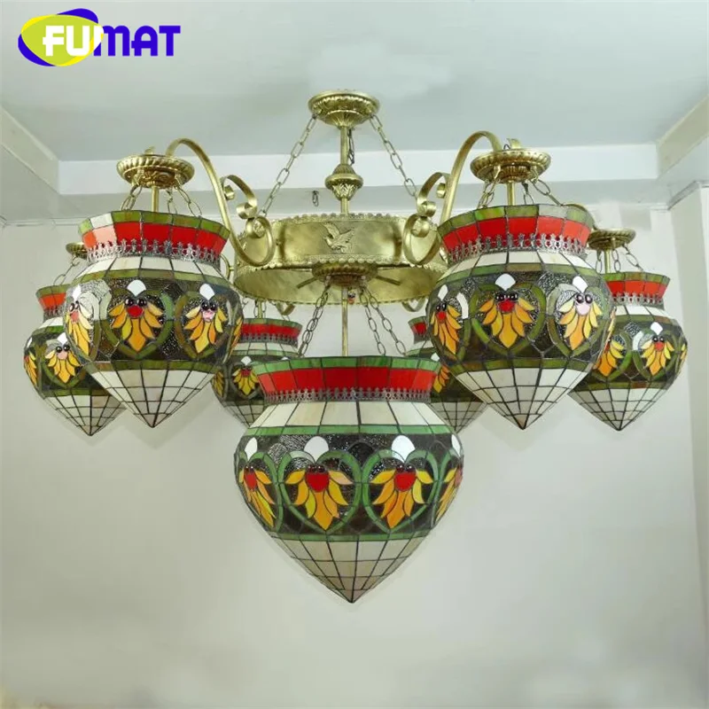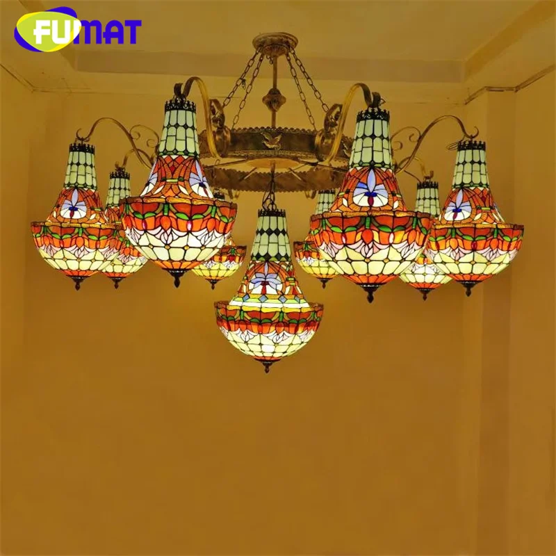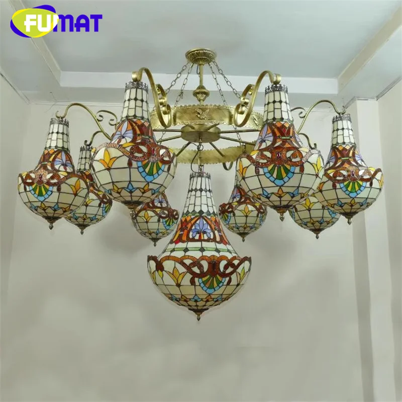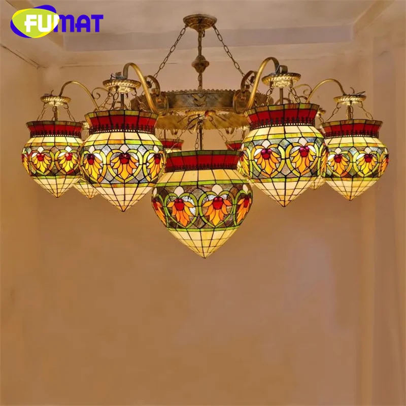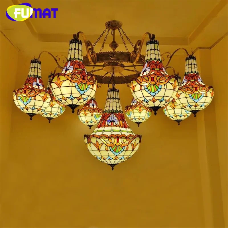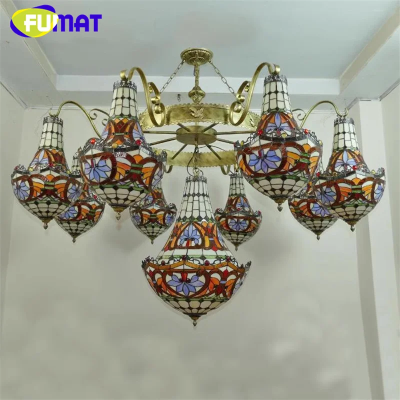 FUMAT Tiffany stained glass tulip pattern Baroque European chandelier Hotel Living room Bedroom light Restaurant Villa LED deco