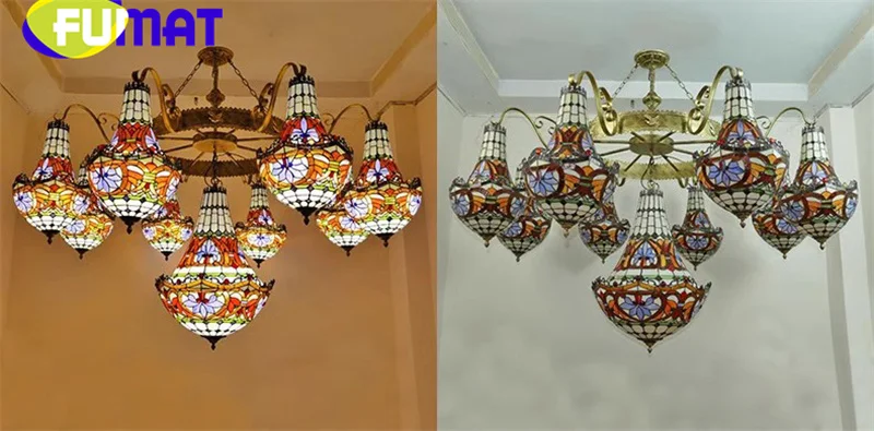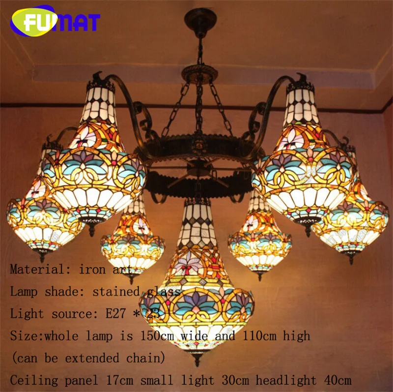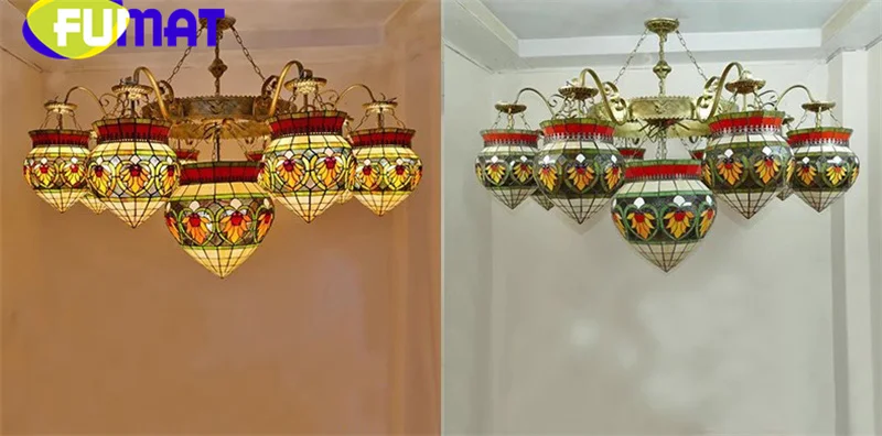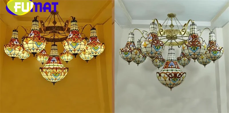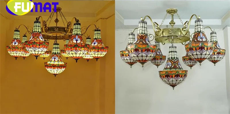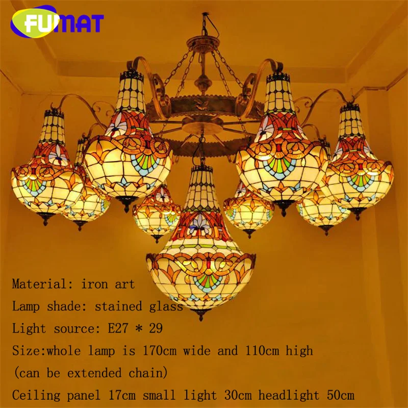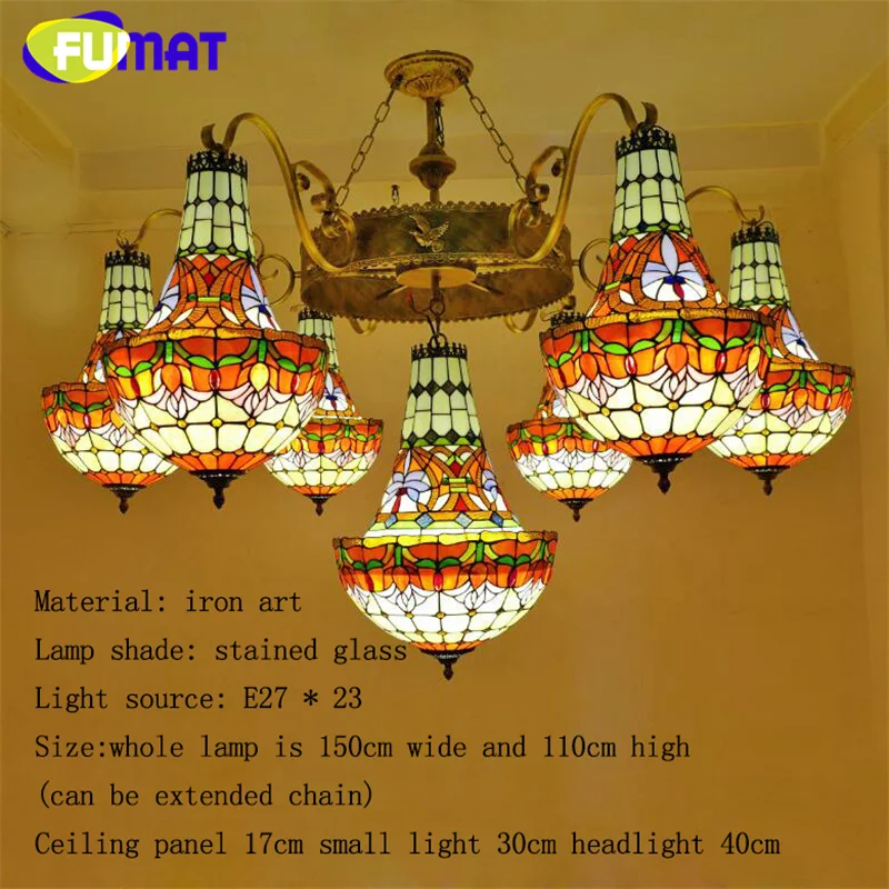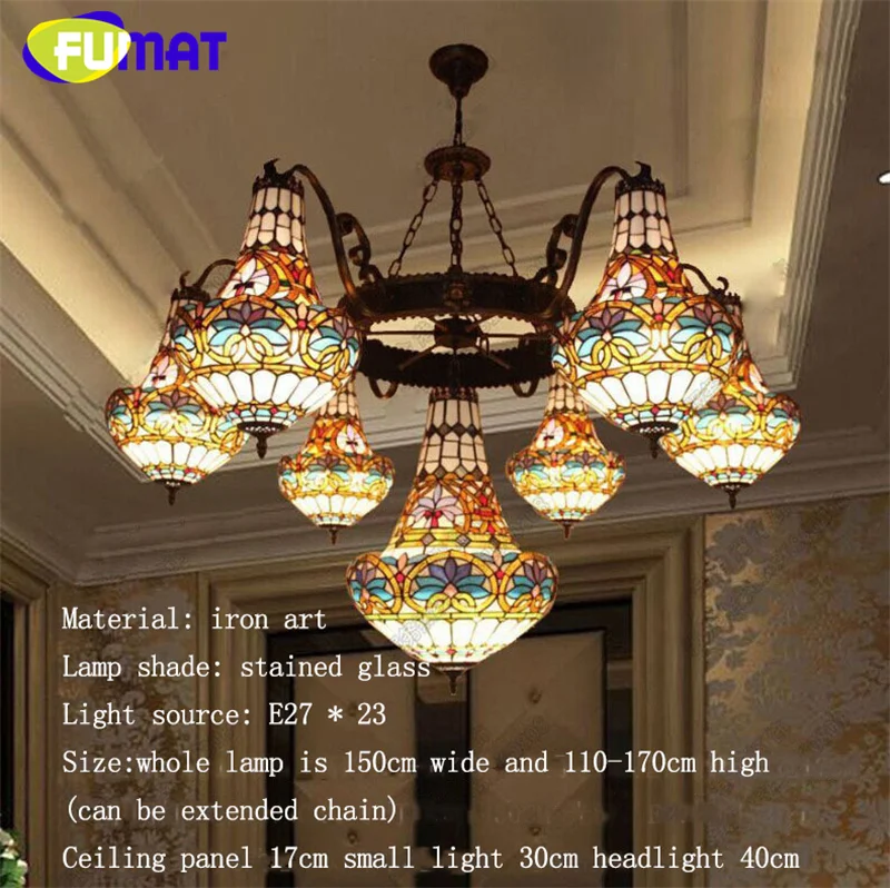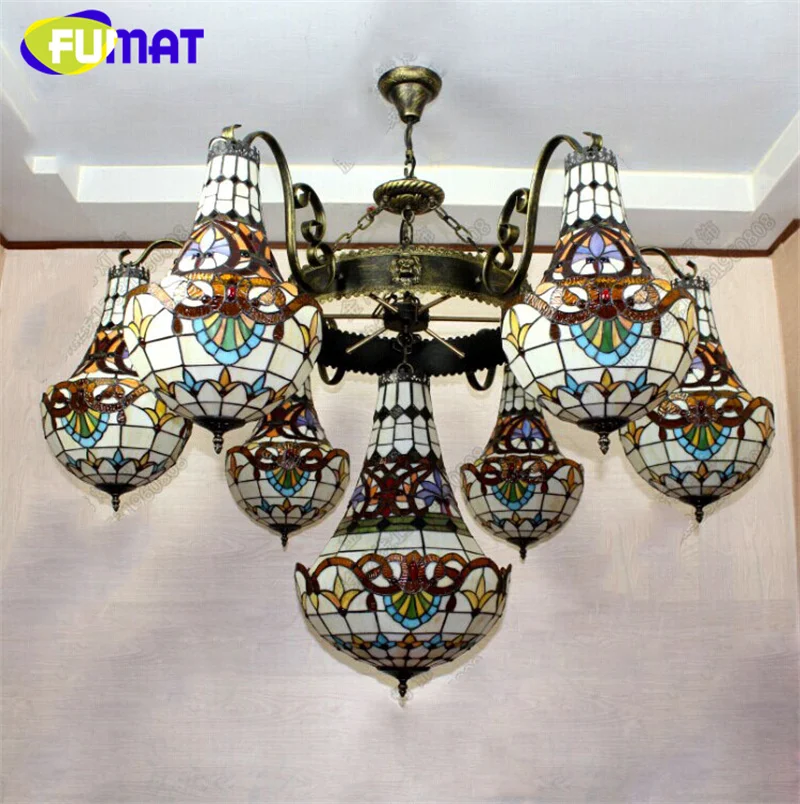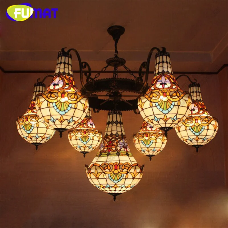 FUMAT Tiffany stained glass tulip pattern Baroque European chandelier Hotel Living room Bedroom light Restaurant Villa LED deco