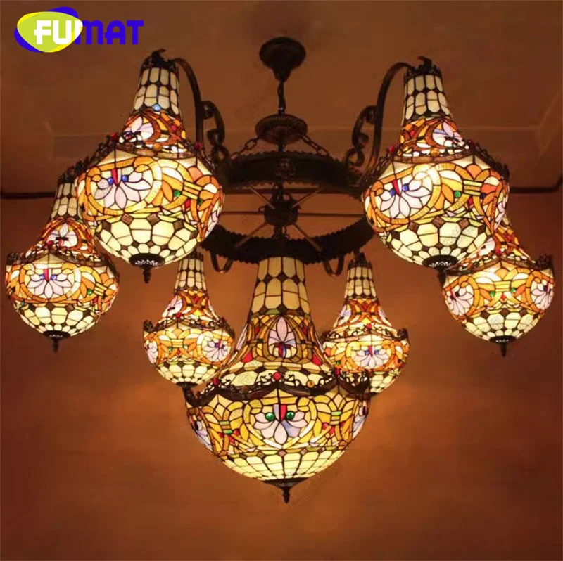 FUMAT Tiffany stained glass tulip pattern Baroque European chandelier Hotel Living room Bedroom light Restaurant Villa LED decor