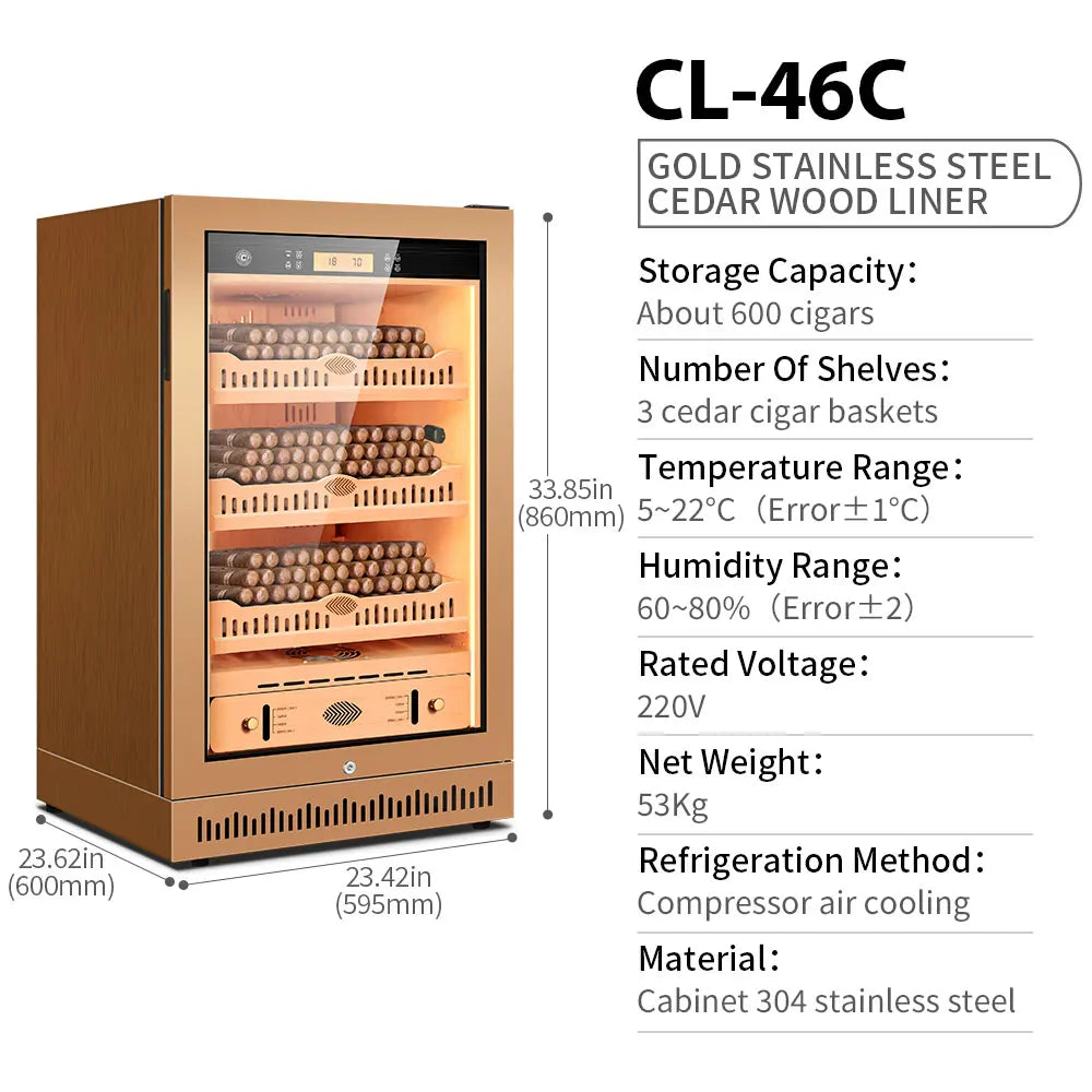 Functional Cigar Humidor Intelligent Control Humidity Temperature Cedar Wood Thermostatic Cooler Cabinet Compressor 46C