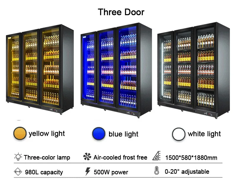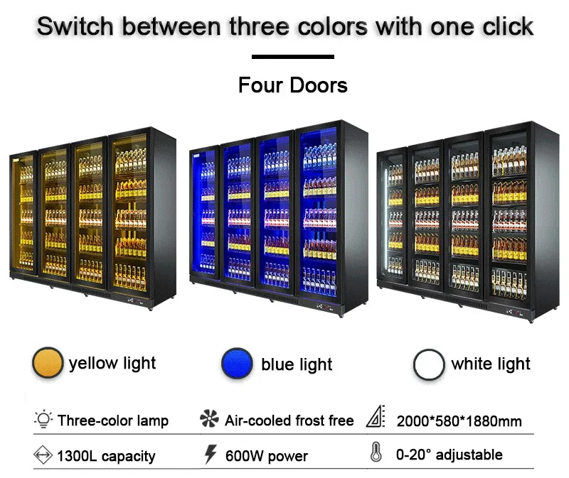 Glass Door Drinks Fridge Soft Drink Beer Display Coolers Upright Double Door Refrigerator