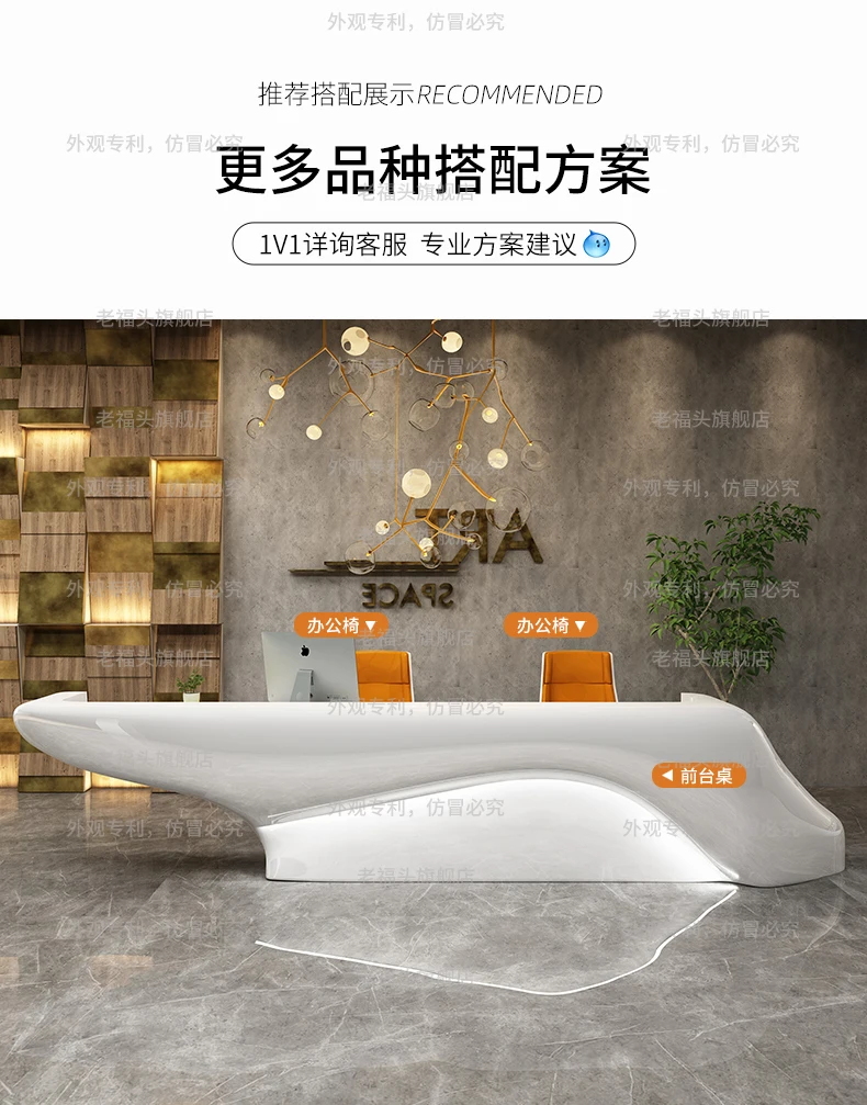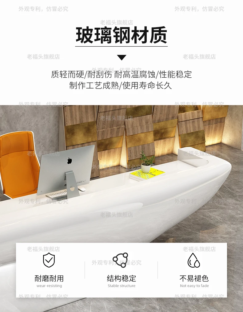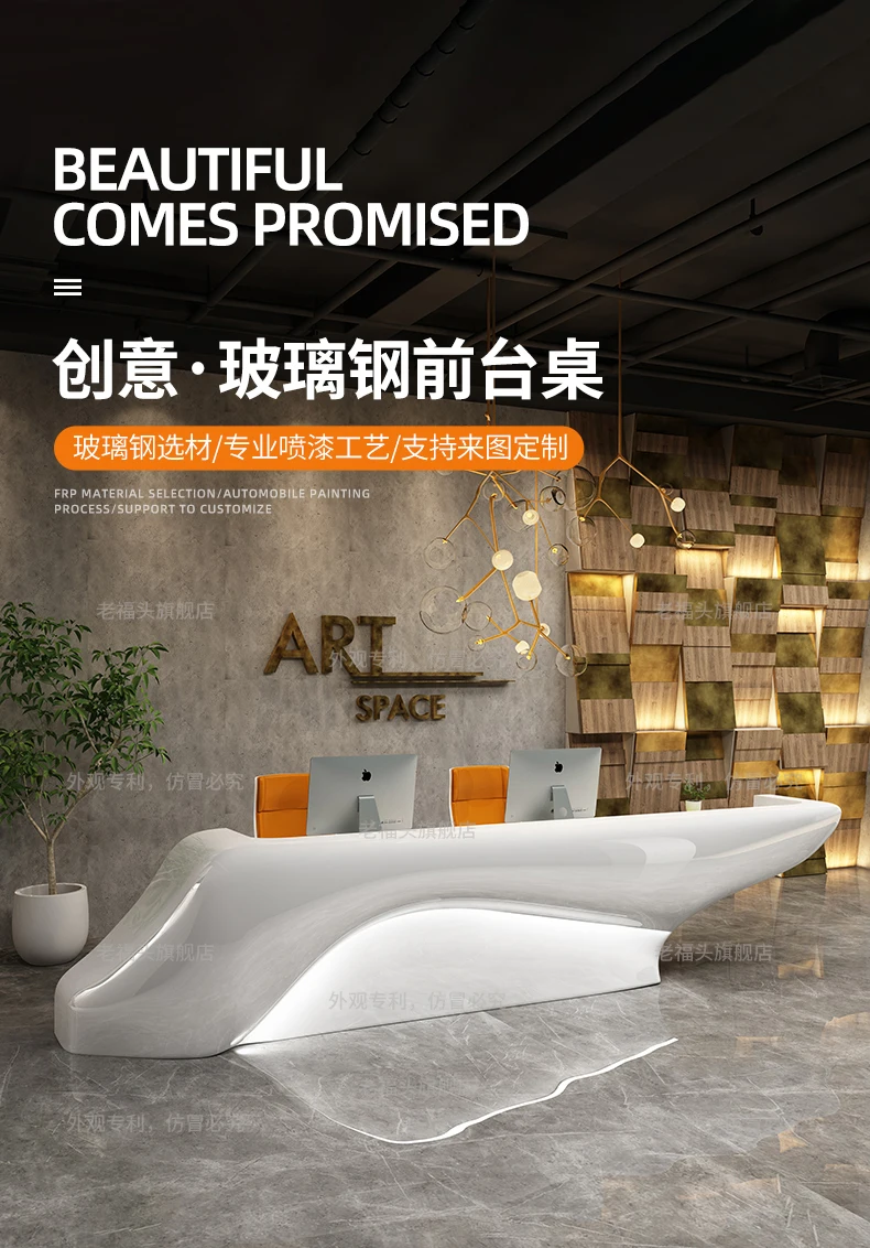 Glass fiber reinforced plastic paint shaped front desk, hotel lobby, company welcome, creative cashier, sales department, servic