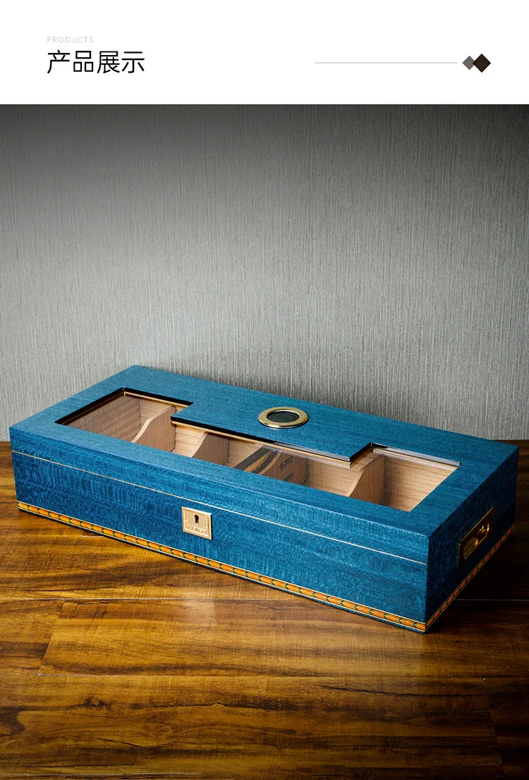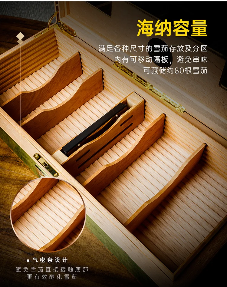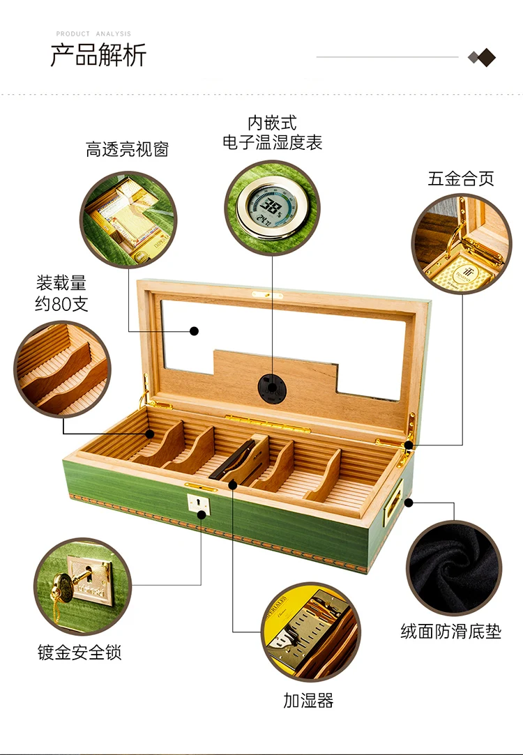 Glass Top New Arrival Spanish Cedar Cigar Box Cigar Humidification Moisture Storage Box for 80 Sticks with Lock Humidor CH-036