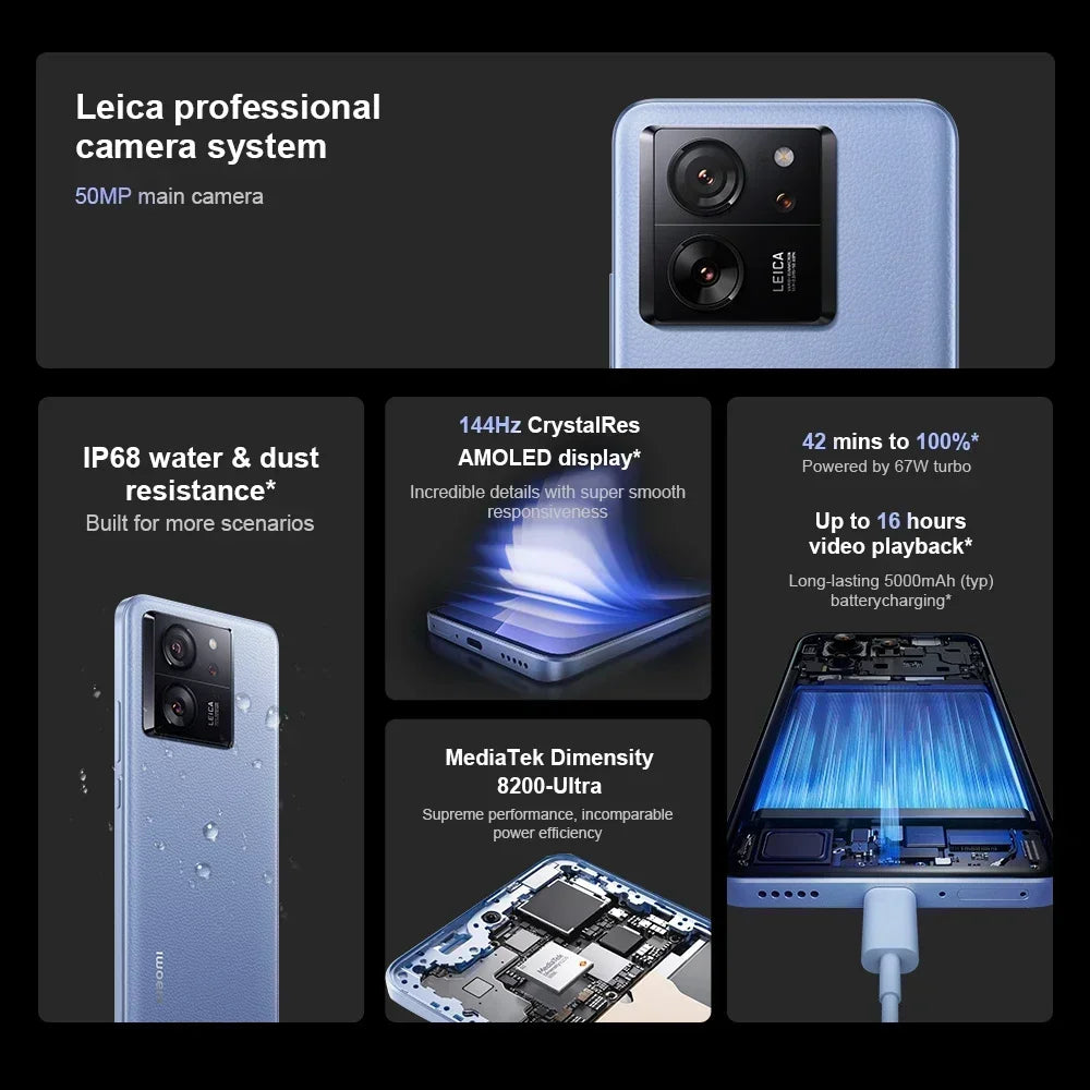 Global Version Xiaomi 13T 5G Leica Camera Large Screen 144HZ High Refresh Rate IP68 Waterproof NFC MediaTek Dimensity 8200-Ultra