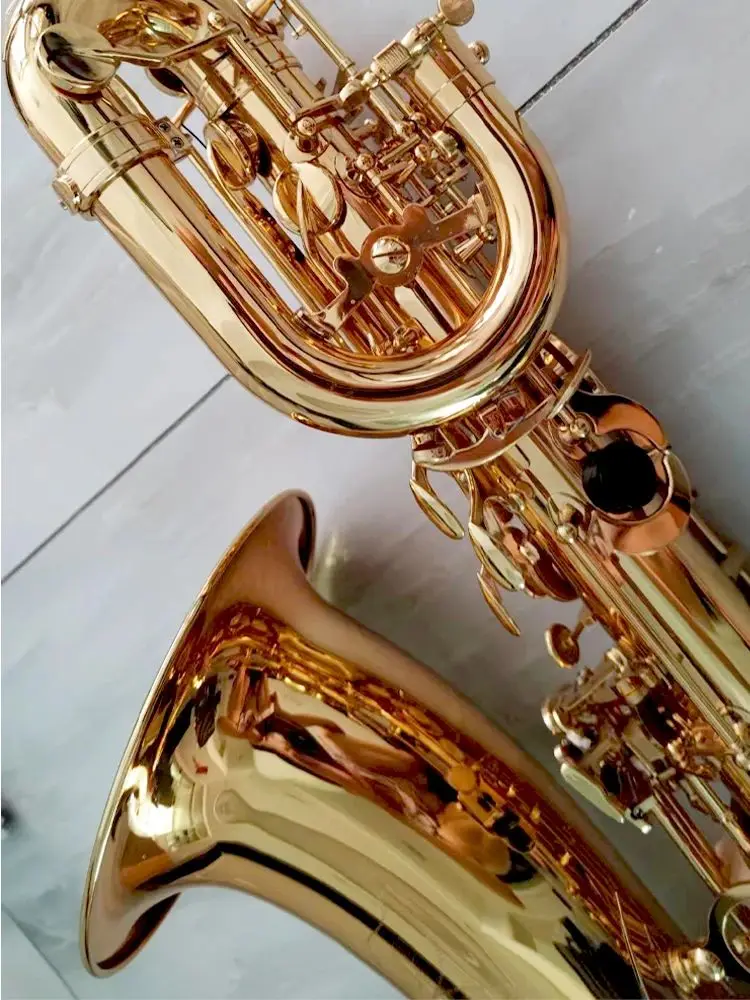 Golden professional Baritone saxophone flat E-tune upgrade double-rib deep engraving pattern high-quality tone jazz instrument