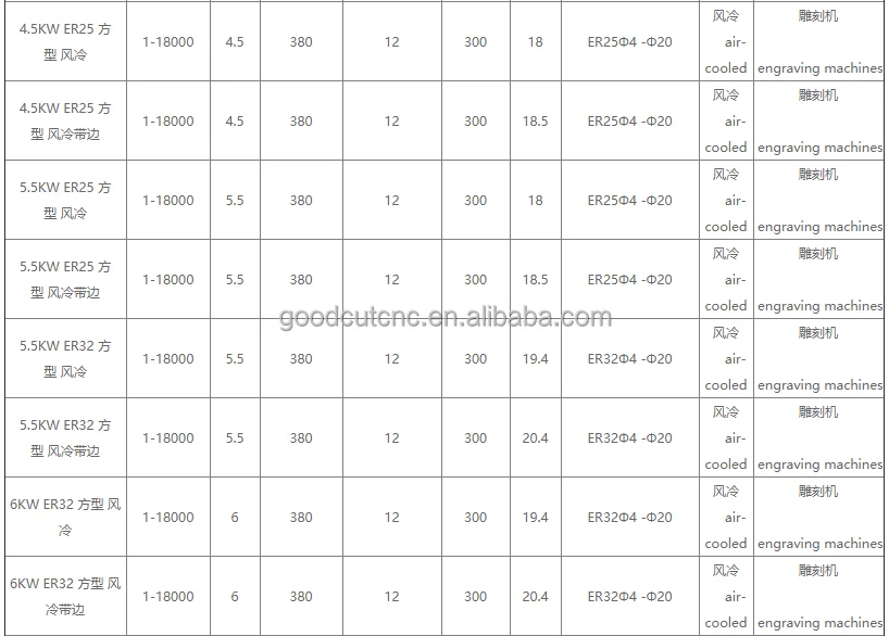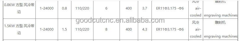 Parameter of GoodCut 1.5kw 2.2kw 3kw 4kw cnc machine tool spindle motor: