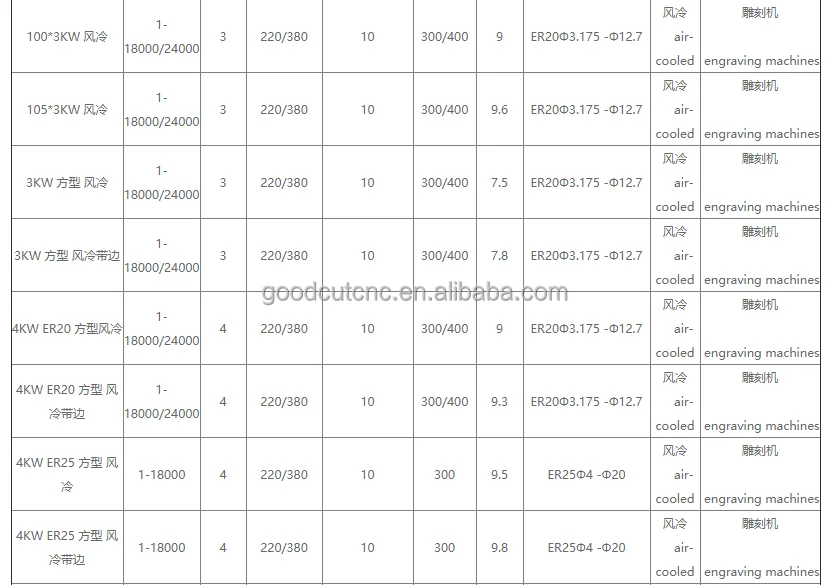 3) There are water cooling spindle , air cooling spindle and self cooling spindle for your choose.