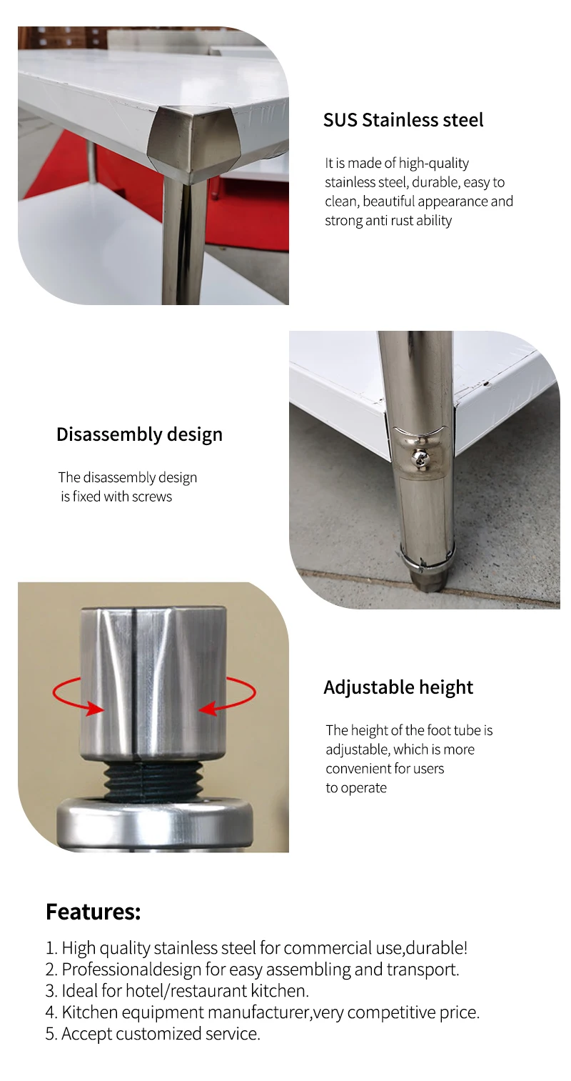Stainless steel worktable is widely used in restaurant、kitchen、hotel、catering 、outdoor and others places.