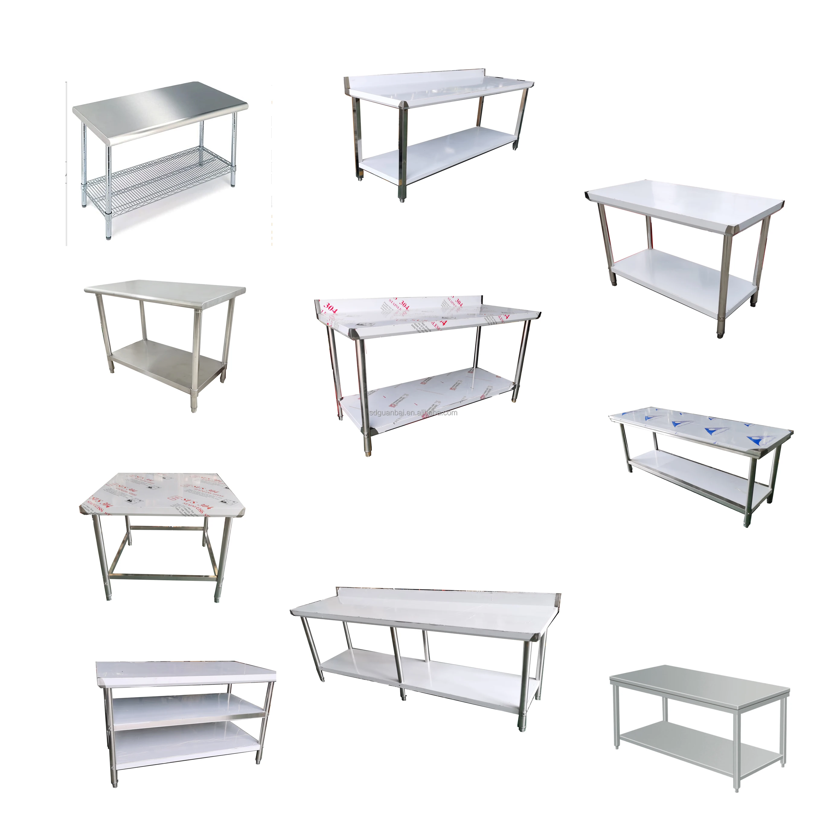 Guanbai Stainless Steel Work Bench Table Sorting Table With Backsplash Under Shelf Kitchen Double Overshelf Work Bench