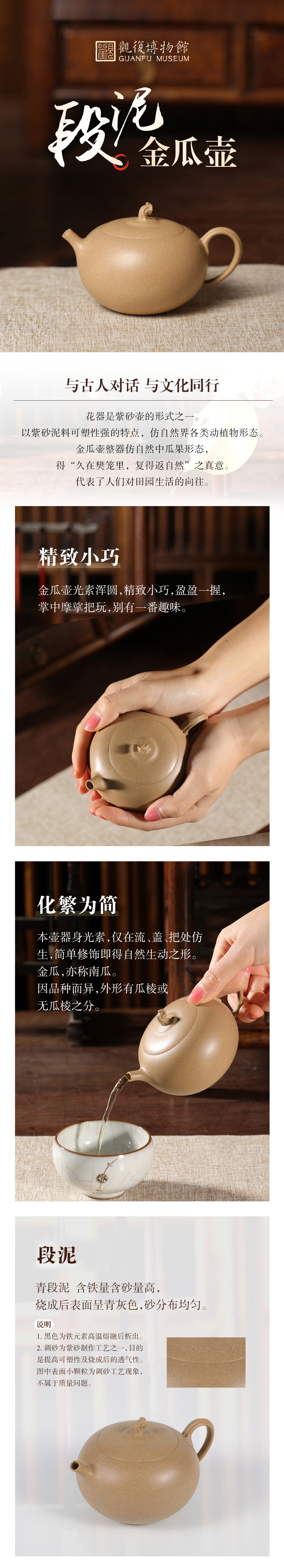 Guanfu Museum Segment Mud Gold Melon Pot Yixing Segment Mud Flower Ware Delicate Green Segment Mud Tieguanyin High Mountain Tea